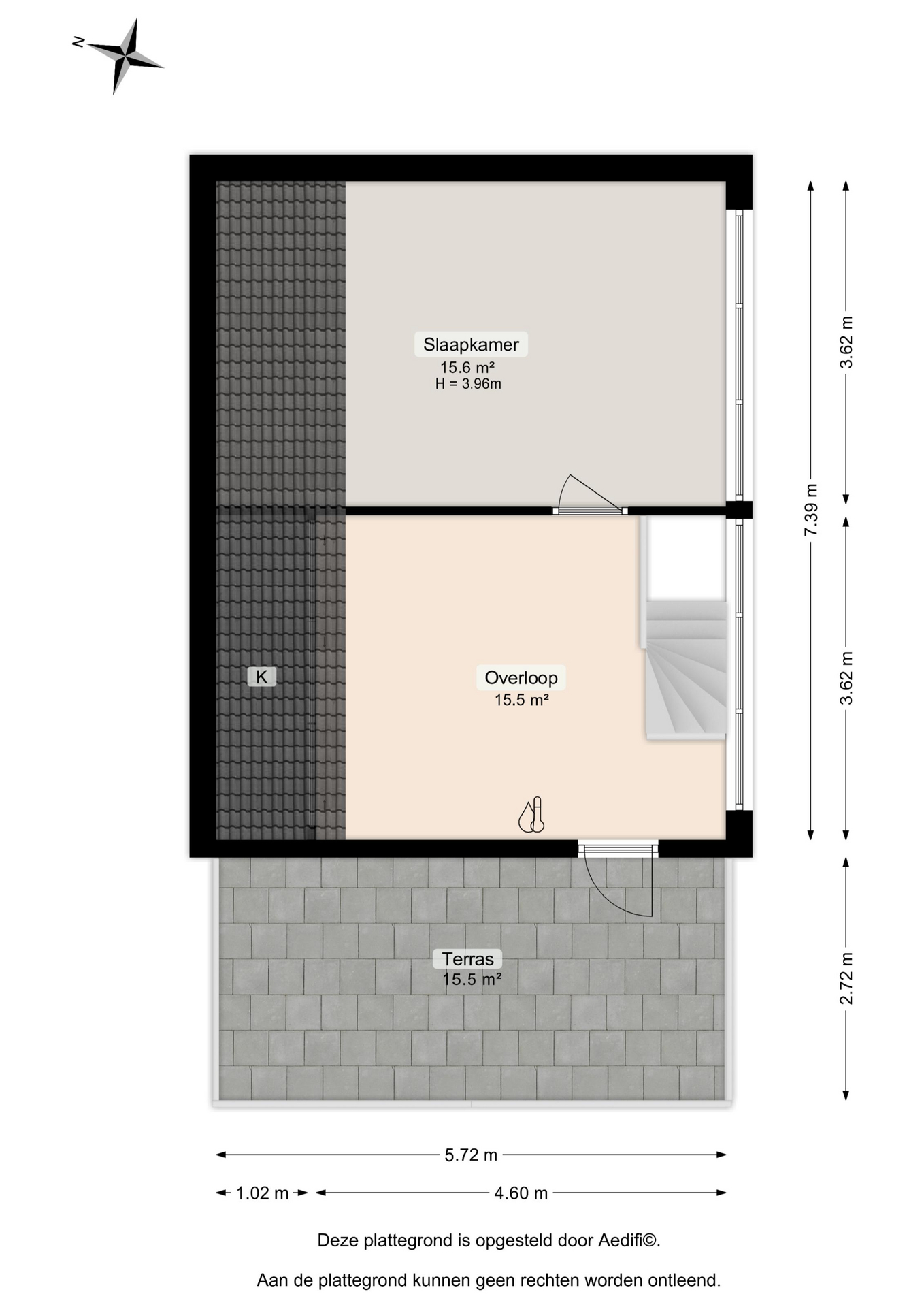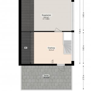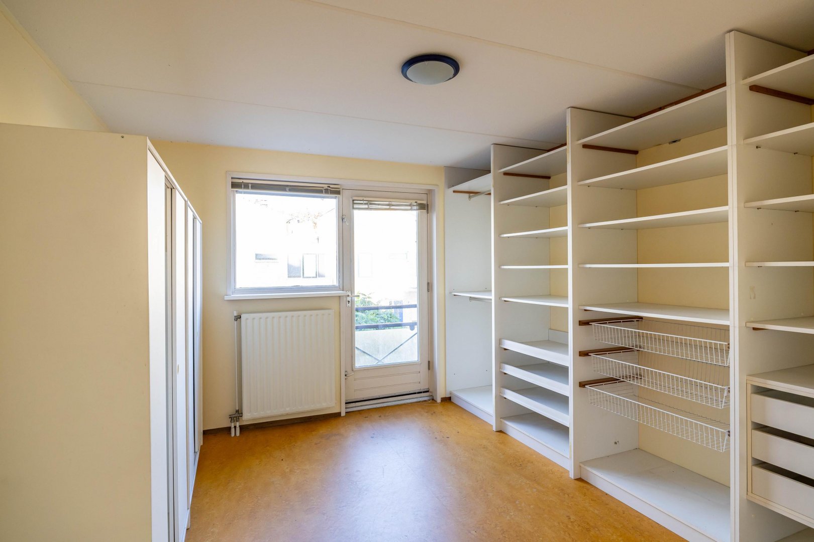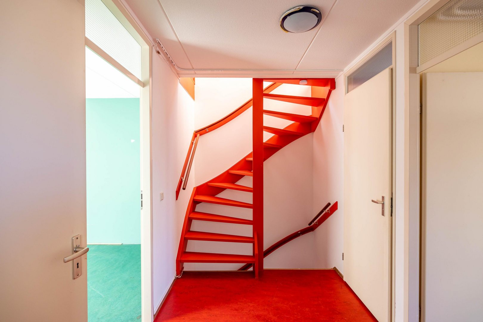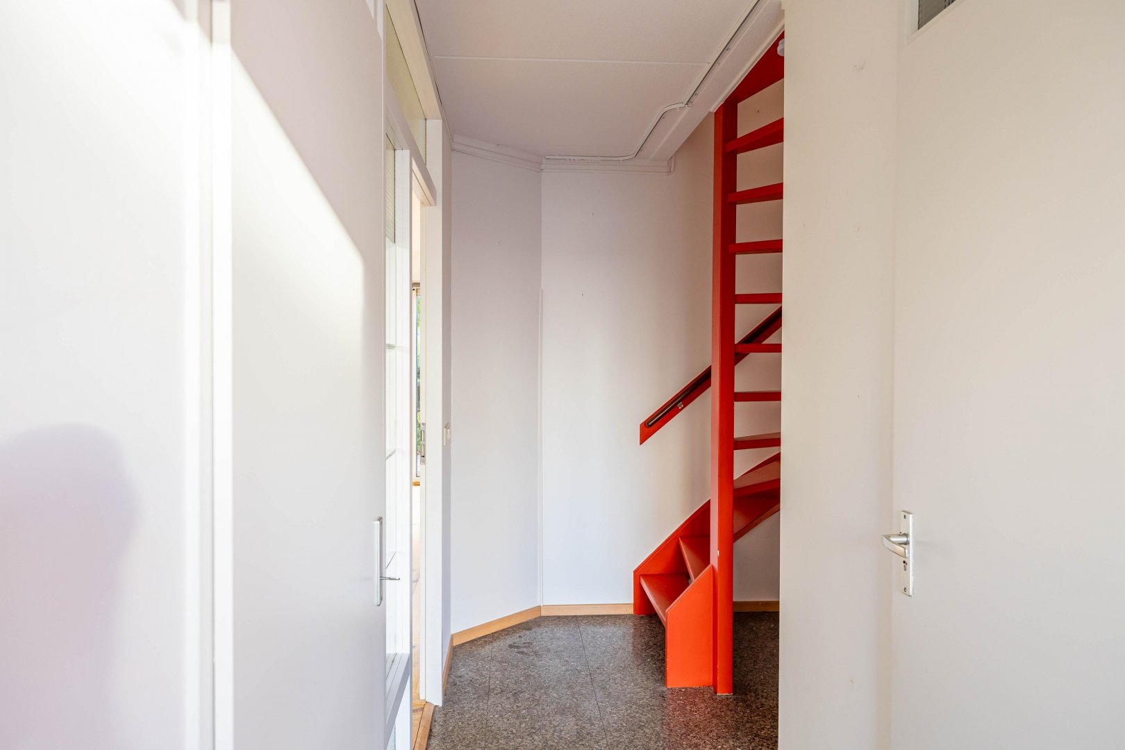 Tweede verdieping: lichte, hoge en grote overloop met de mogelijkheid voor een werkplek of bergruimte. Een vierde grote slaap/werkkamer (16m²) onder de schuine kap. Via de overloop een ruim balkon/dakterras bereikbaar aan de voorzijde (Zuidwest).