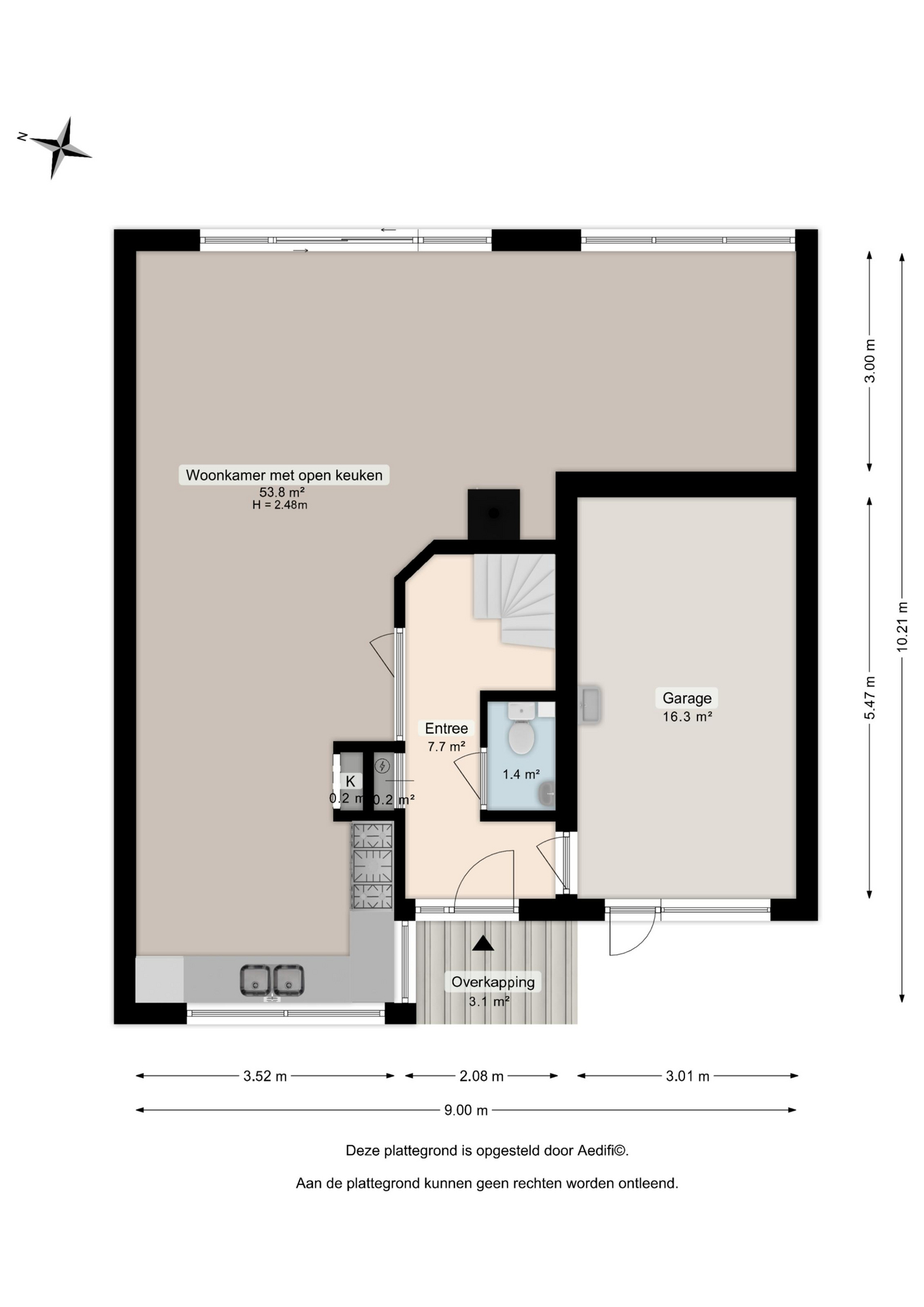 ruime -eigen- oprit voor het huis voor twee auto's. Entree met hal/gang, meterkast en toilet. Rechtsaf in de hal binnendoor naar de naastgelegen garage.