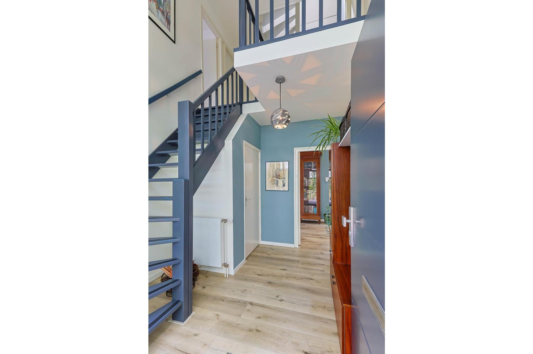 Begane grond: entree aan de zijgevel en daarachter een hal met toilet, trapopgang, meterkast en deur naar het woongedeelte. De woonkamer heeft een L-vorm en een half open moderne keuken met aansluitend een bijkeuken met aansluiting voor de wasmachine en droger en de cv-opstelling.