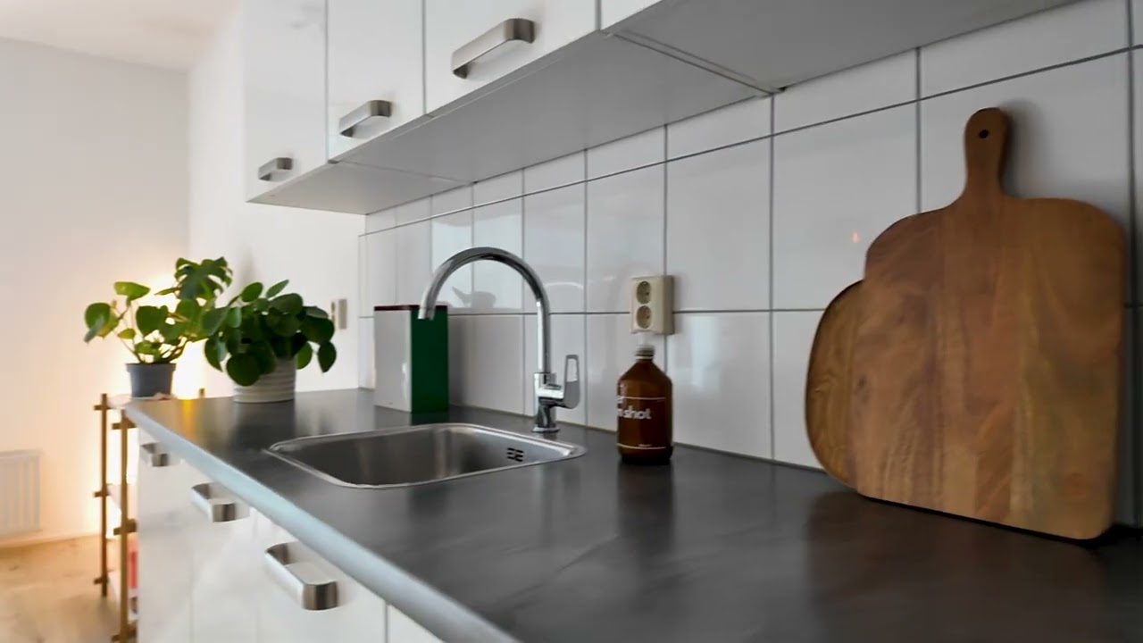 Zodra je binnenstapt, merk je het meteen: dit is zo’n appartement dat gewoon klopt. Fris, licht en keurig afgewerkt, een fijne basis waar je zó in kunt. Met circa 45 m² is het slim ingedeeld, waardoor het verrassend ruim aanvoelt. De woonkamer is een heerlijke plek om thuis te komen. Het daglicht valt prettig naar binnen en geeft de ruimte een warme, uitnodigende sfeer. Hier plof je neer na een werkdag, of schuif je met vrienden aan voor een borrel die zomaar wat langer doorgaat dan gepland. De keuken sluit mooi aan op de leefruimte. Praktisch ingericht en precies goed om lekker te koken terwijl de geuren van een vers gerecht zich door het appartement verspreiden.