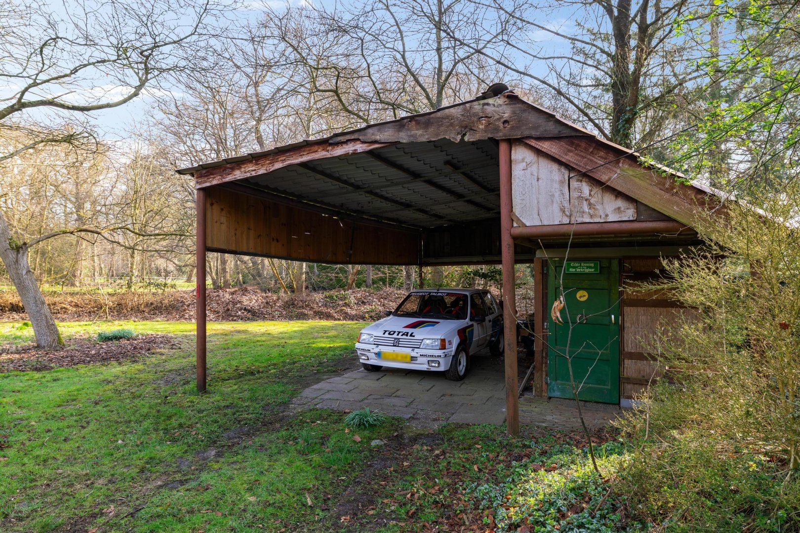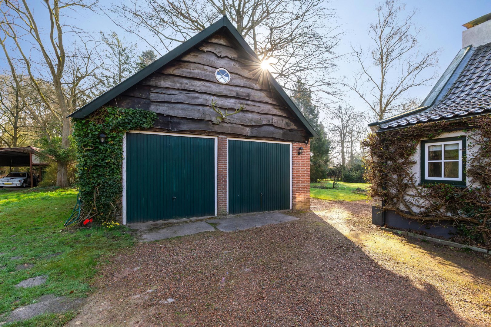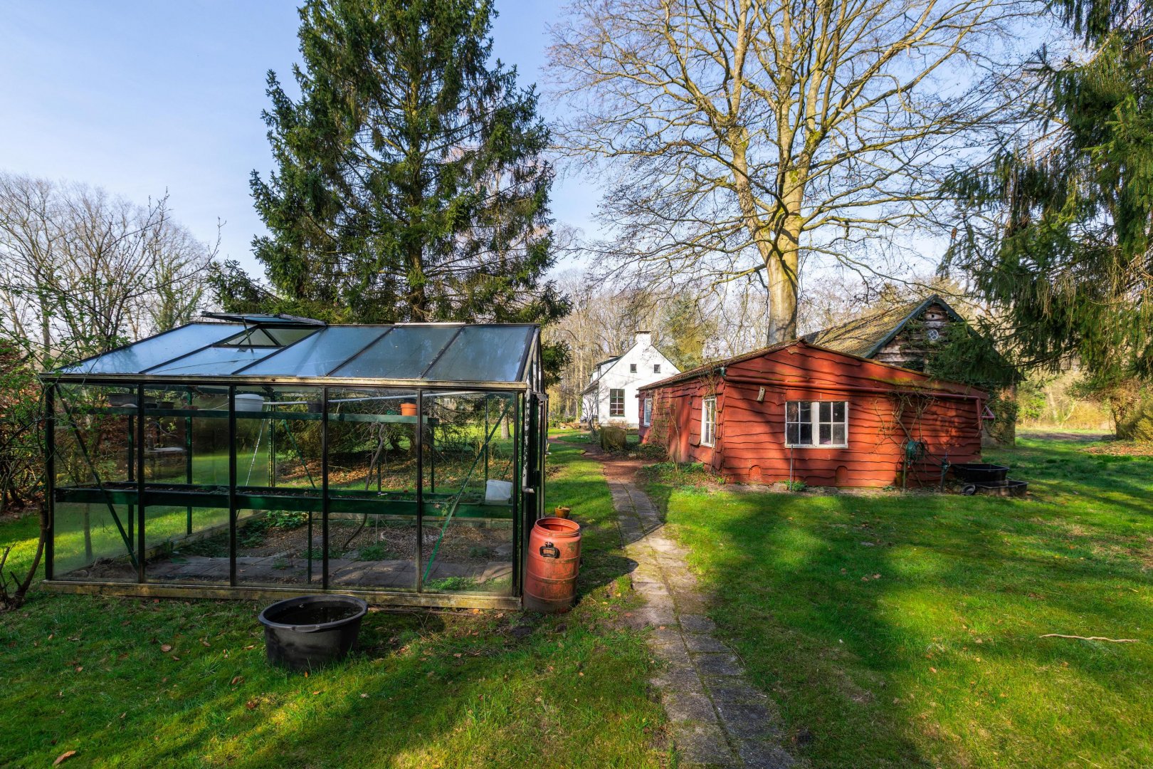 Maar eerlijk? Het echte verhaal speelt zich buiten af. De tuin of beter gezegd: het land is indrukwekkend. Bijna 11.000 m² puur potentieel. Hier kun je kippen houden, een pony laten grazen of eindelijk die droom van een weelderige tuin waarmaken. Denk aan kronkelende paadjes, bloeiende borders, een moestuin die meebeweegt met de seizoenen. Of juist een meer natuurlijke invulling. Of u nu droomt van het houden van klein vee, behoefte heeft aan ruimte voor machines of graag sleutelt aan oldtimers of motoren: hier kan het allemaal. De grote garage en meerdere schuren bieden niet alleen vierkante meters, maar vooral vrijheid. Vrijheid om te doen wat u wilt, zonder concessies.