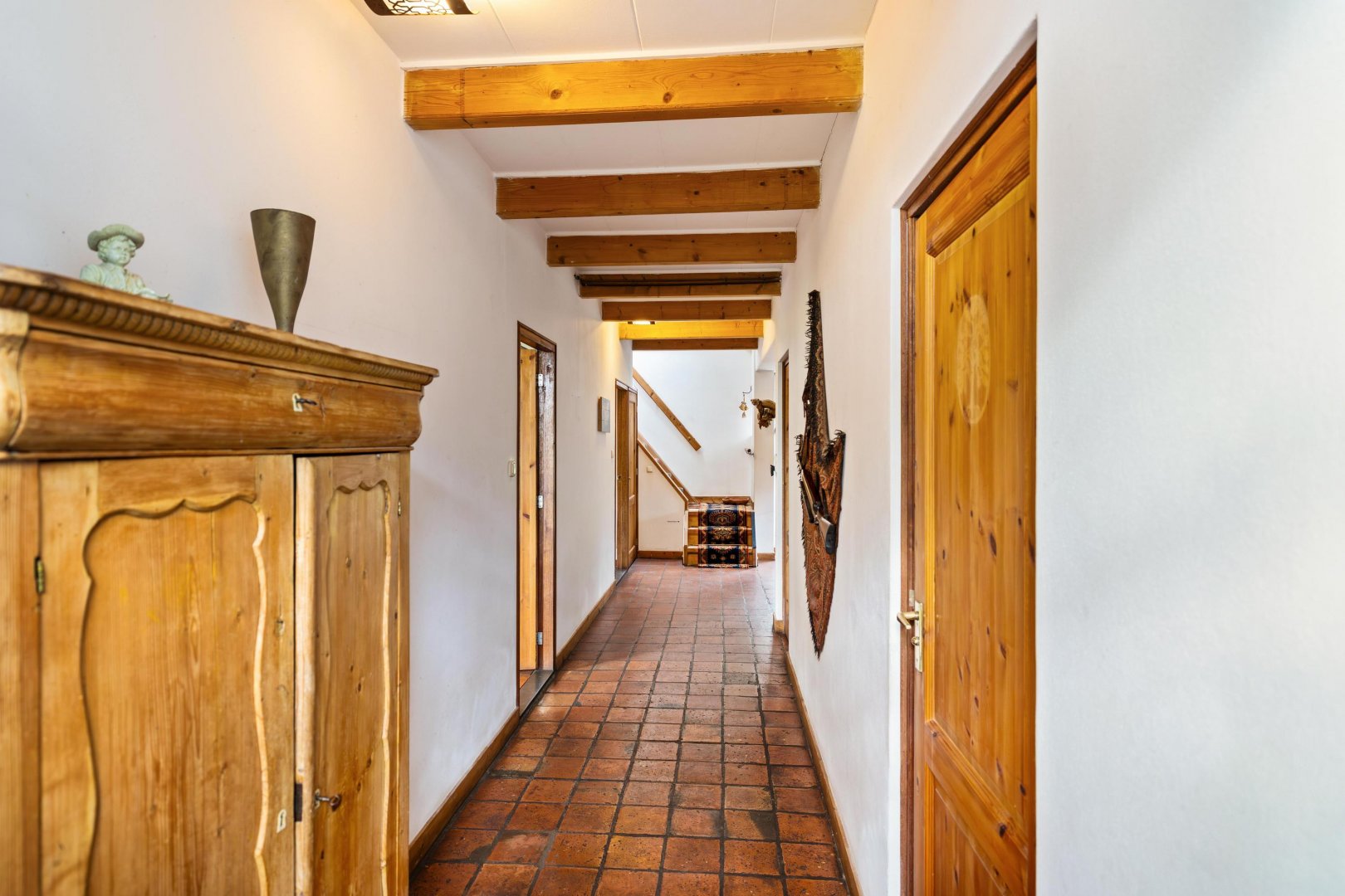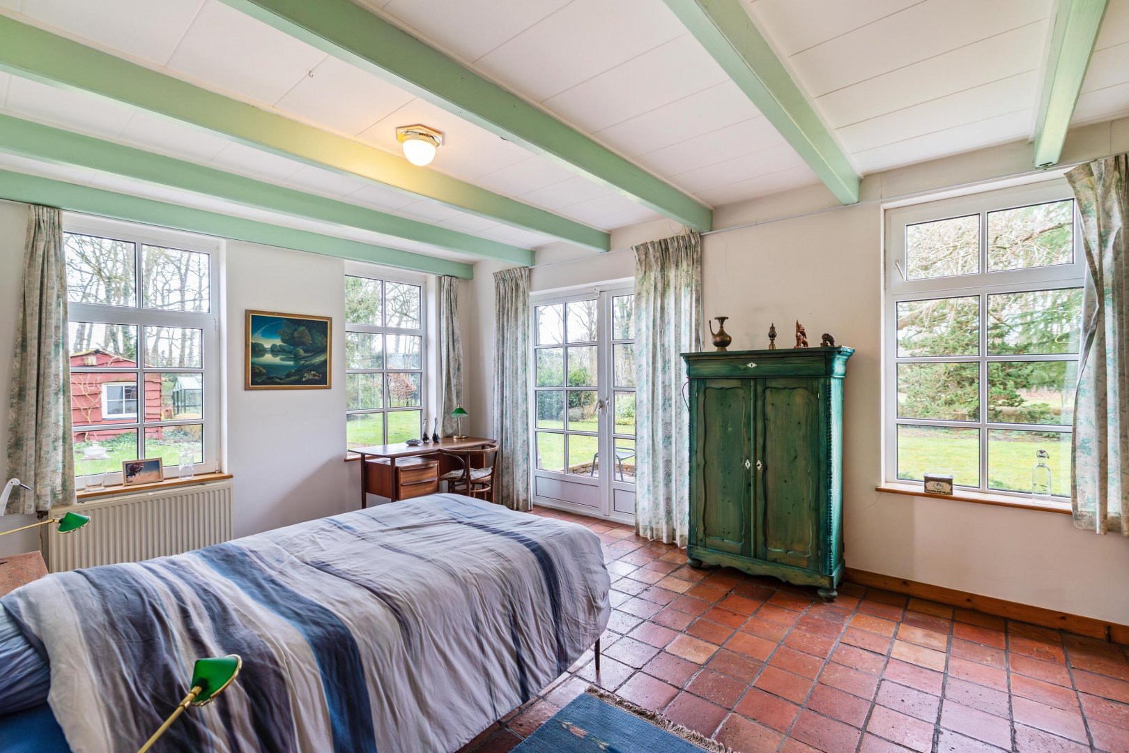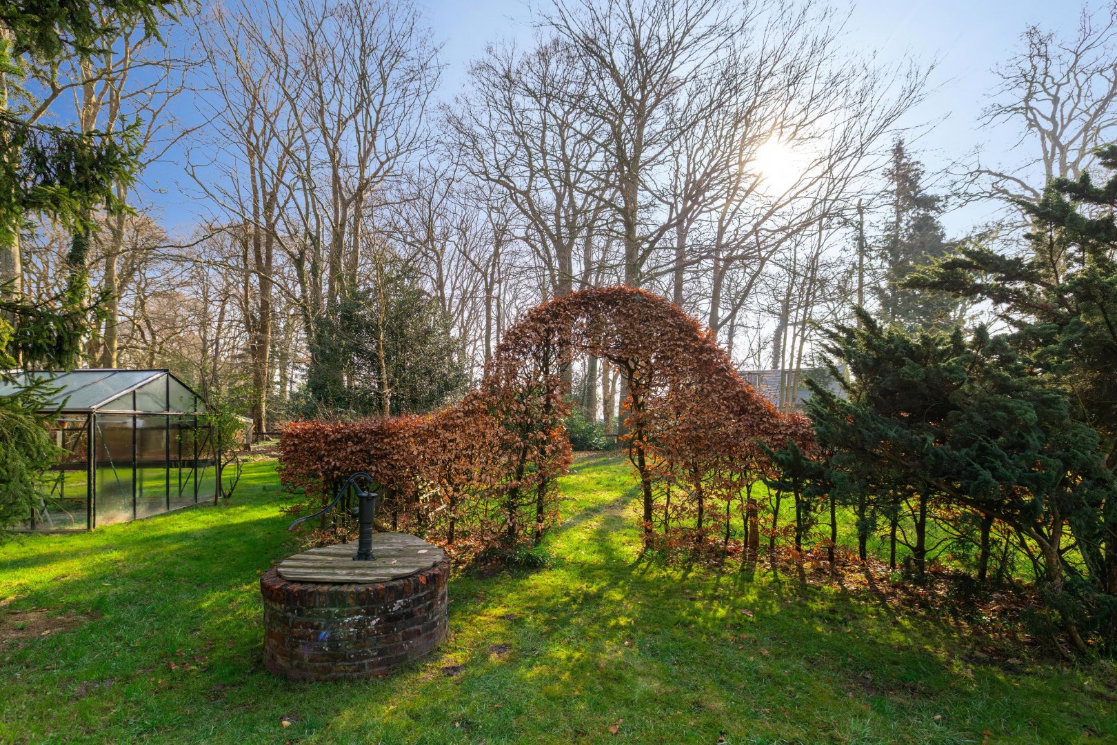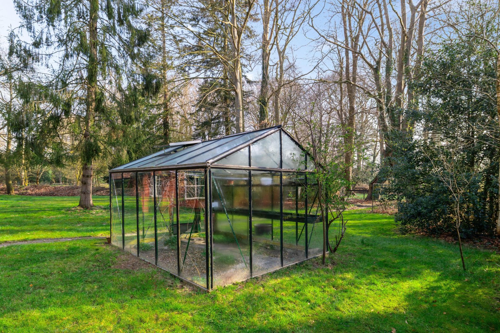 Maar eerlijk? Het echte verhaal speelt zich buiten af. De tuin of beter gezegd: het land is indrukwekkend. Bijna 11.000 m² puur potentieel. Hier kun je kippen houden, een pony laten grazen of eindelijk die droom van een weelderige tuin waarmaken. Denk aan kronkelende paadjes, bloeiende borders, een moestuin die meebeweegt met de seizoenen. Of juist een meer natuurlijke invulling. Of u nu droomt van het houden van klein vee, behoefte heeft aan ruimte voor machines of graag sleutelt aan oldtimers of motoren: hier kan het allemaal. De grote garage en meerdere schuren bieden niet alleen vierkante meters, maar vooral vrijheid. Vrijheid om te doen wat u wilt, zonder concessies.