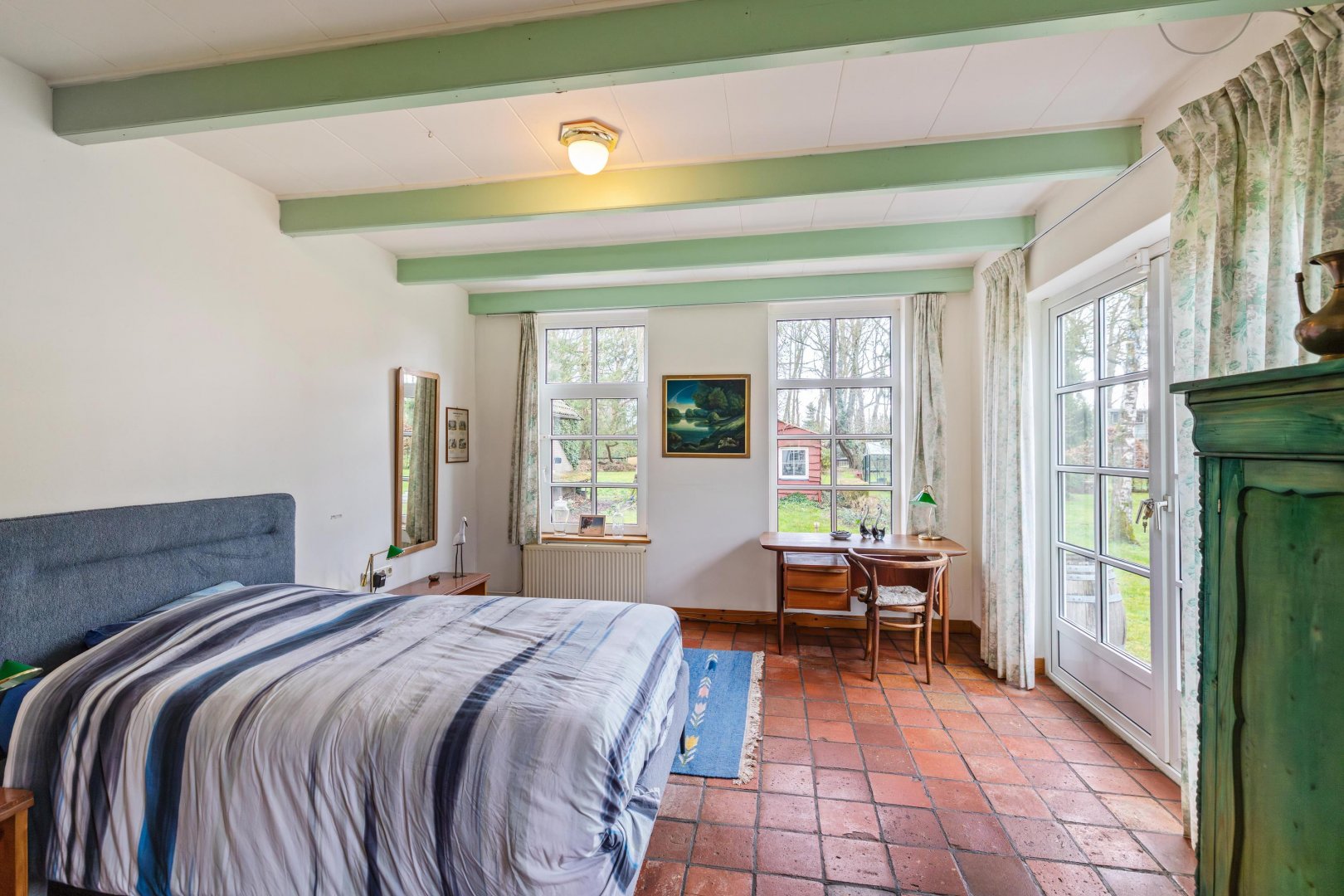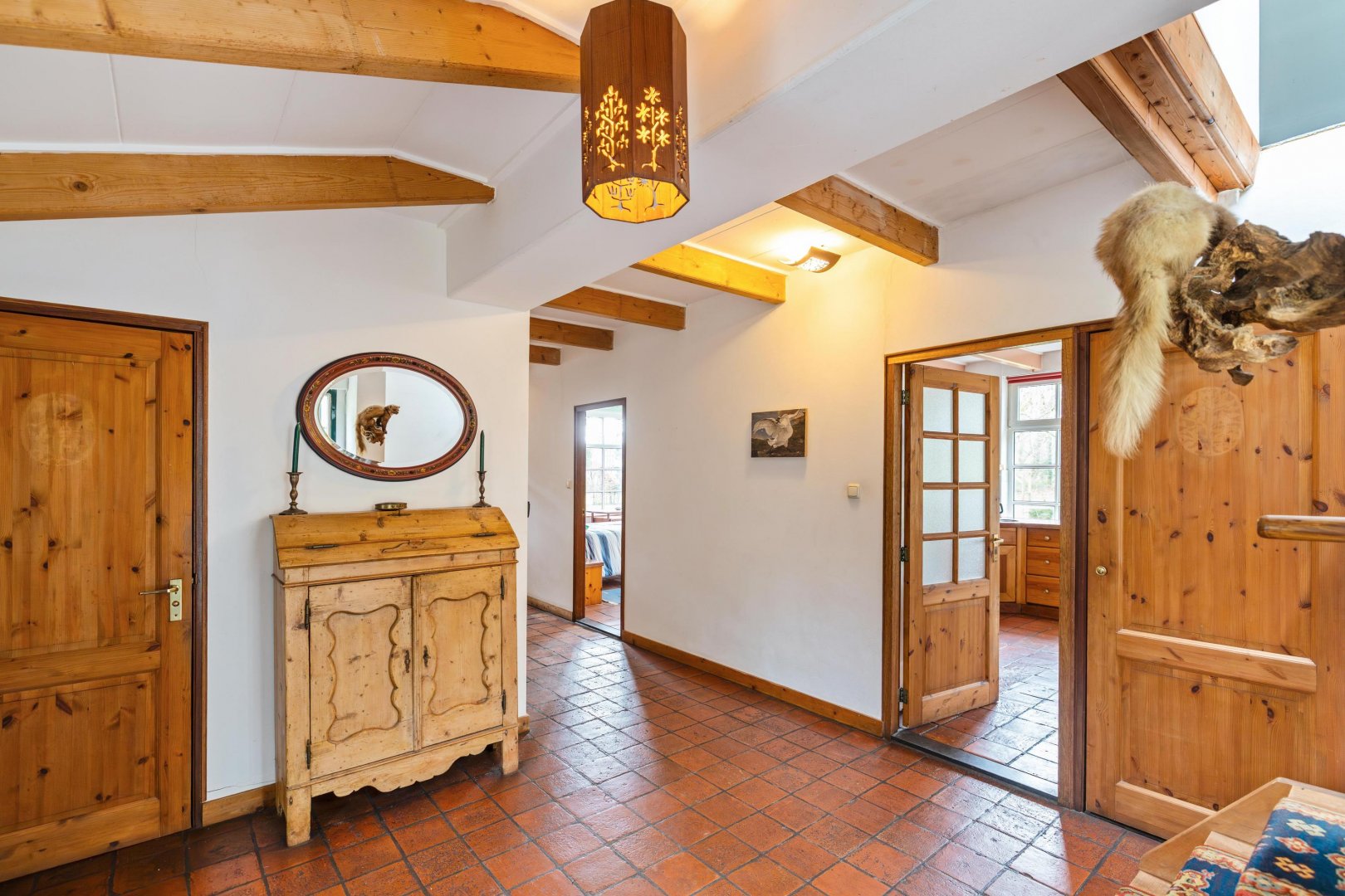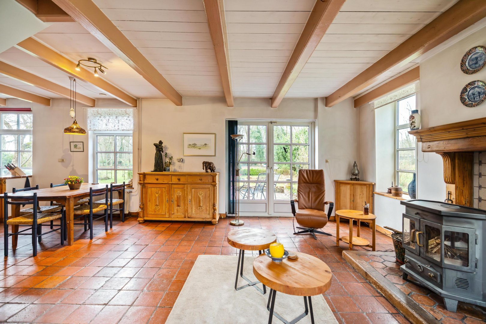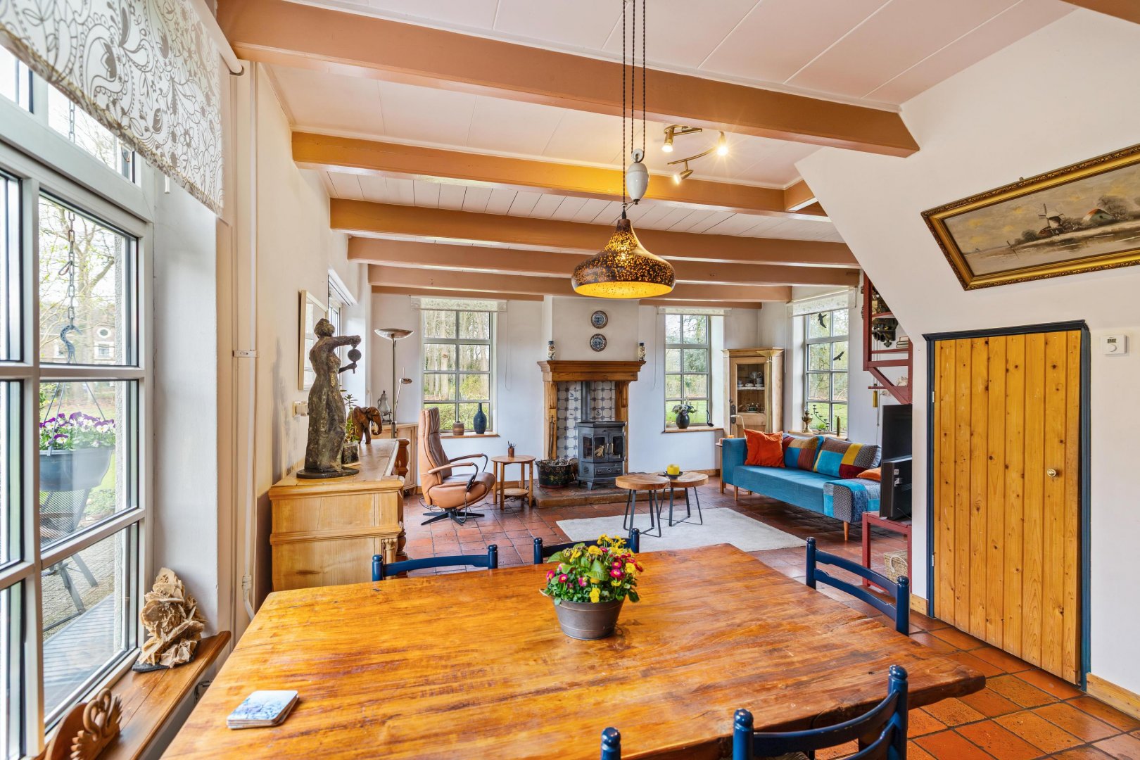 De woning ligt fraai in het groen en wordt omringd door tuin en land, waardoor u op elk moment van de dag kunt kiezen tussen zon, schaduw en beschutting. De rust is voelbaar, de stilte overtuigend. Binnen heerst een prettige, huiselijke sfeer met een logische indeling die zich uitstekend leent voor levensloopbestendig wonen. De drie slaapkamers bieden ruimte voor slapen, werken of hobby, geheel naar eigen wens in te richten.