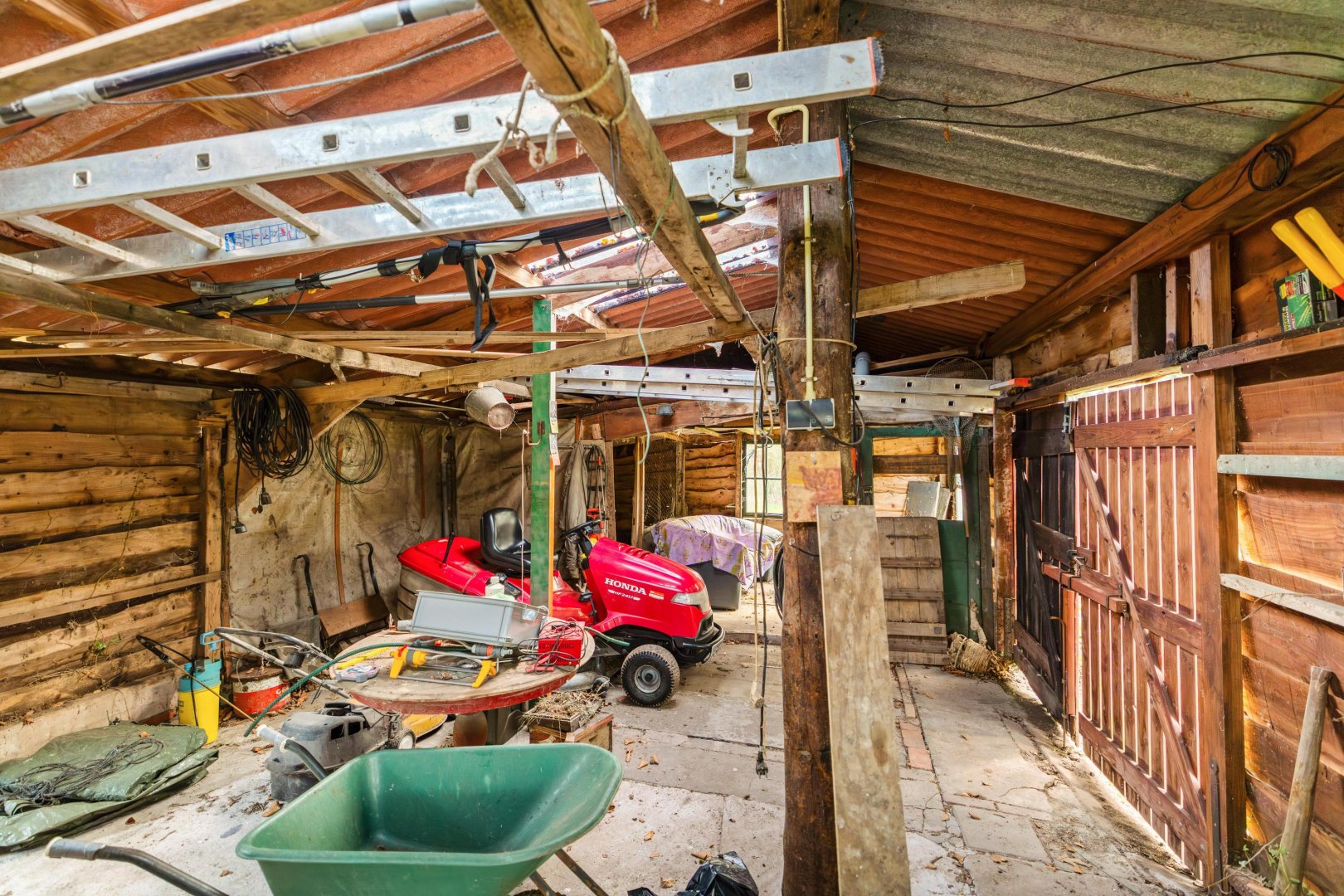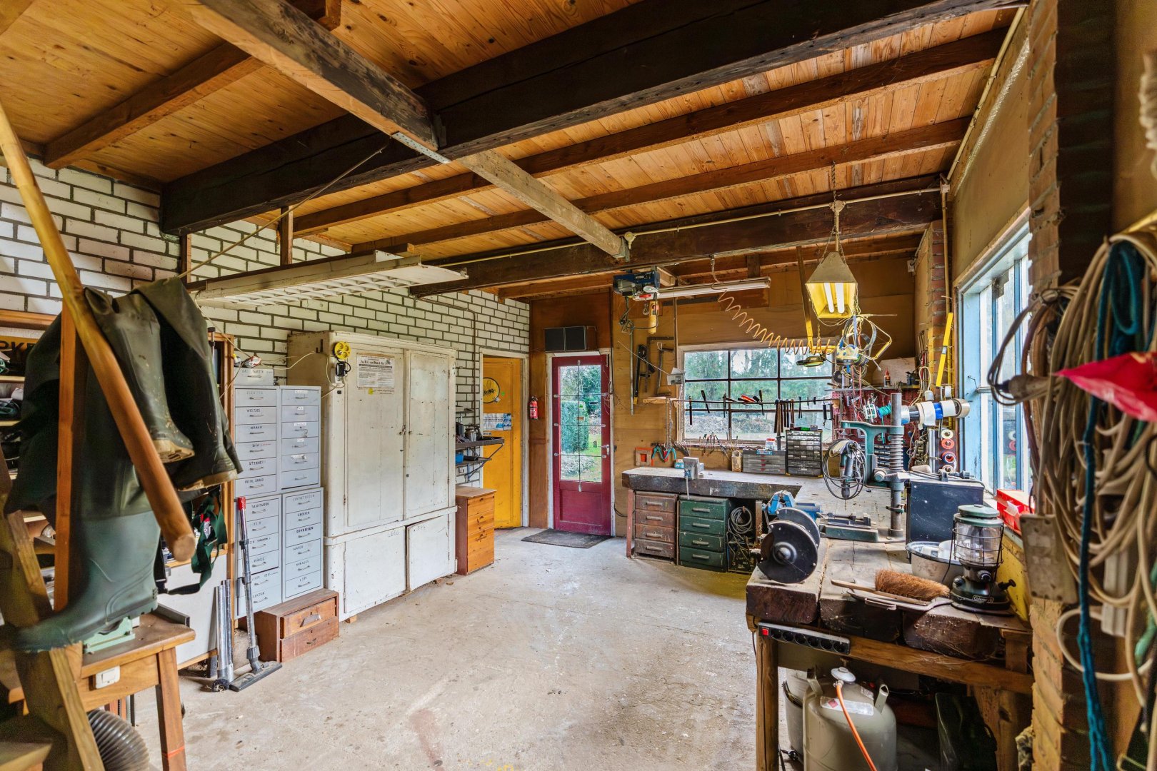 - Grote garage en verrassend veel schuur-, berg- en hobbyruimte