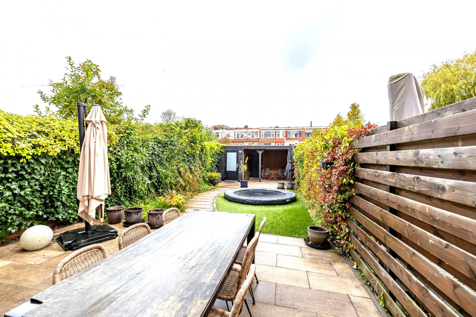 Een ruim en modern huis met een diepe tuin, twee eigen parkeerplaatsen en de stad om de hoek.