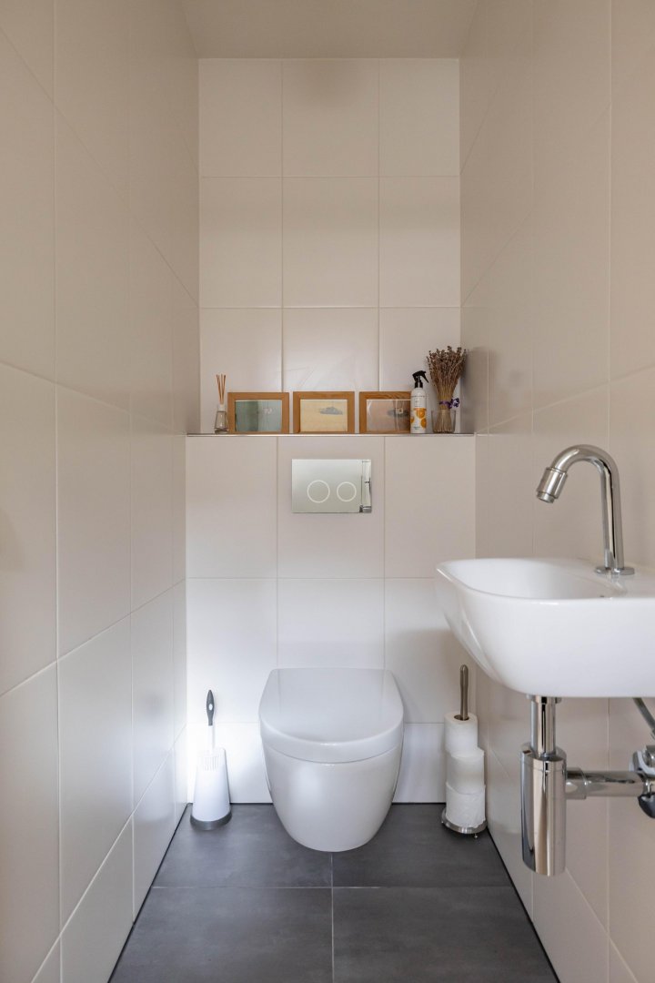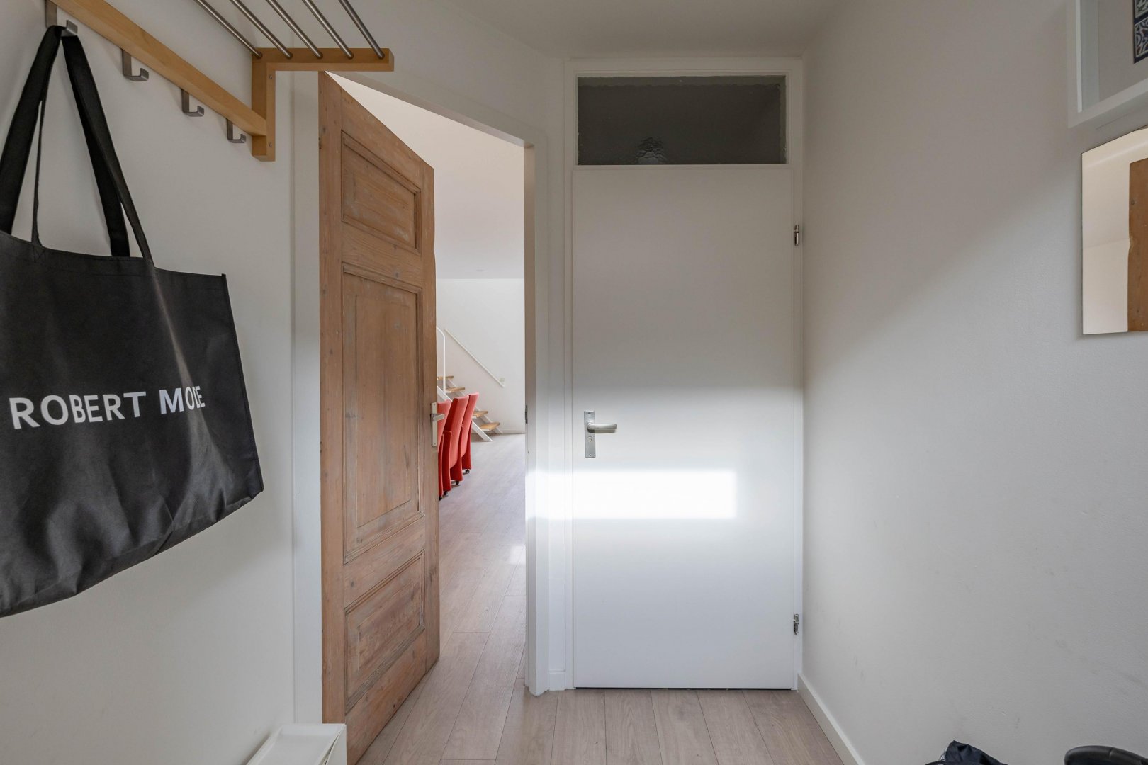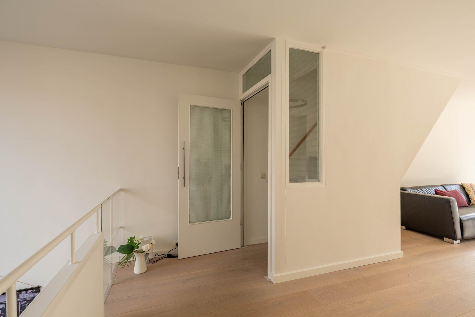 Entree -hal met toilet. Op de begane grond is de woonkeuken waarbij de goed geoutilleerde keuken op de voorzijde is gesitueerd en het eetgedeelte op de achterzijde. Op de achterzijde is een hoge vide met eveneens hoge ramen waardoor deze ruimte een mooie verbinding vormt met de bovengelegen woonkamer. Middels de tuindeuren stap je zo de aantrekkelijke tuin in, een fijne plek om te ontspannen of gezellig te borrelen met vrienden.