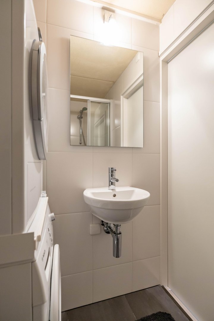 Overloop met vervolgens een slaapkamer aan de voorzijde met directe toegang tot een balkon van 7 m2. Op de achterzijde is een vierde slaapkamer met kastenwand en balkon van 4 m2. Vanaf de overloop is nog een tweede badkamer te bereiken met toilet, douche, wastafel en de aansluitingen voor het witgoed.