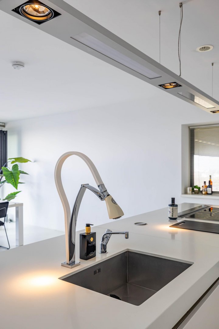 De keuken sluit naadloos aan op de leefruimte en nodigt uit tot lange, sfeervolle avonden. Stel u voor: het zachte geluid van glazen die elkaar raken, het aroma van een verfijnde maaltijd die zich verspreidt, en ondertussen dat weidse uitzicht dat met het uur verandert. Hier wordt koken geen dagelijkse handeling, maar een moment om naar uit te kijken.