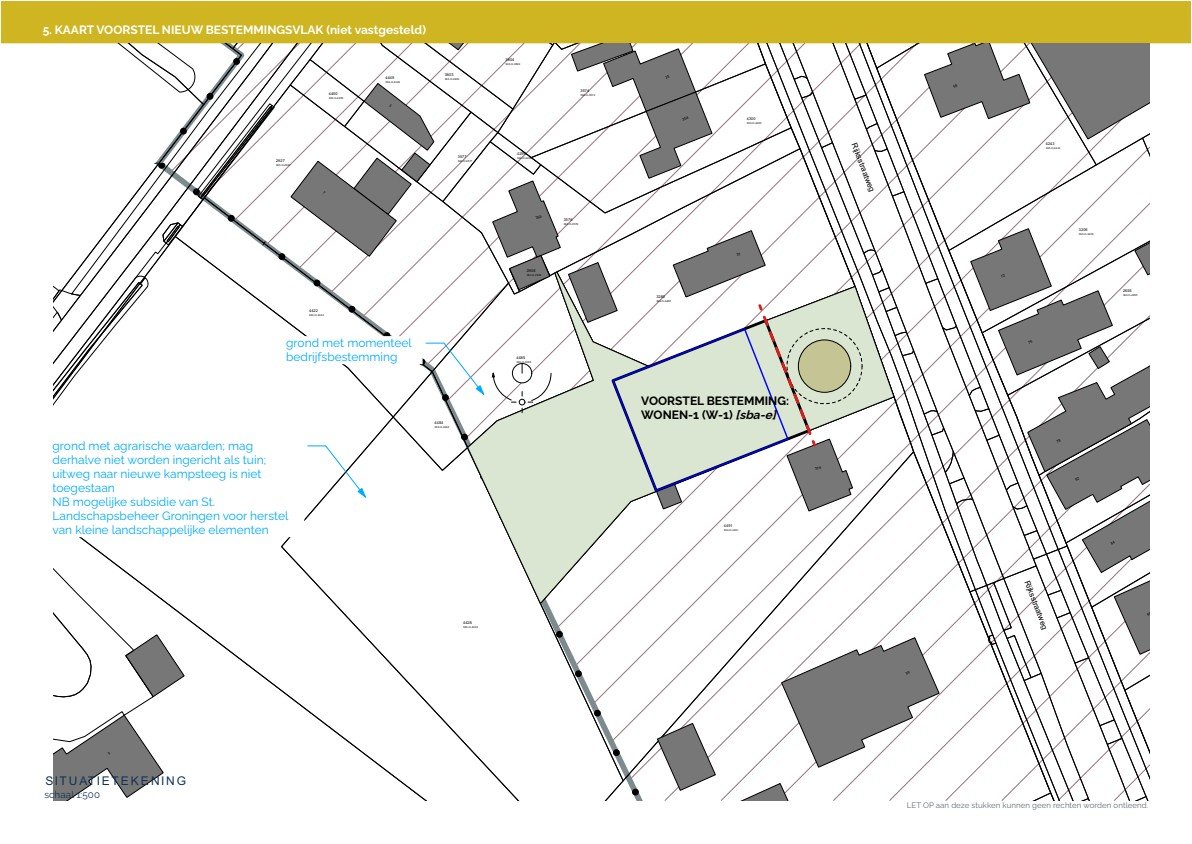 Het huis links van deze bouwgrond betreft het woonhuis behorende bij de voormalige schuur en staat op de nominatie om grondig te worden gerenoveerd zodat hier een mooi, nieuw geheel ontstaat. De huidige bestemming van het perceel dient omgezet te worden naar de bestemming wonen, dit is met de gemeente Groningen al besproken.