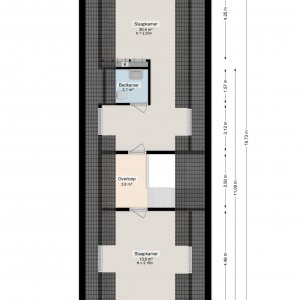 Op de verdieping bevinden zich nog twee ruime slaapkamers (14 m² en 30 m²) en een toilet met wastafel.