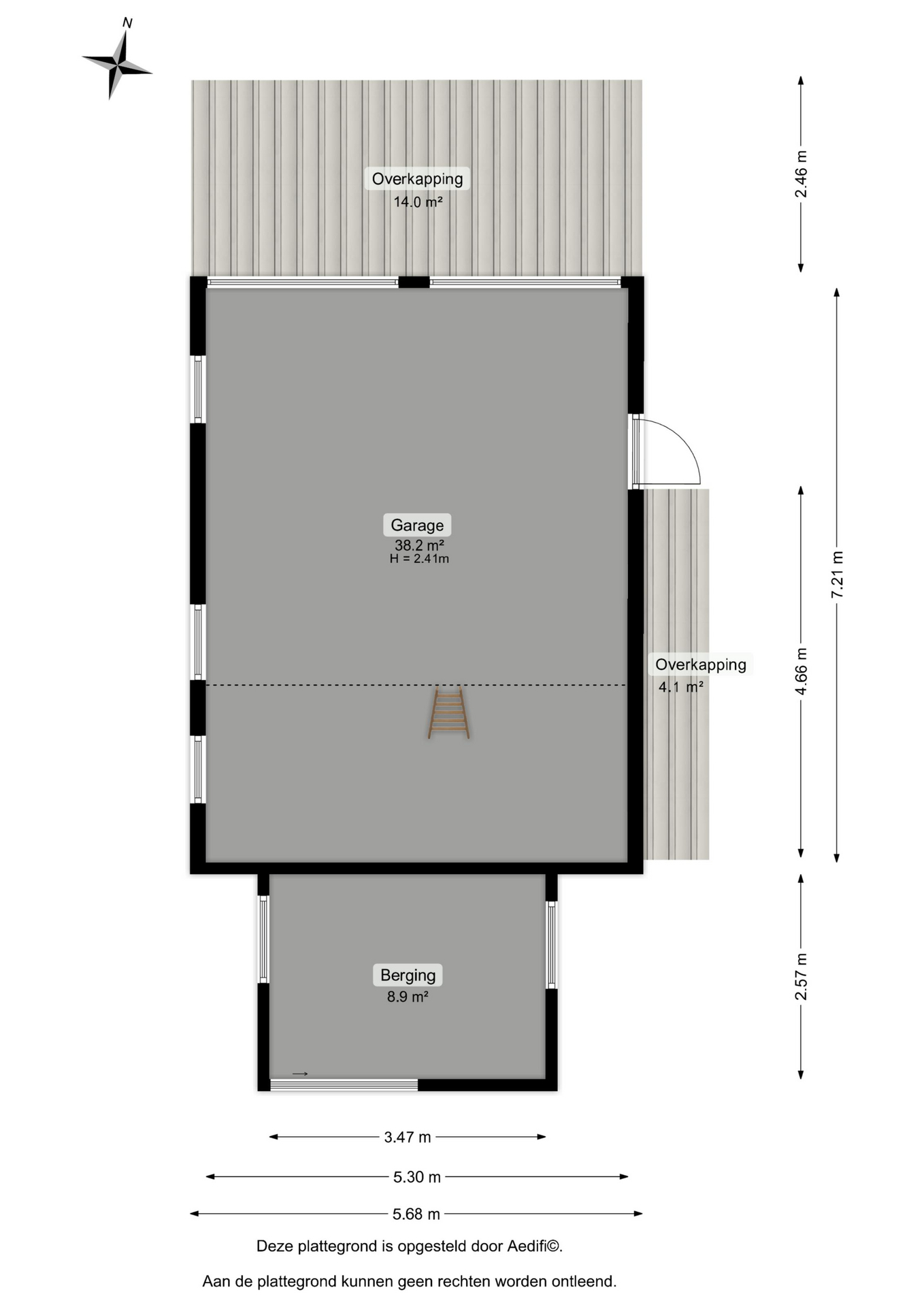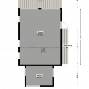 Naast de woonboerderij is een vrijstaande dubbele garage van 38 m² met voorgelegen carport, extra berging aan de achterzijde en zolderverdieping.