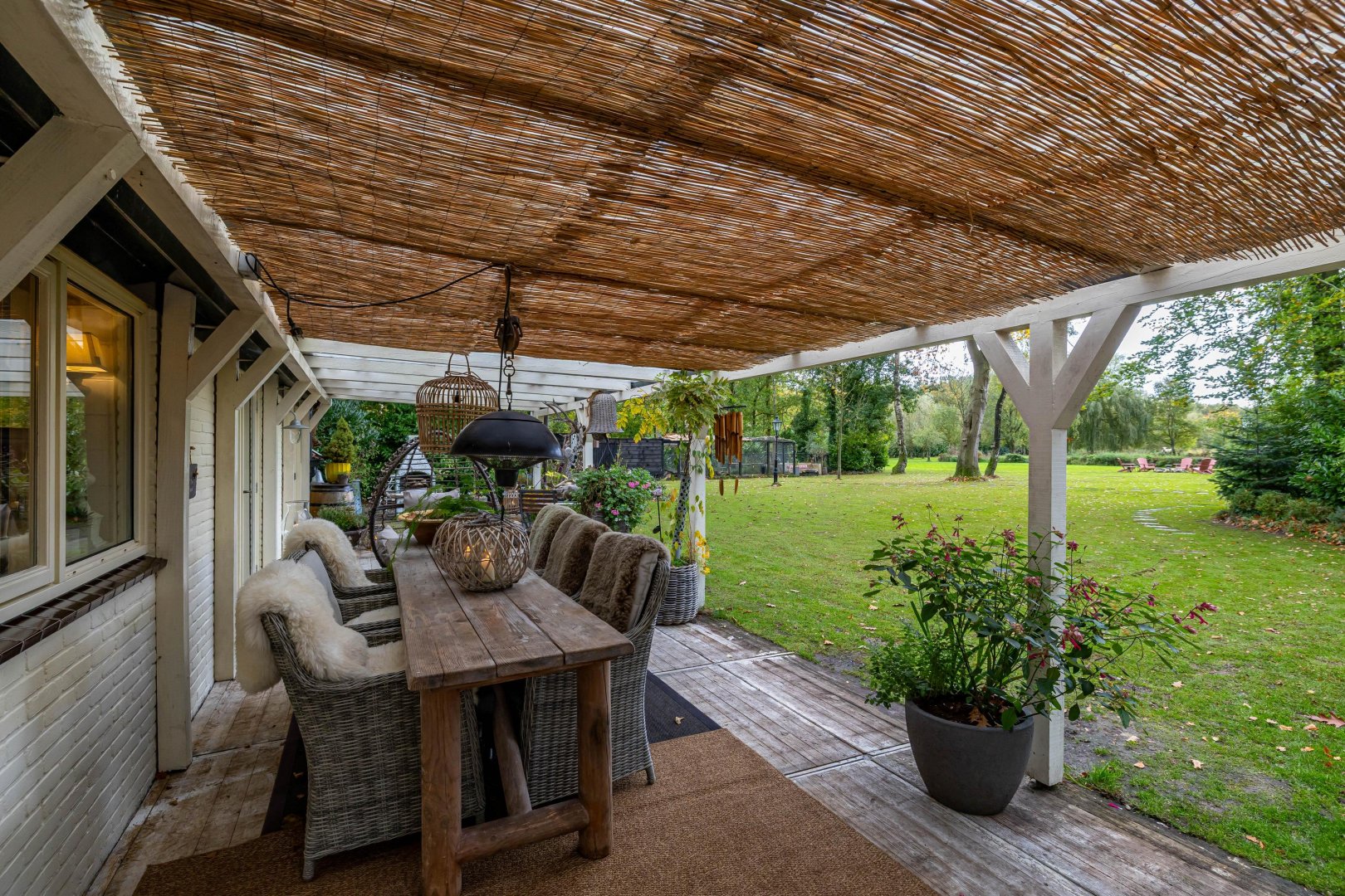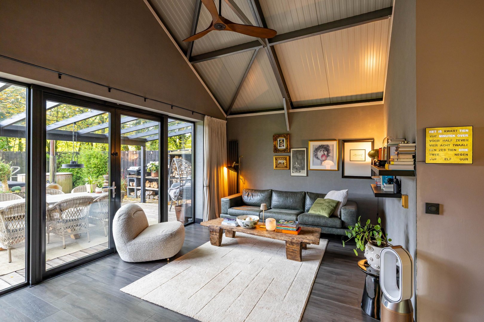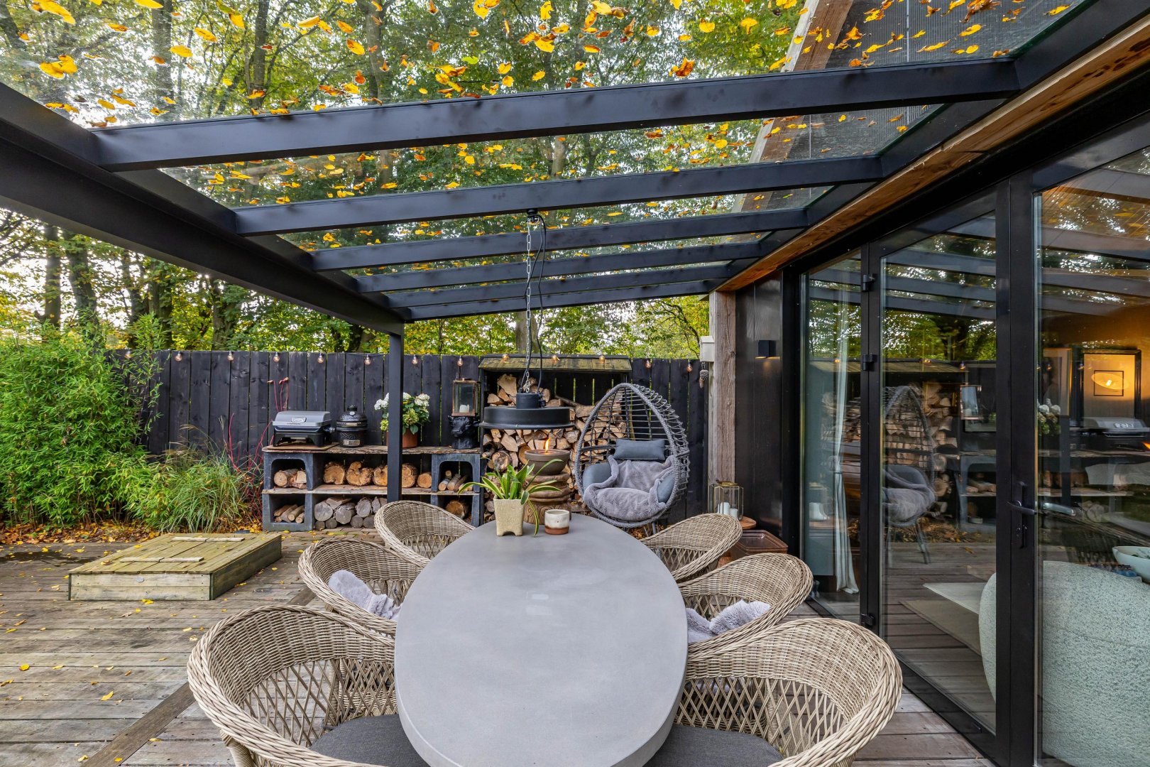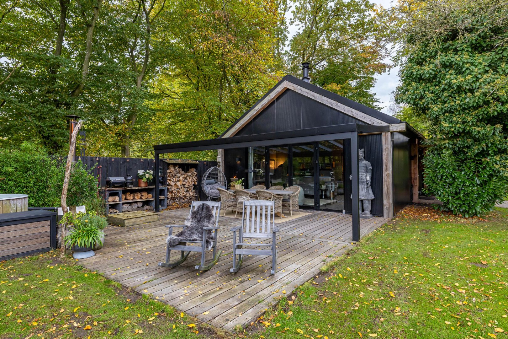 Buiten is een terras, grotendeels overdekt met een mooie glazen overkapping, inclusief Finse hottub! De woning heeft een eigen entree en carport, volledig gescheiden van de hoofdwoning. Dit bijgebouw biedt uitstekende mogelijkheden voor mantelzorg, gastenverblijf, kantoor of atelier.