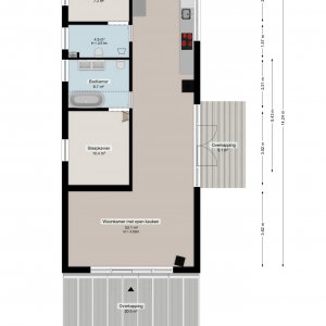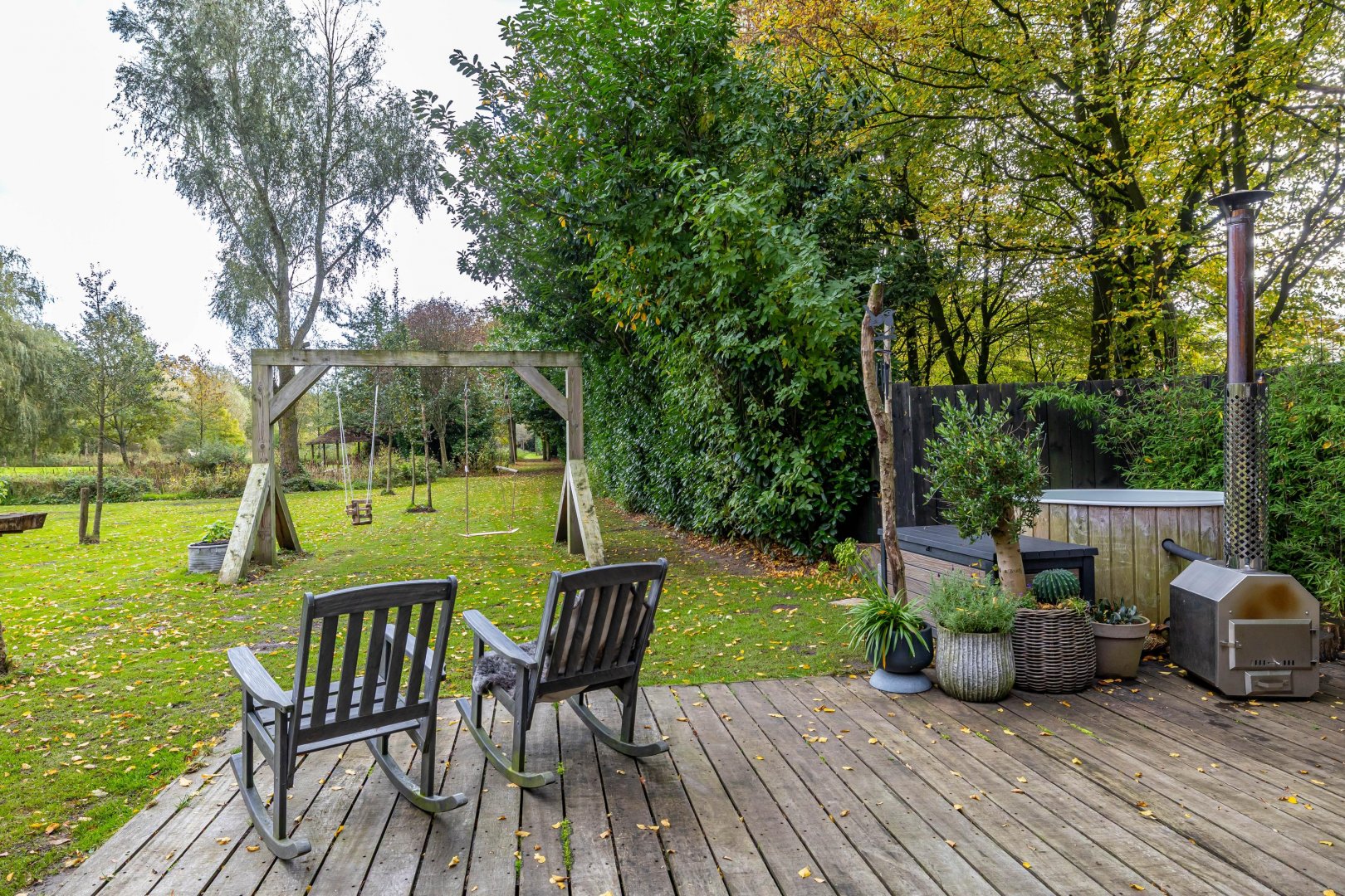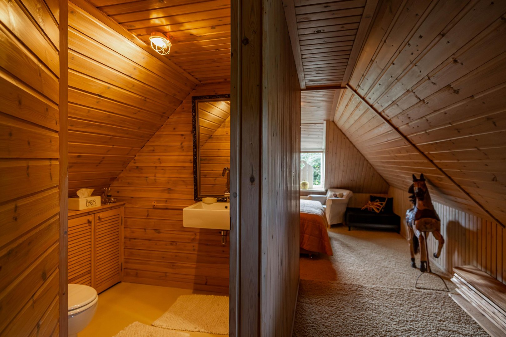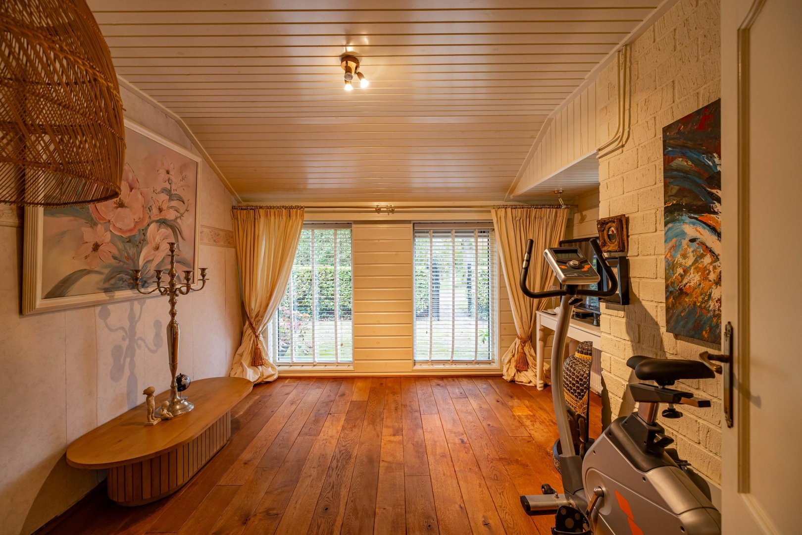 Buiten is een terras, grotendeels overdekt met een mooie glazen overkapping, inclusief Finse hottub! De woning heeft een eigen entree en carport, volledig gescheiden van de hoofdwoning. Dit bijgebouw biedt uitstekende mogelijkheden voor mantelzorg, gastenverblijf, kantoor of atelier.