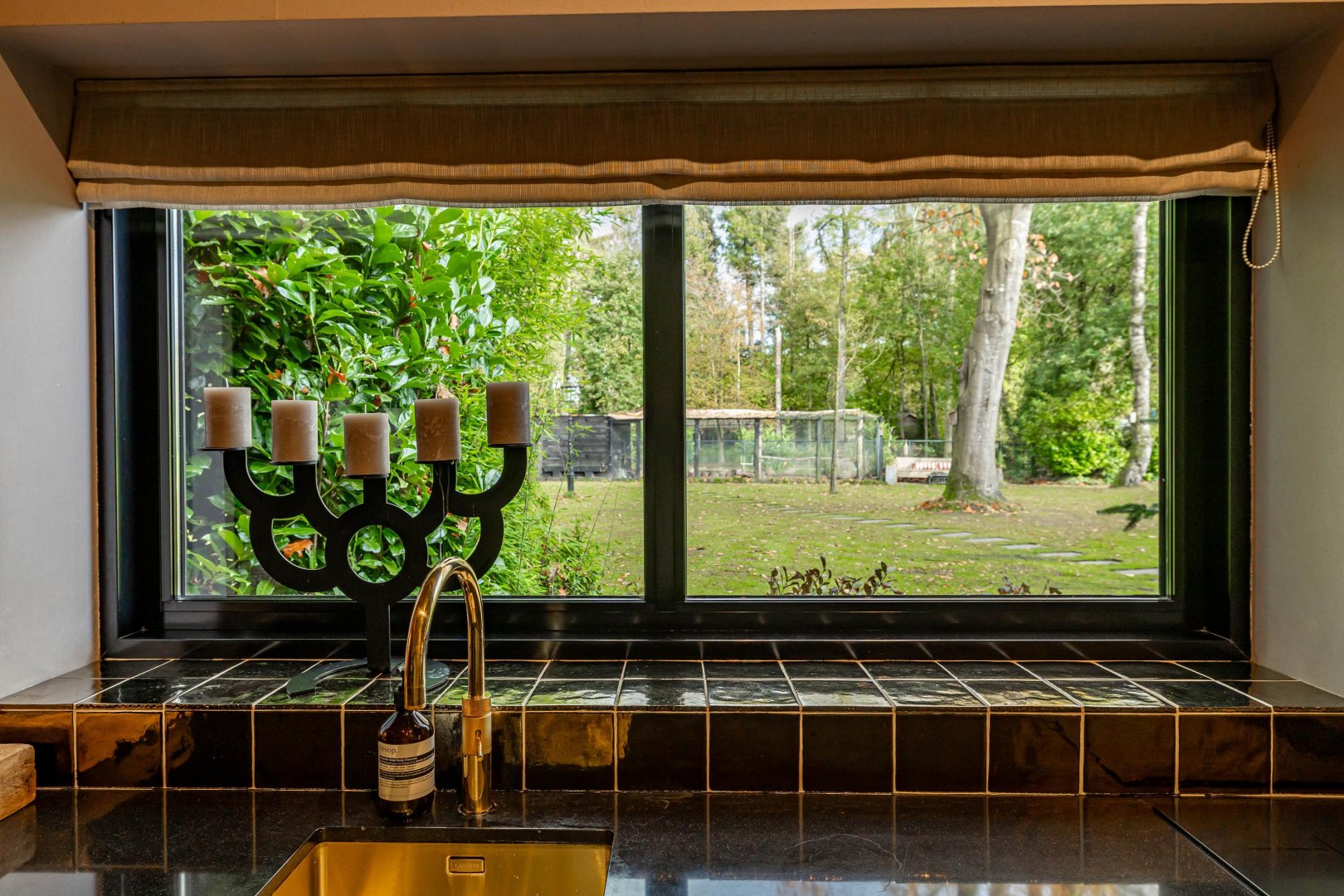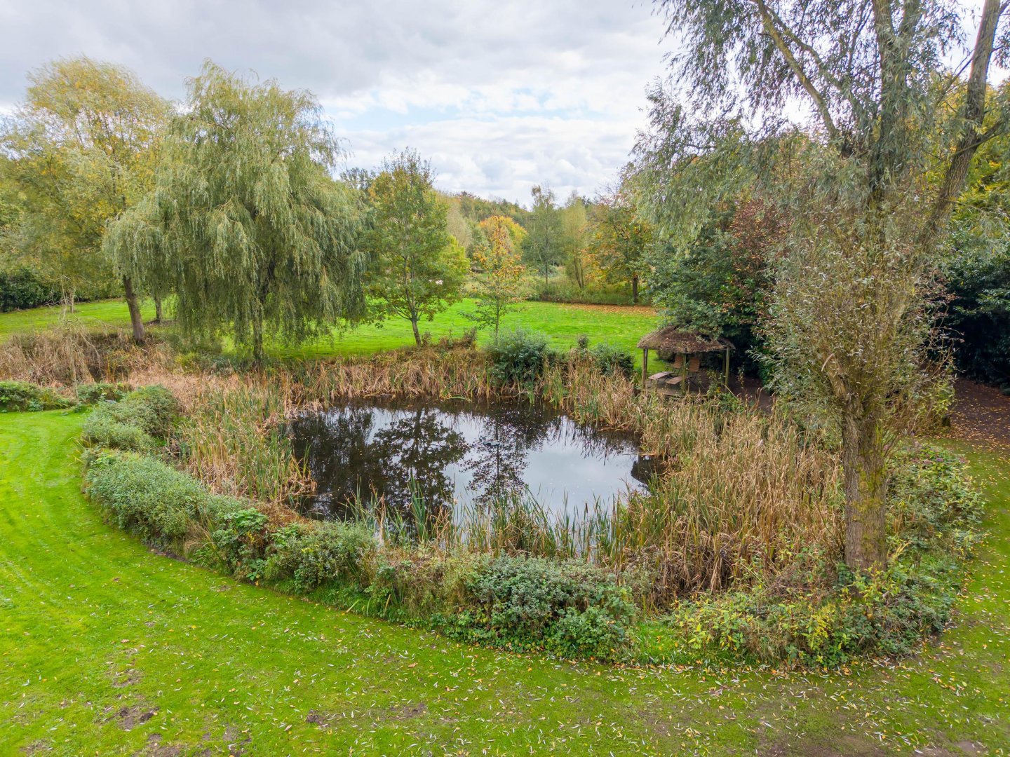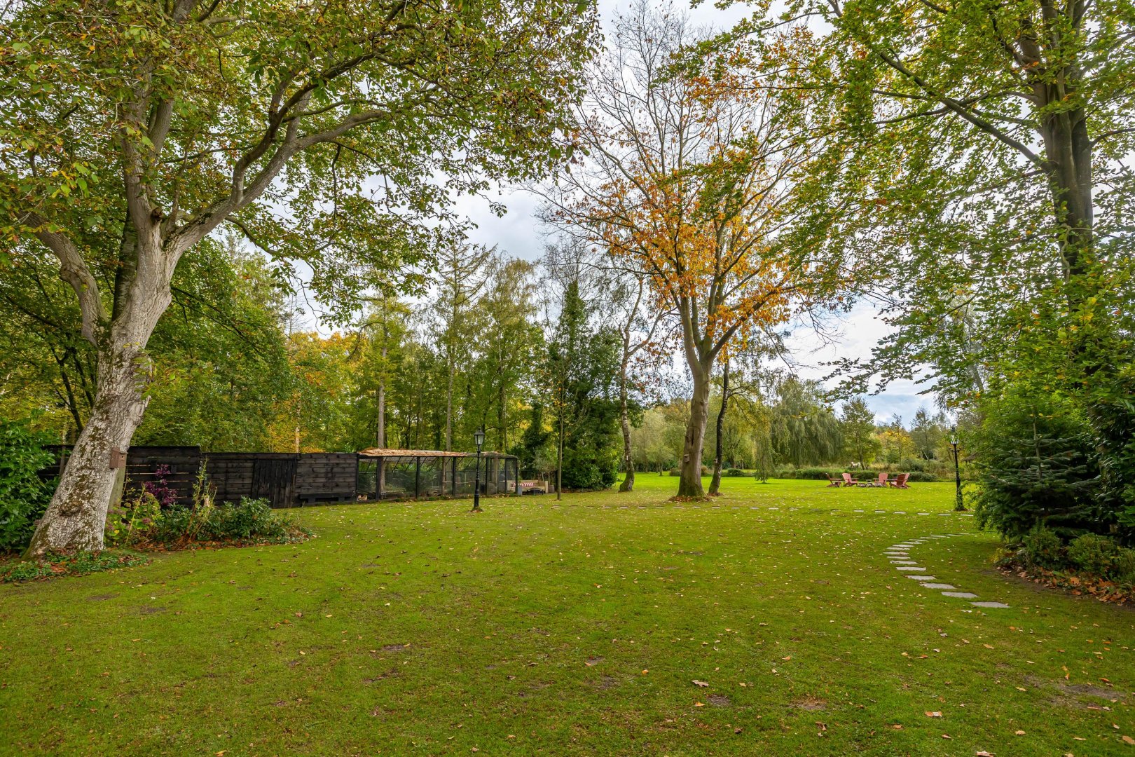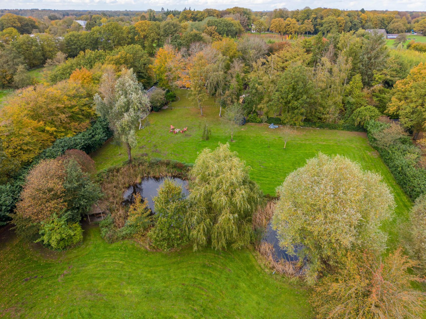 Het geheel is gelegen op een perceel van circa 32.805 m², waarbij de hoofdtuin in basis bestaat uit een riant, volledig met boomsingels omzoomd gazon met vijver. Middels een breed pad om de tuin heen wordt het bos met eikenbomen bereikt. De tuin is altijd met veel zorg, aandacht en liefde onderhouden, is in de basis praktisch van opzet, waarbij is gekozen voor ruimtelijke zichtlijnen en intimiteit door het vele volwassen groen. De spreekwoordelijke “groene vingers” moet je toch wel hebben of willen krijgen bij een dergelijk parkachtig geheel.