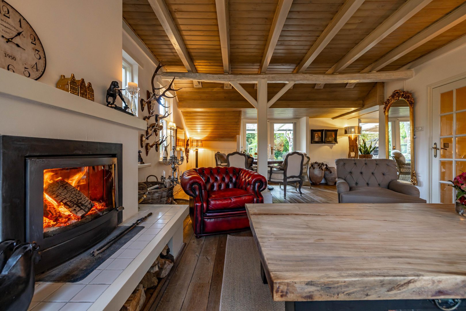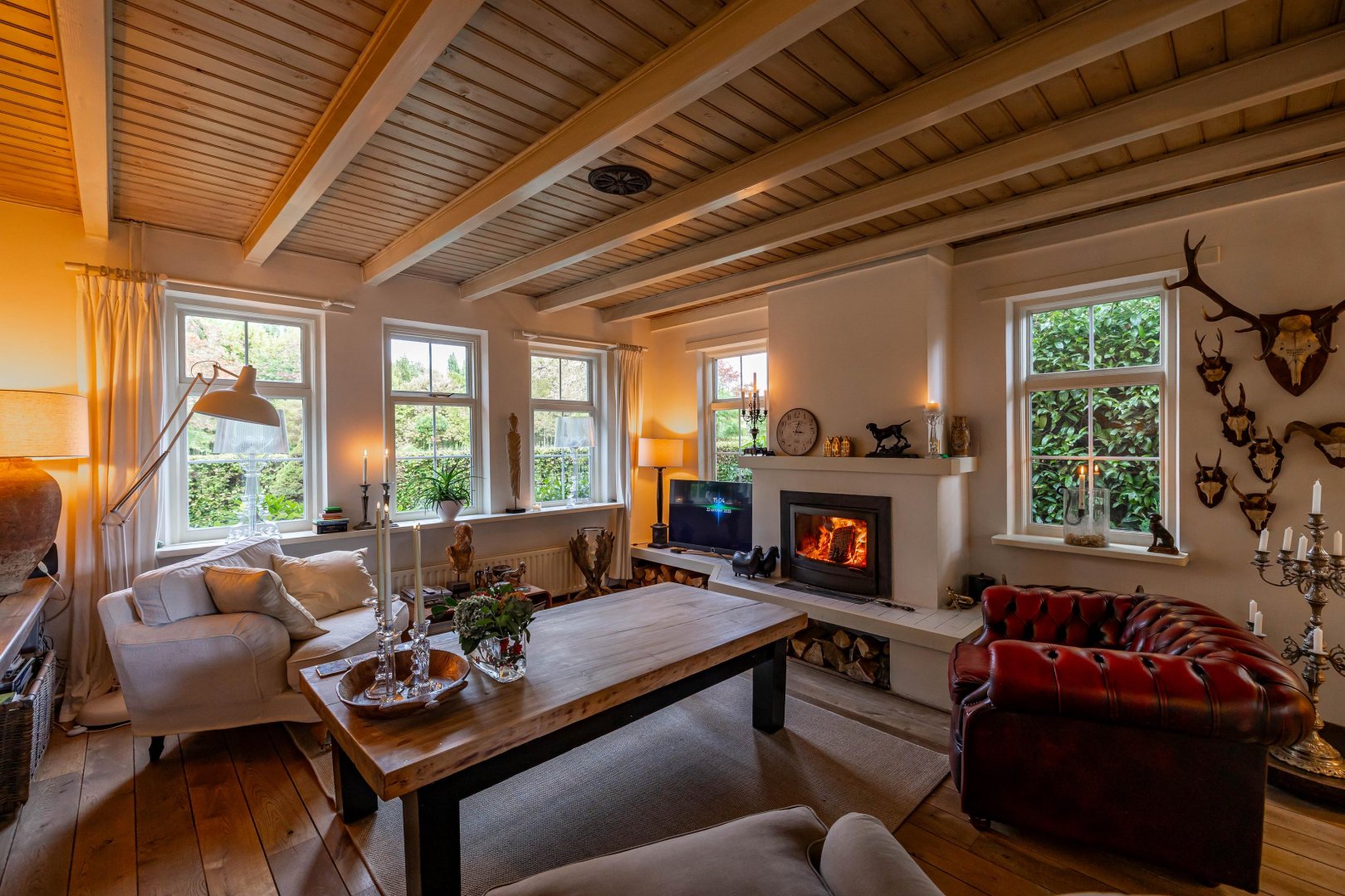 Bij binnenkomst merk je direct de charme van de woonboerderij. De entree met hal biedt toegang tot het gastentoilet, garderobe en trap naar de verdieping. De woonkamer heeft sfeervolle houten balken, een gezellige houten vloer en open haard. De openslaande deuren naar het overdekte terras op het zuiden en de vele ramen bieden prachtige doorkijkjes over zowel de voor- als achtertuin. De keuken staat in open verbinding met de woonkamer en is voorzien van inbouwapparatuur, met aansluitend een bijkeuken en achteringang.