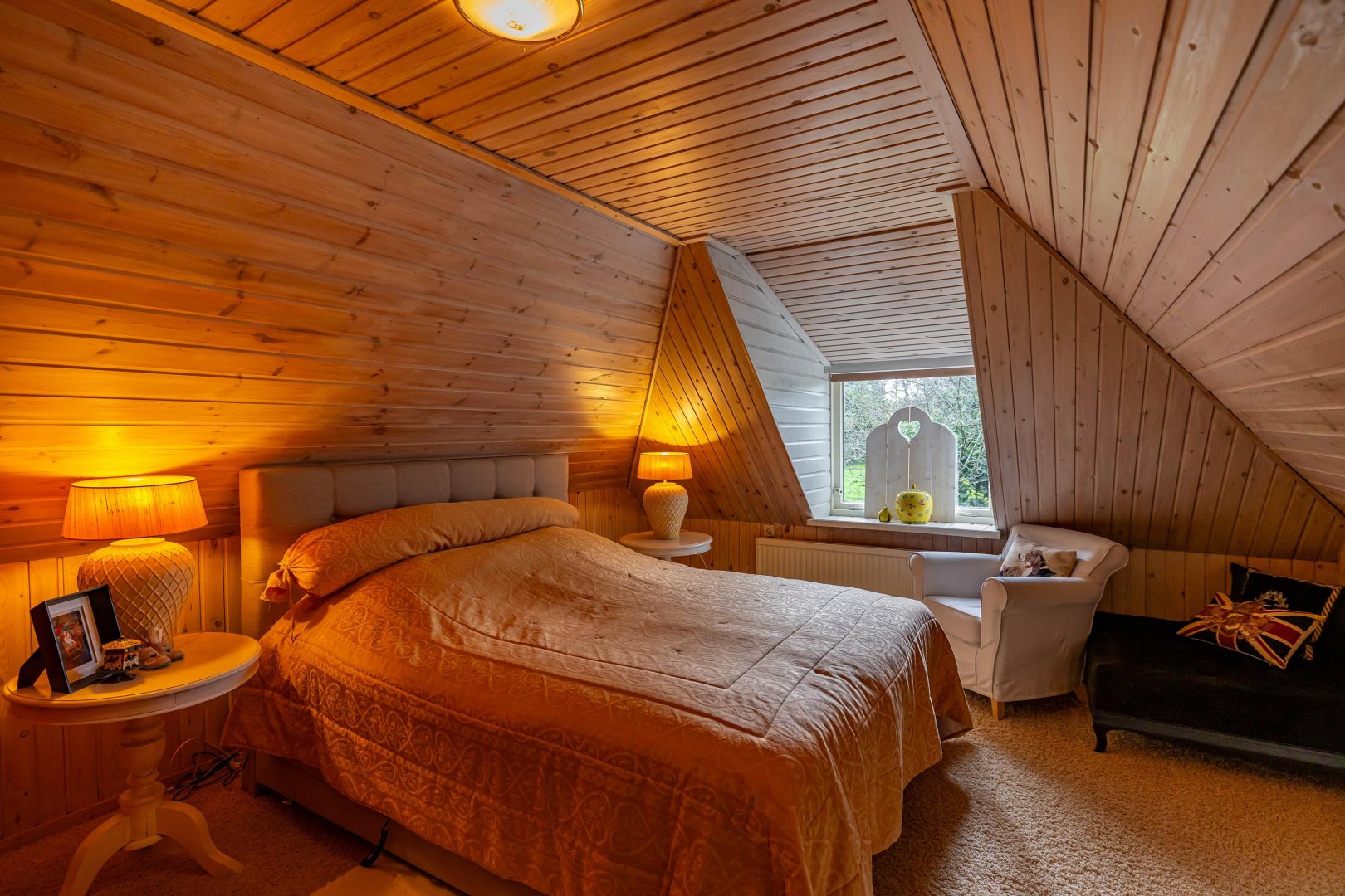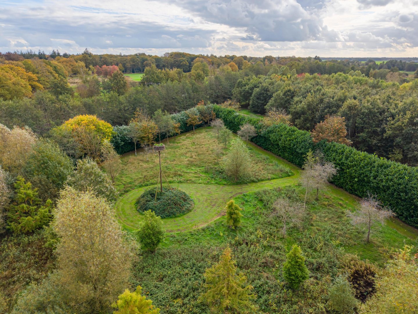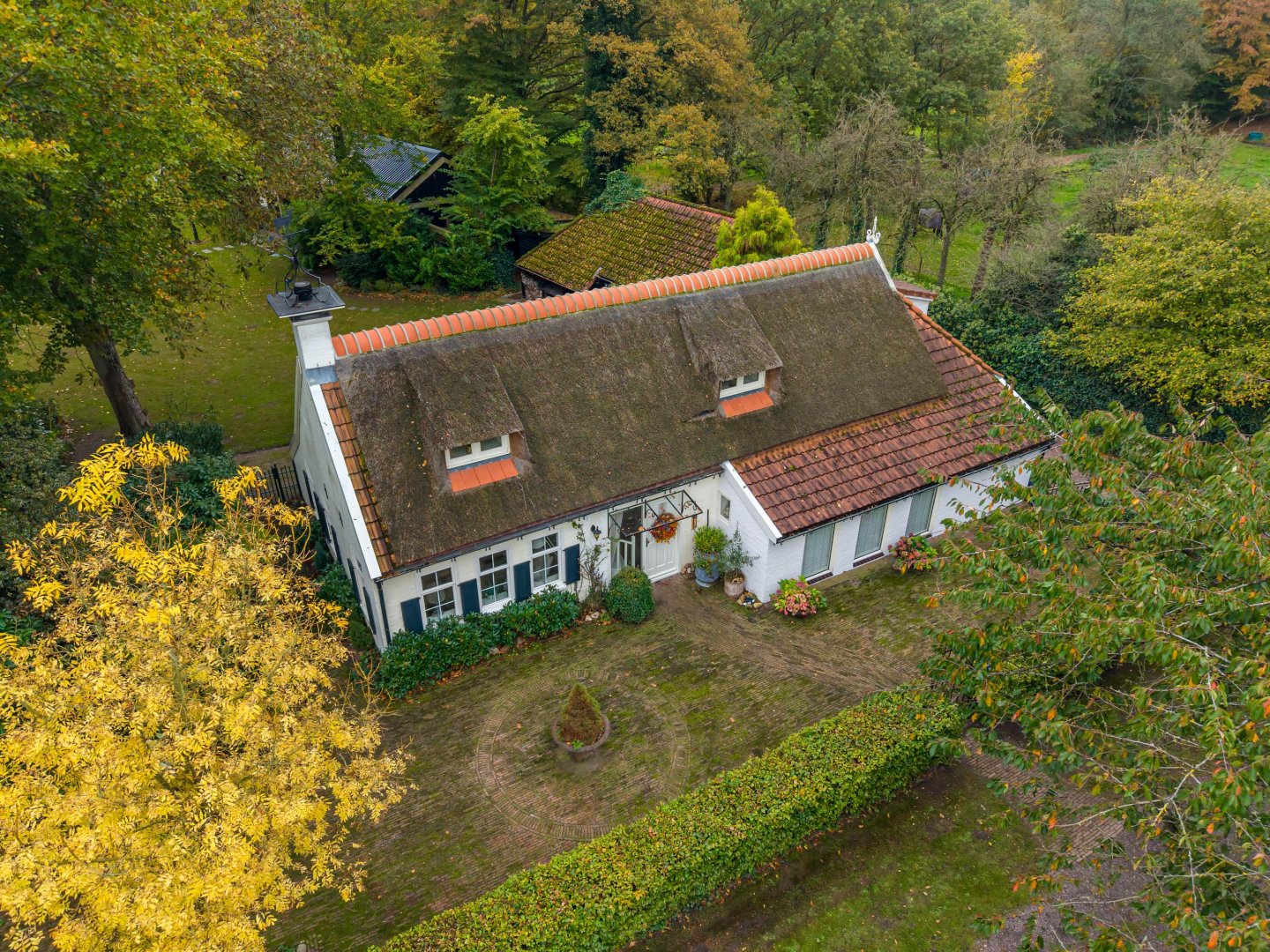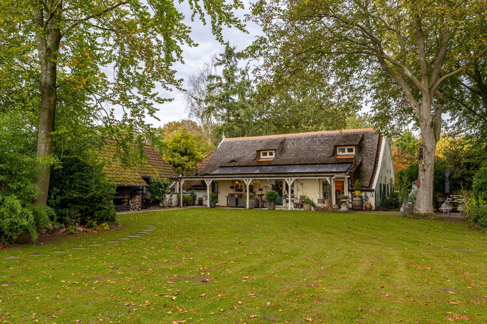 De lange oprijlaan van 220 meter strekt zich door het groen en doet je slechts raden naar wat er verscholen ligt: een sfeervolle rietgedekte woonboerderij met ernaast een ruime dubbele garage, meerdere carports, vele bergingen en een mantelzorgwoning die oogt als een moderne schuurwoning. Volledig omringd door boomsingels, omvangrijke gazons, een enorme vijver en zelfs een eigen eikenbos. Zien is beleven!