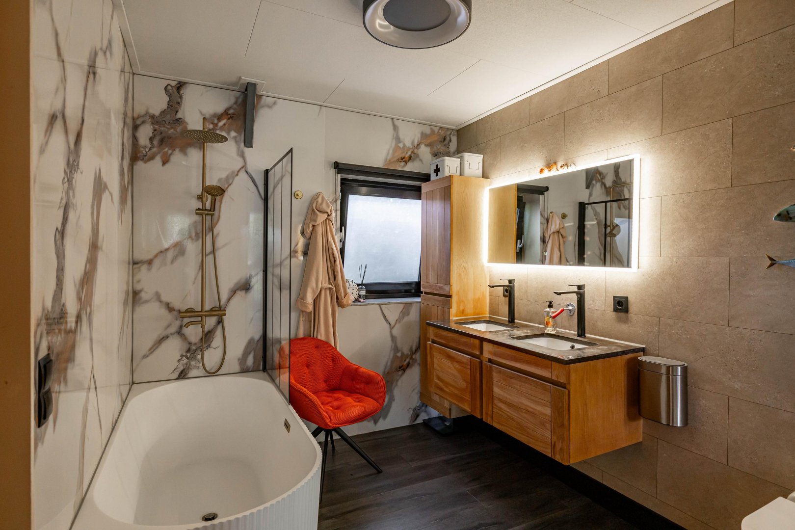 Daarnaast zijn er een tweetal slaapkamers en een badkamer met toilet, ligbad en dubbele wastafel. Er is nog een tweede gastentoilet en een wasruimte.