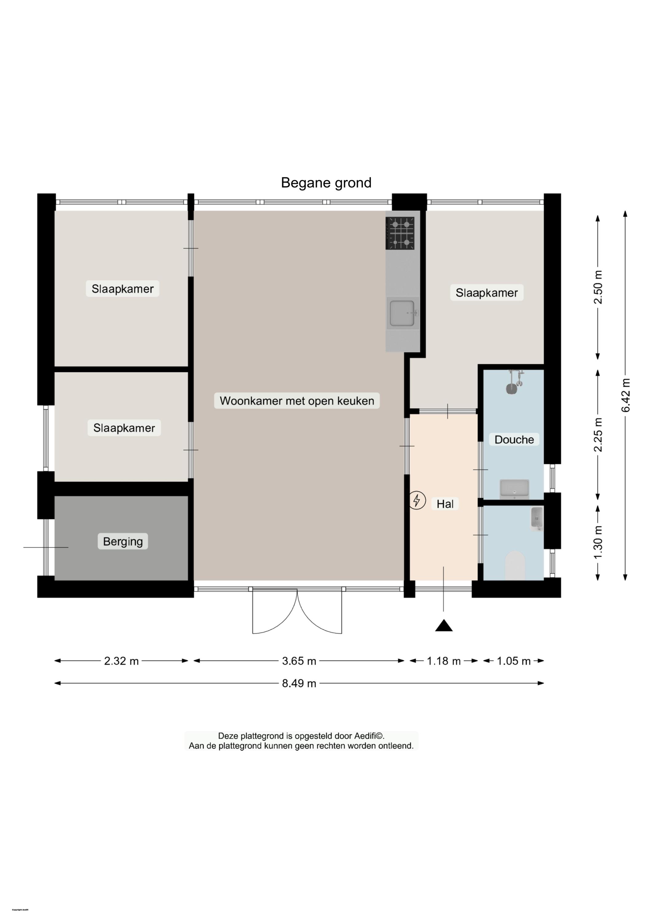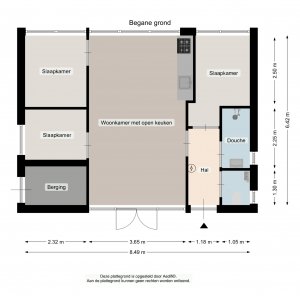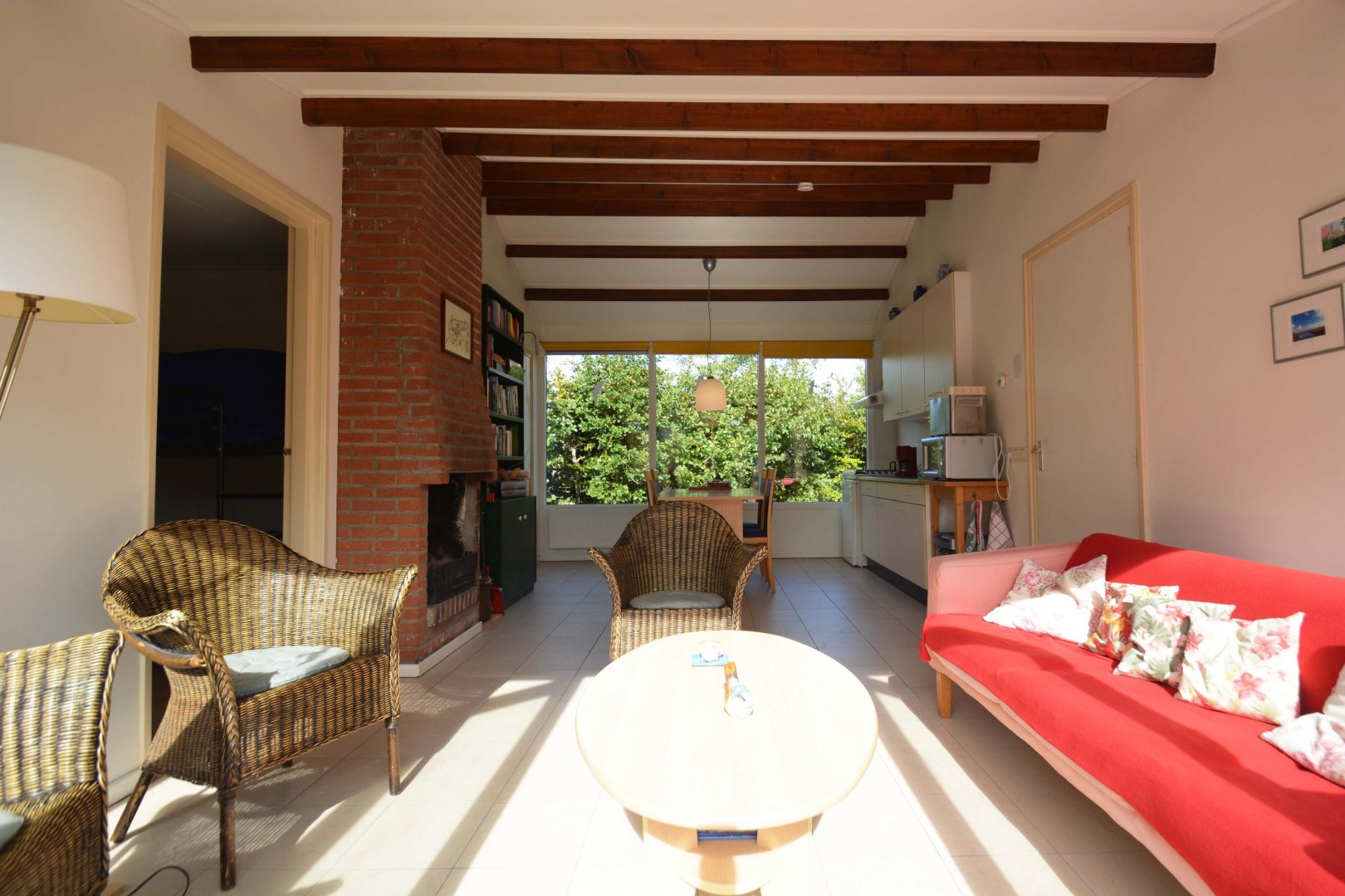 Centraal in het huis zien we de uitgebouwde woonkamer met open keuken. Vervolgens aan de ene zijde twee slaapkamers en aan de andere zijde de derde slaapkamer, de badkamer, separaat toilet en hal. Tenslotte beschikt dit huis ook over een inpandige berging voor bijvoorbeeld tuinmeubilair of de fietsen. De bungalow is voorzien van dubbel glas, betonvloeren met vloerverwarming en daardoor is het in elk seizoen aangenaam vertoeven in deze bungalow.
