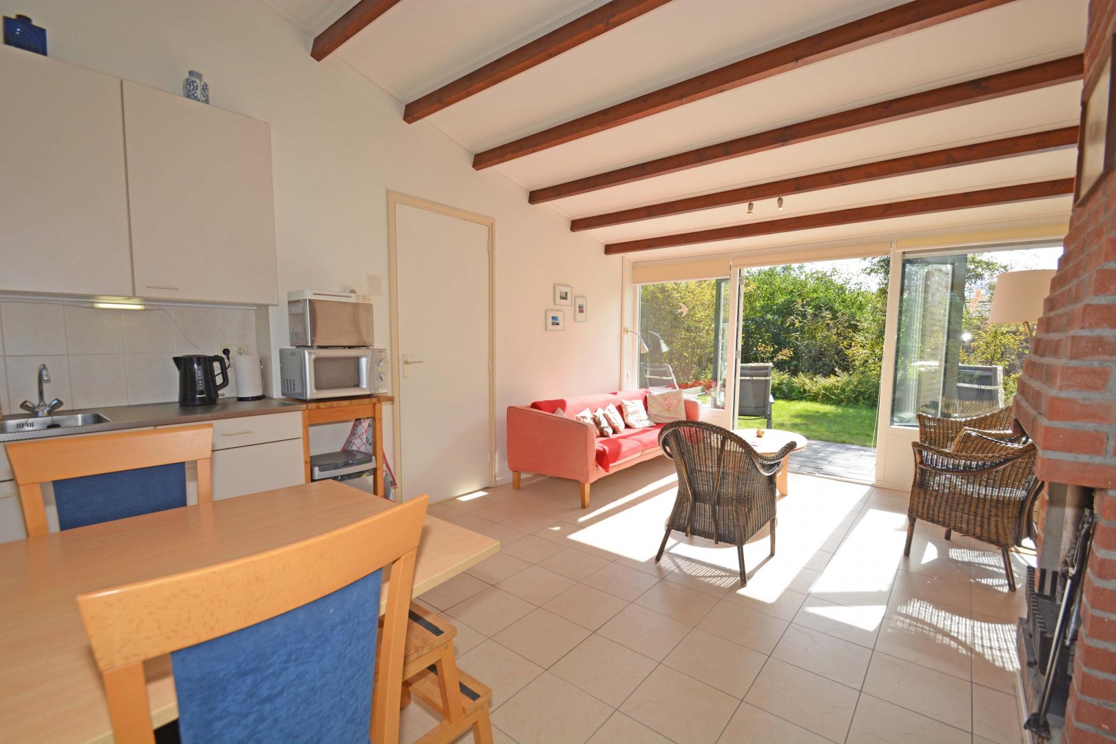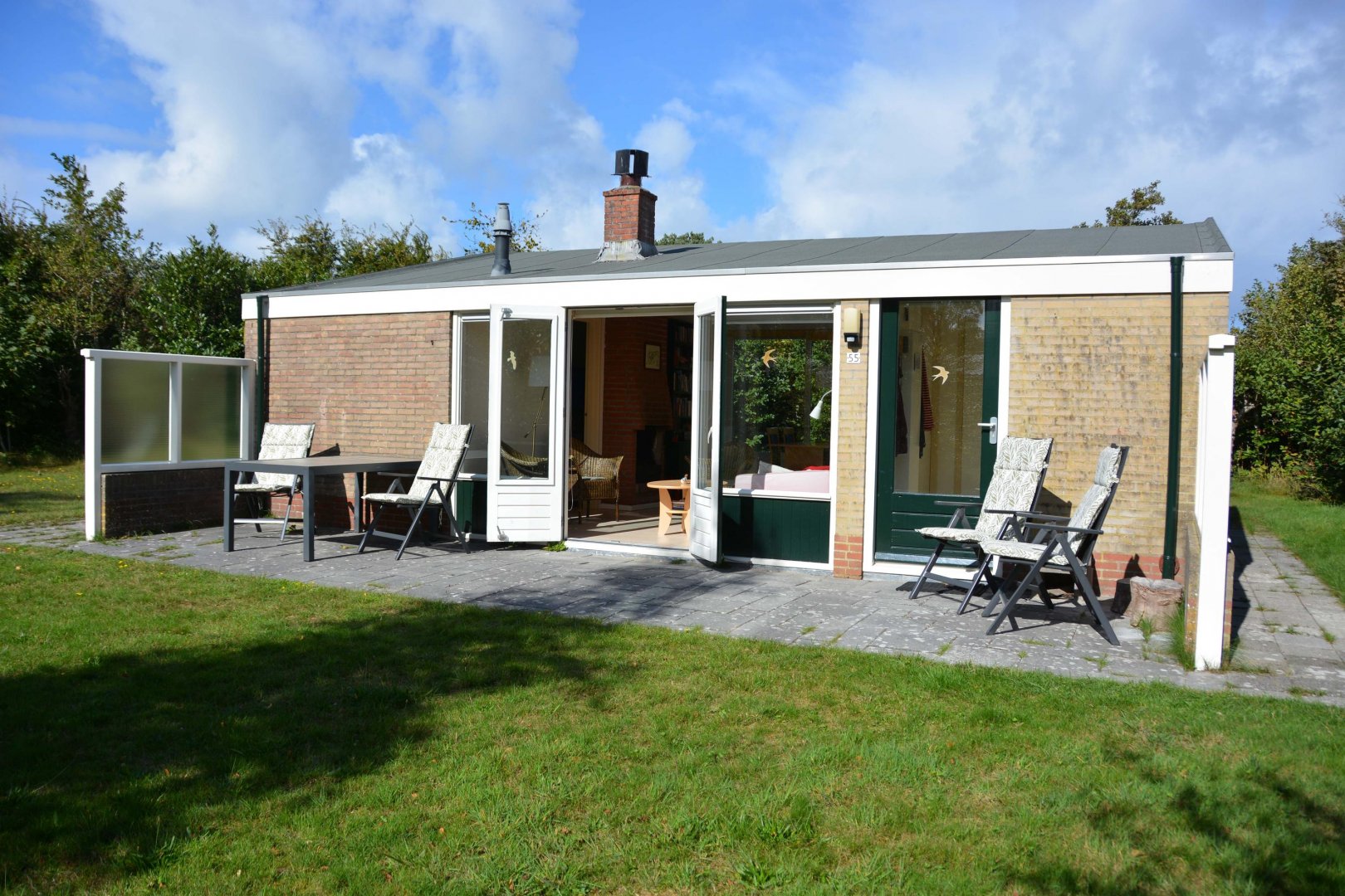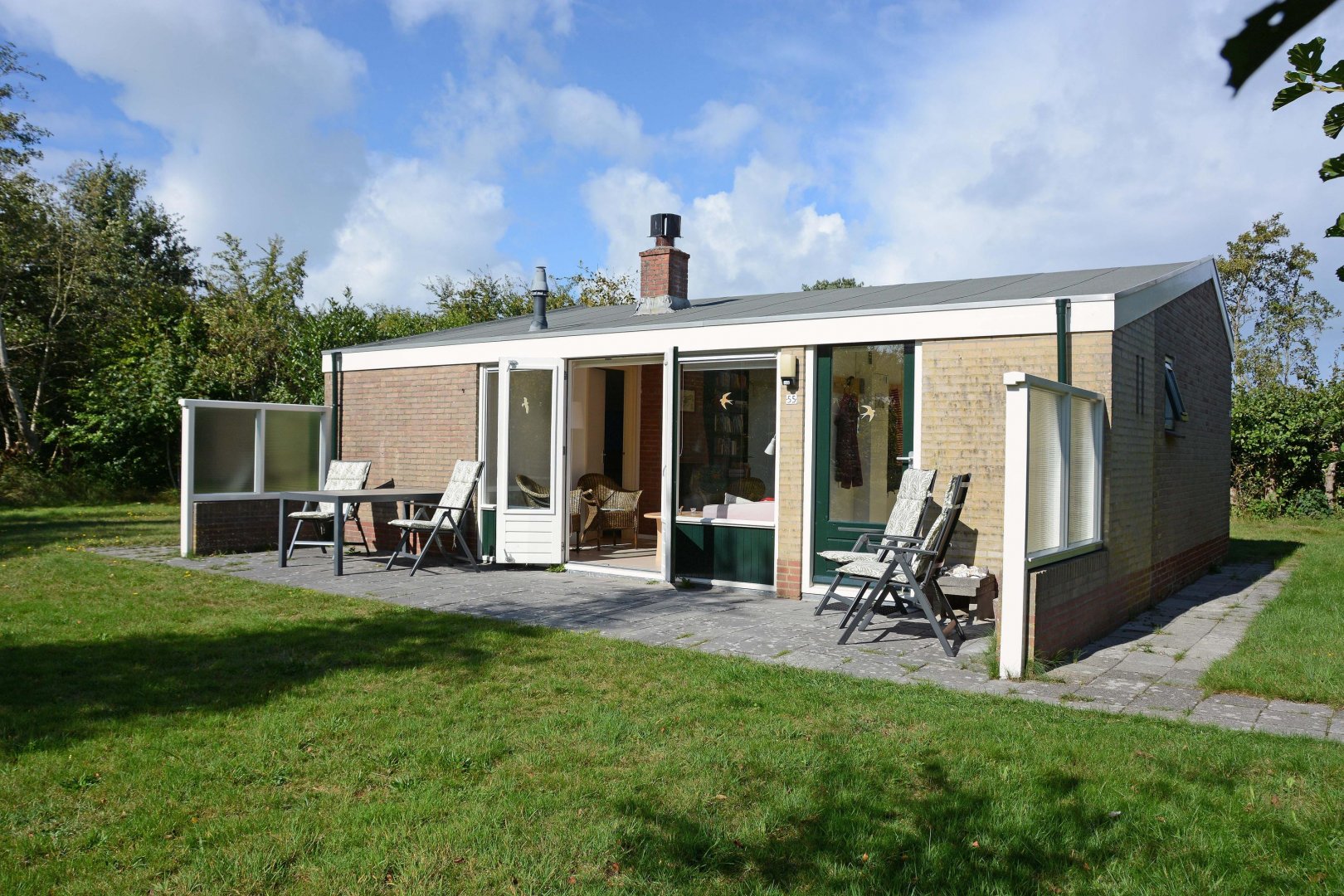 Deze aansprekende en volledig verbouwde (2006) vakantiebungalow ligt mooi beschut op park "De Monnik" net buiten het dorp van Schiermonnikoog. Deze locatie ligt eigenlijk precies tussen boot, dorp en natuur in. Het leuke is dat dit huis drie slaapkamers heeft en daarmee voor verschillende doelgroepen interessant is. Bovendien is de bungalow aan de terraszijde uitgebouwd waardoor het niet alleen groter is geworden maar ook een geheel eigen uitstraling heeft gekregen. De inrichting is sfeervol en het meubilair ziet er nog netjes uit en is bij de koopsom inbegrepen.