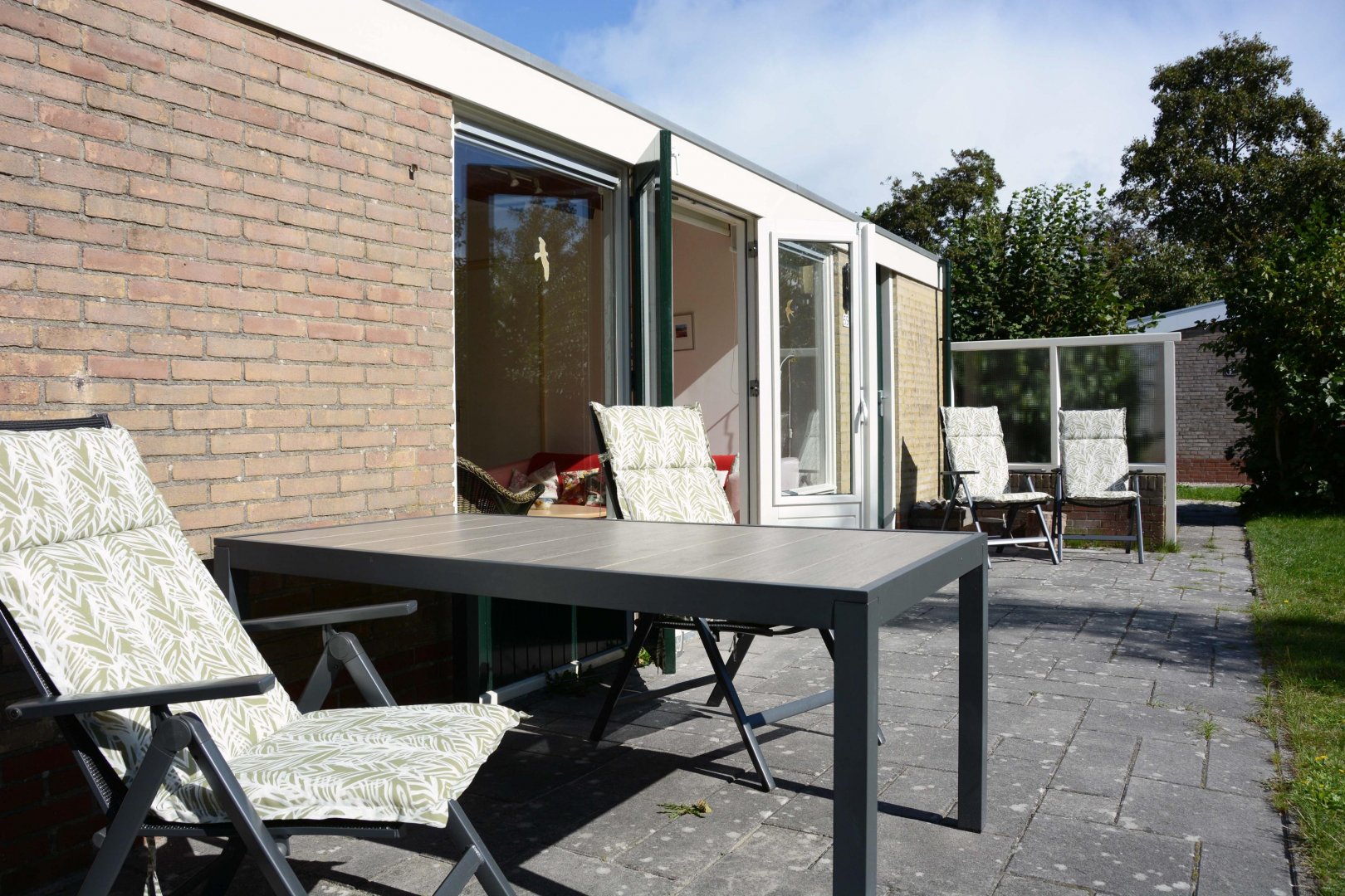 Rondom de woning ligt een heerlijke tuin. Het terras is op het zuiden gelegen en door de aanwezigheid van de windschermen kunt u al vroeg in het voorjaar hier heerlijk buiten genieten van het eerste zonnetje.