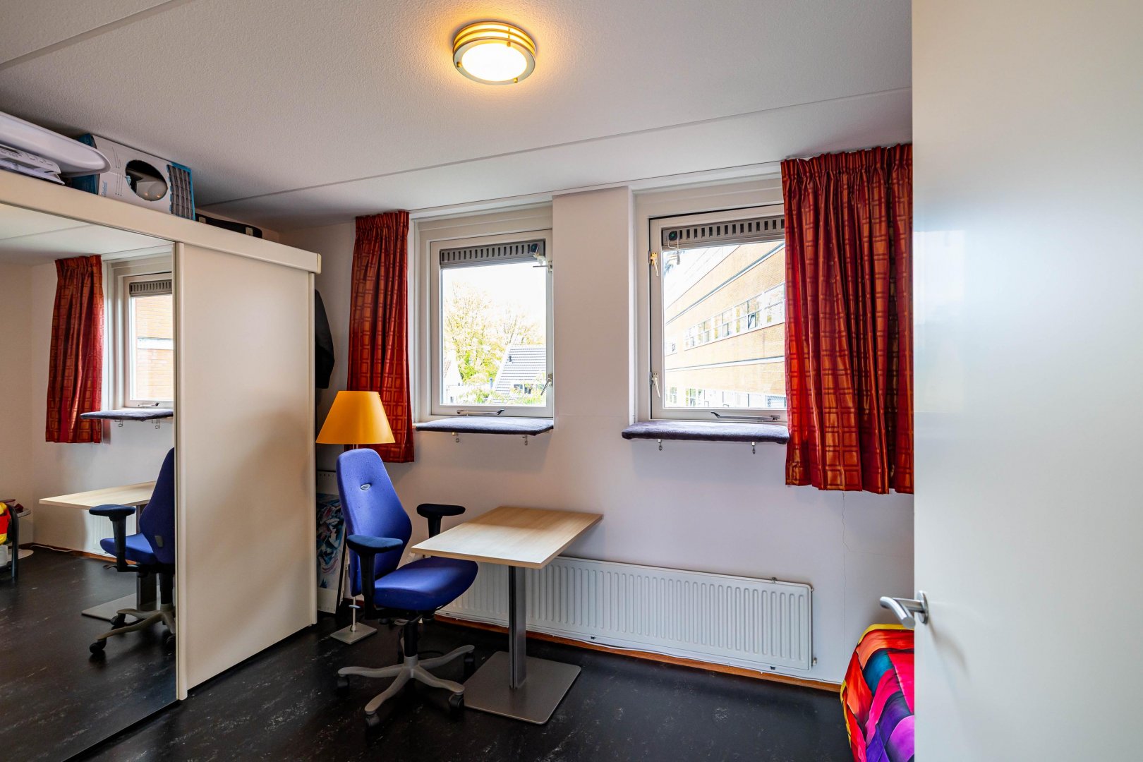 Derde verdieping: overloop, kast met cv-ketel, derde slaapkamer aan de achterzijde van circa 13m², werkkamer/ logeerkamer circa 10m² + kleine pantry en schuifpui naar het beschut gelegen dakterras (20m2) aan de voorzijde van het huis op het Zuidwesten.
