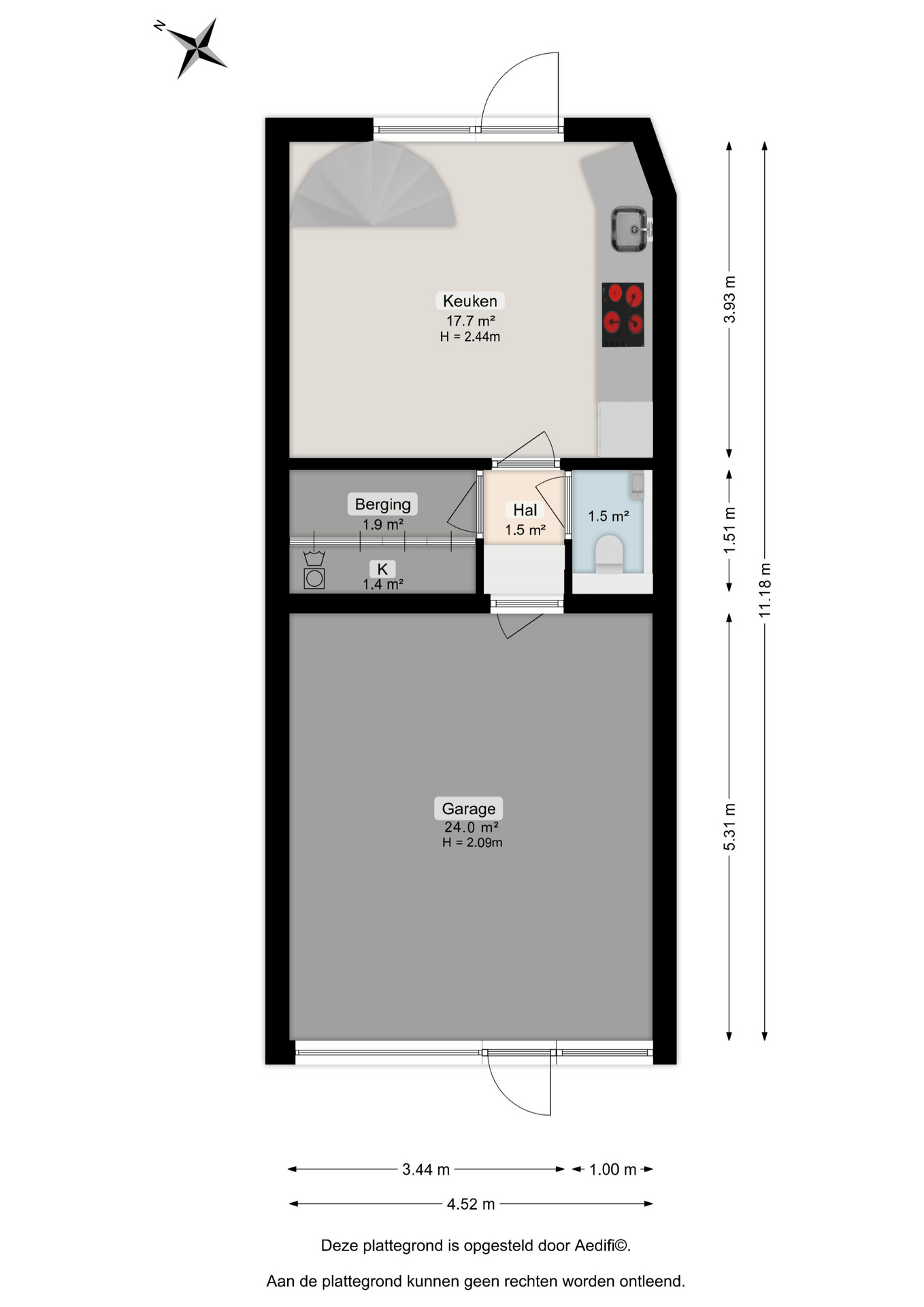 Als u de deur op de begane grond neemt dan komt u in de garage van circa 24 m² met ruim plaats voor een auto en daarnaast nog ruimte voor kasten, fietsen, motor en bijvoorbeeld een werkbank. Vanuit hier komt u in een halletje met modern toilet (2022) en een bijkeuken met plaats voor de wasmachine en droger, een wijnklimaatkast, een ingebouwde vriezer, bergruimte en garderoberuimte voor de jassen. Binnendoor naar de achtergelegen woon/eetkeuken. De keuken is licht en strak vormgegeven en circa 18 m² groot. De keuken is heeft een algehele 'facelift'/modernisering ondergaan in 2022 en beschikt o.a. over een Quooker (kokend + sparkling), vaatwasser, koelkast, oven en inductiekookplaat. Daarnaast is er plaats voor een grote eettafel, de achtergevel is heerlijk licht door de grote hoge pui met glas van 5 meter hoog. Via de woonkeuken kunt u naar buiten naar de stadstuin van circa 35 m².