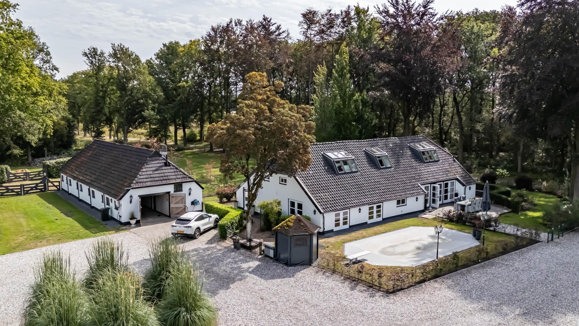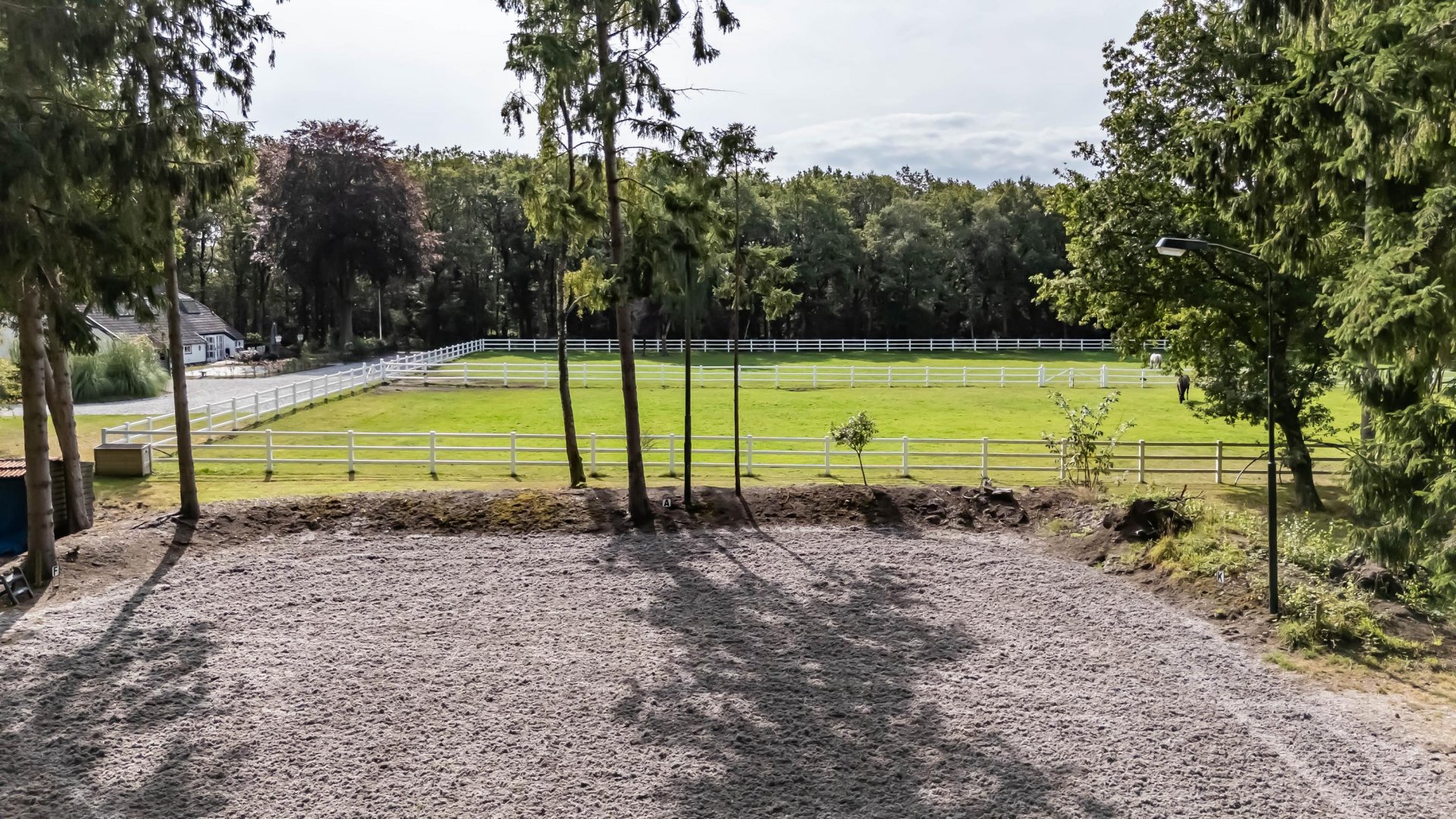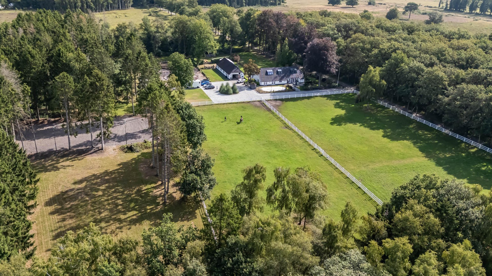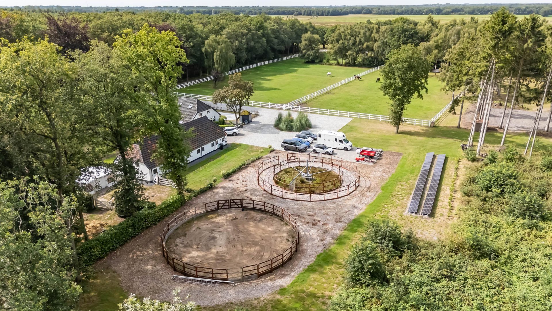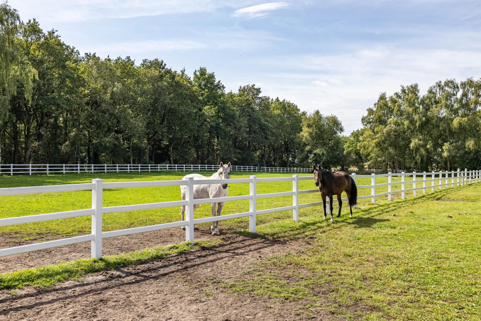 De faciliteiten voor paardenliefhebbers zijn uitgebreid: er zijn twee opdeelbare weilanden met stijlvolle omheining, een professionele rijbak, longeercirkel, een stapmolen en een luxe stalruimte met 4 professionele stallen voorzien van warm en koud water en een zadelkamer. De weilanden hebben een eigen grondwater beregeningsinstallatie. Het verzorgde terrein wordt omringd door eigen gazons, bosschages en terras. Direct aan het zonneterras ligt een zwembad welke door een warmtepomp wordt verwarmd - een uitnodigende plek om te ontspannen.