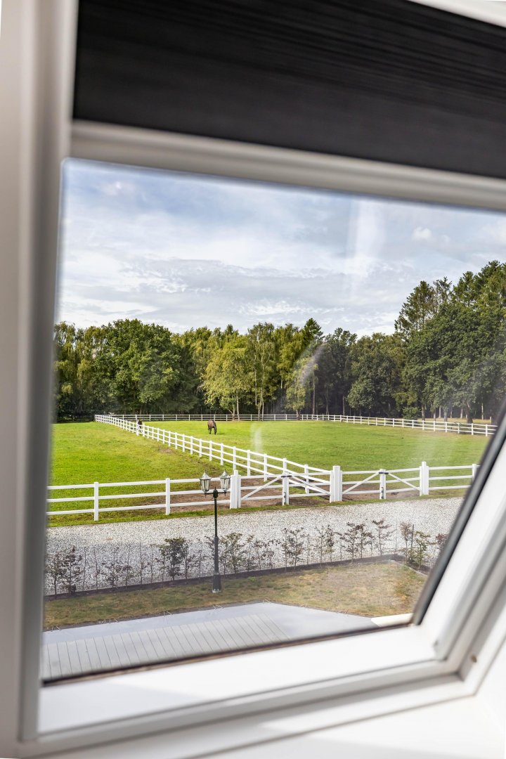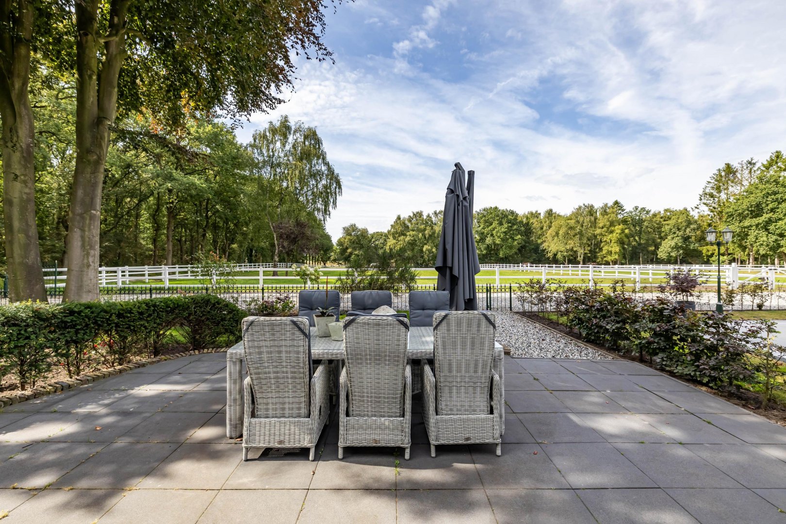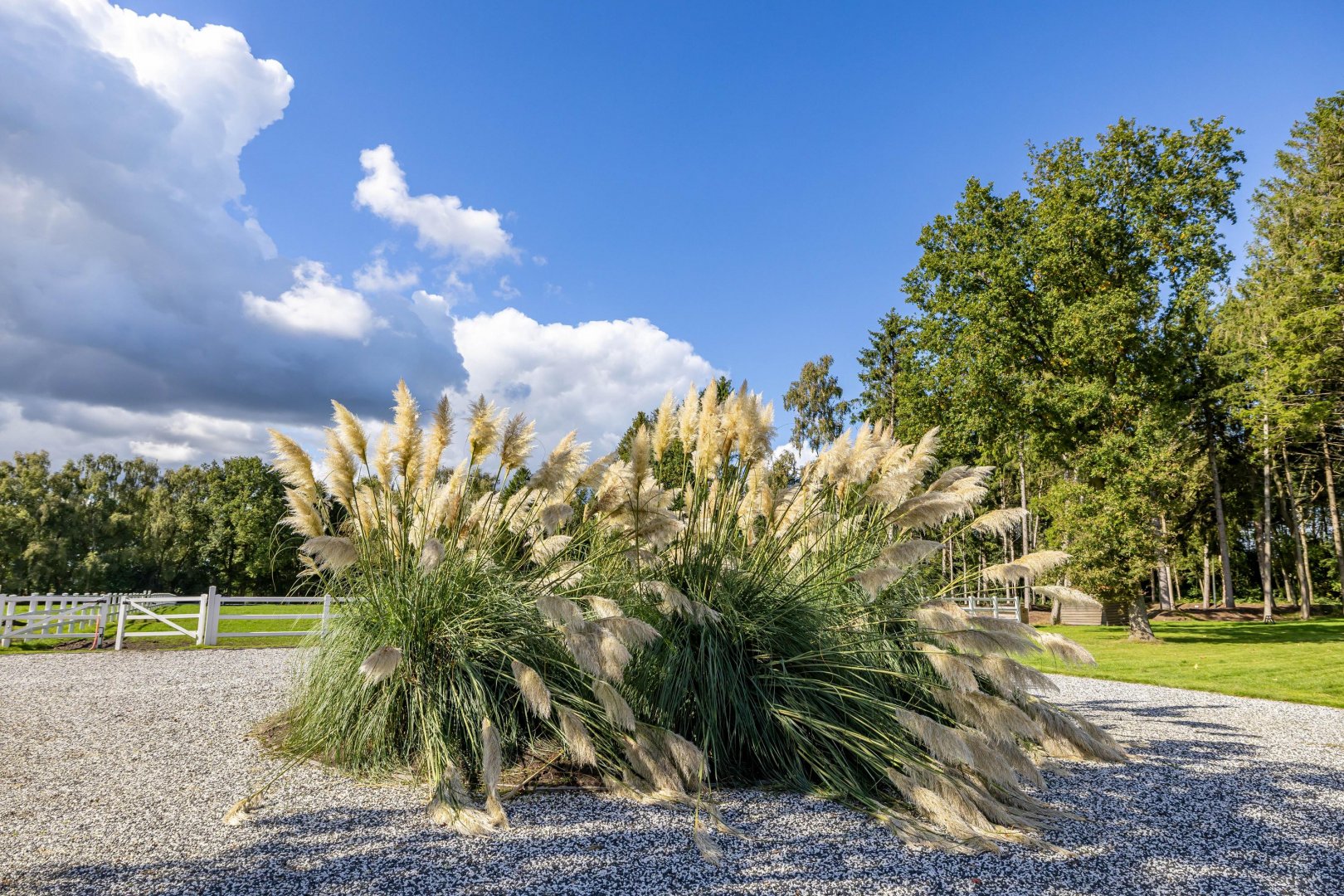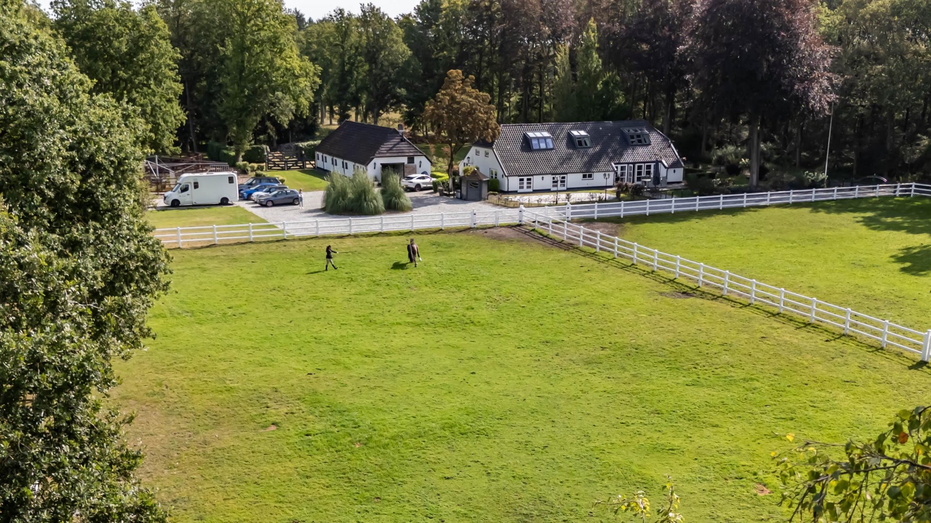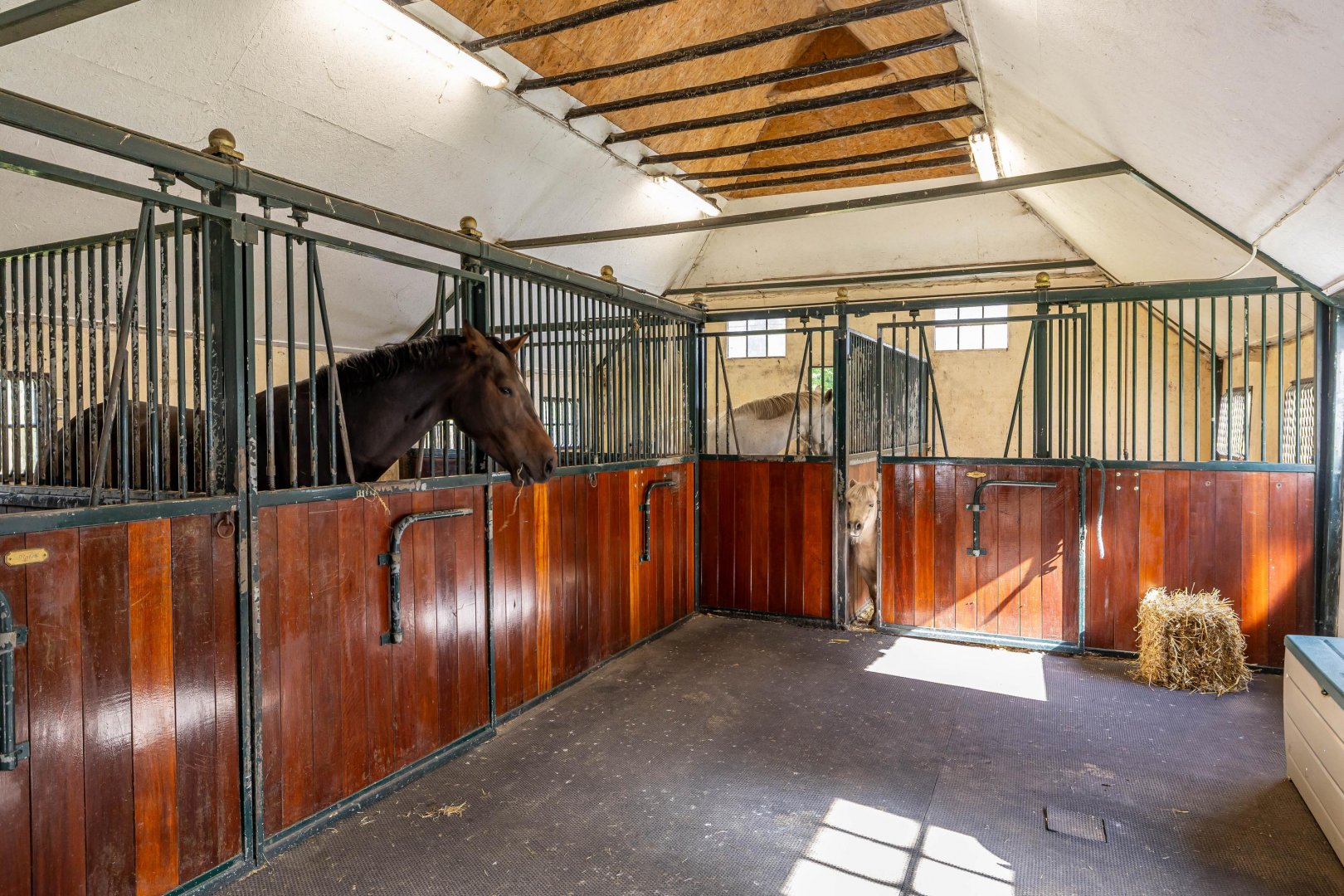 De faciliteiten voor paardenliefhebbers zijn uitgebreid: er zijn twee opdeelbare weilanden met stijlvolle omheining, een professionele rijbak, longeercirkel, een stapmolen en een luxe stalruimte met 4 professionele stallen voorzien van warm en koud water en een zadelkamer. De weilanden hebben een eigen grondwater beregeningsinstallatie. Het verzorgde terrein wordt omringd door eigen gazons, bosschages en terras. Direct aan het zonneterras ligt een zwembad welke door een warmtepomp wordt verwarmd - een uitnodigende plek om te ontspannen.