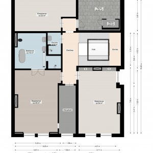 Overloop die middels het trappenhuis te bereiken is. Deze verdieping is geheel als slaapverdieping in gebruik en beschikt over 3 slaapkamers. De master bedroom heeft een eigen strak vormgegeven badkamer met ligbad, inloopdouche, toilet en dubbele wastafel. Daarnaast is er nog een walk in closet die overigens ook vanaf de overloop te bereiken is. De tweede badkamer op deze verdieping is voorzien van een inloopdouche en een wastafel.