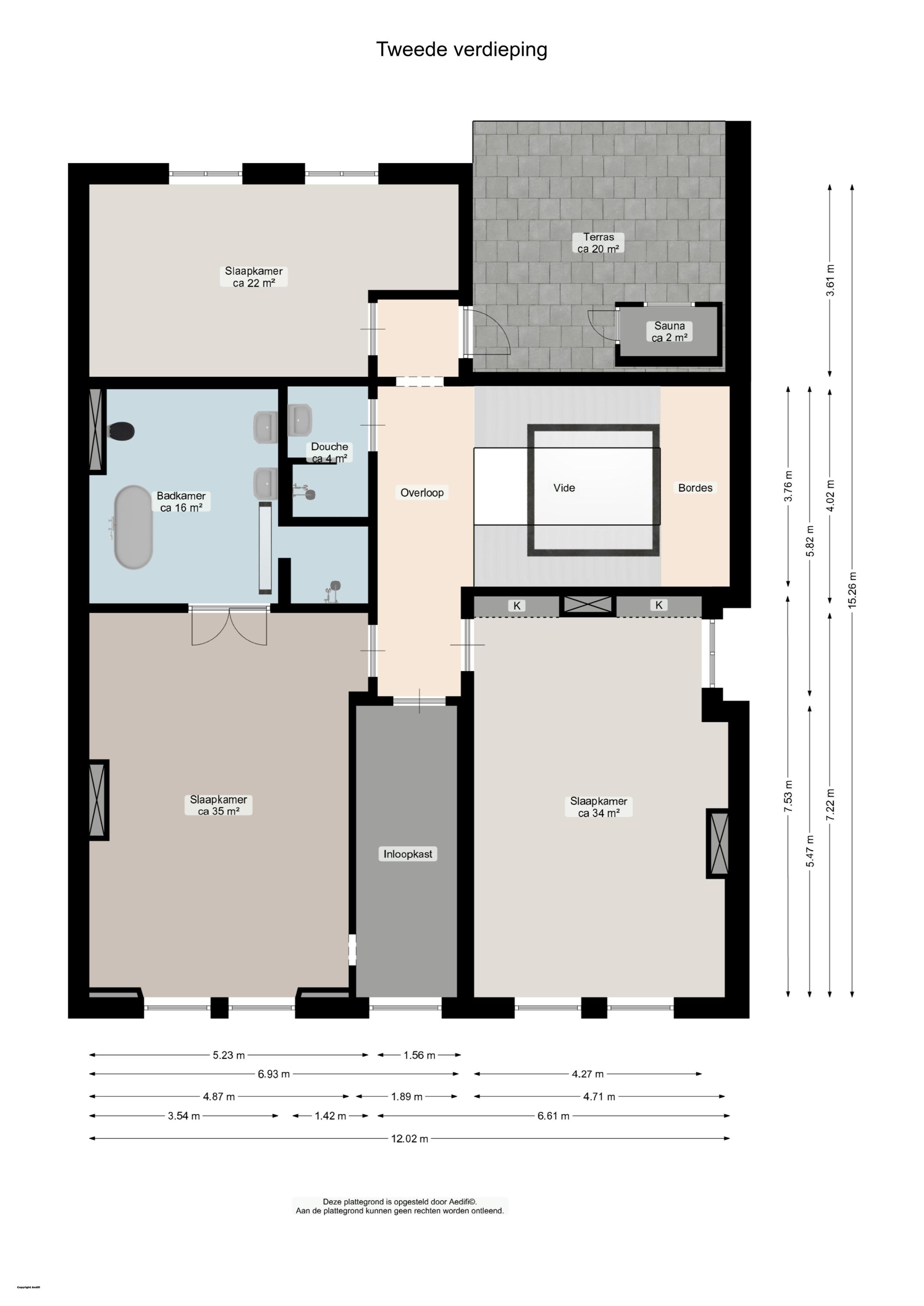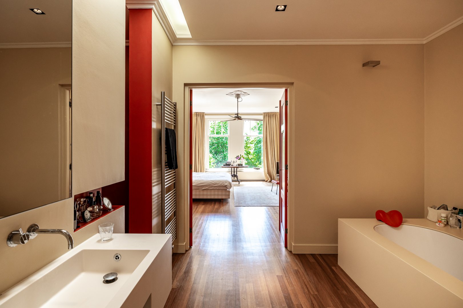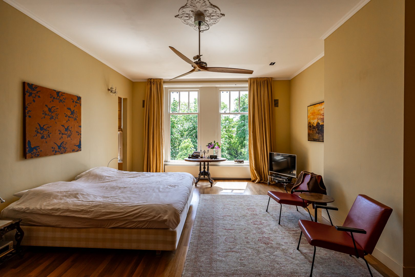 Ook op deze verdieping zijn de plafonds heerlijk hoog en zijn alle ruimten licht door de forse raampartijen, dit geldt ook voor de tweede en daarmee bovenste verdieping.