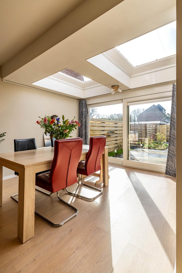De lichte en ruim opgezette leefruimtes vormen het hart van de woning en bieden volop mogelijkheden voor samenzijn. De keuken en woonkamer sluiten naadloos op elkaar aan en creëren een uitnodigende omgeving voor zowel ontspanning als het ontvangen van gasten.