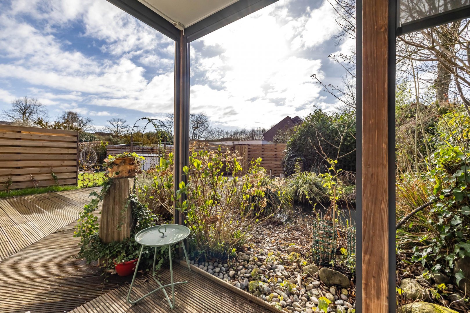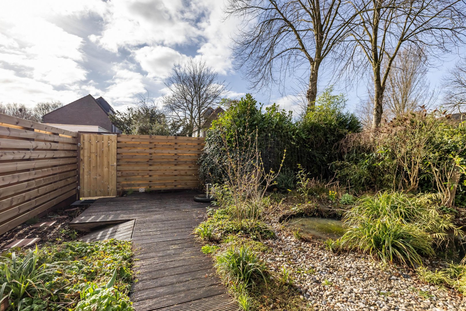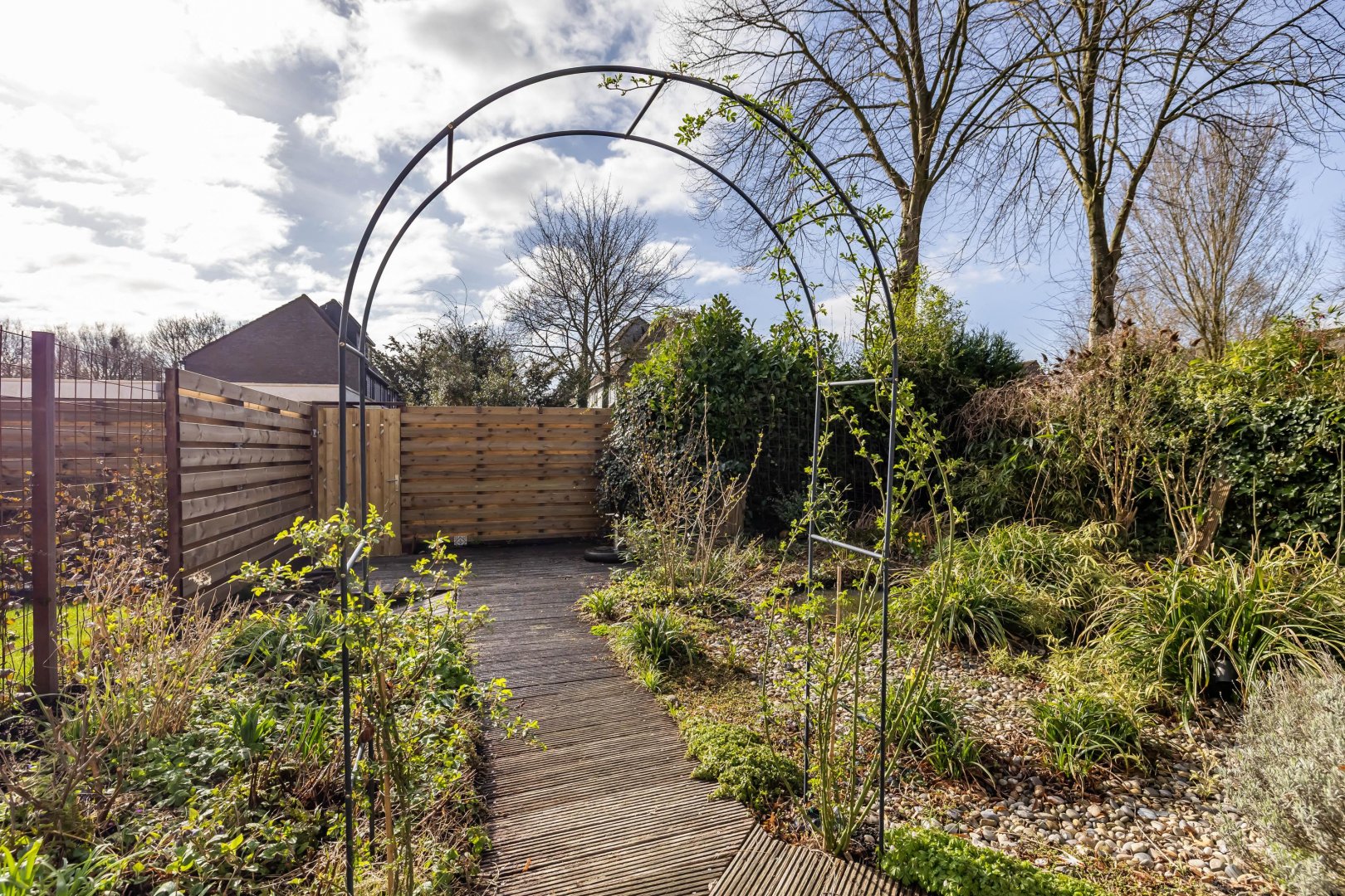 De achtertuin is fraai aangelegd, gelegen op het zonnige zuiden en biedt ruimte om te ontspannen. Dankzij de praktische achterom is de tuin bovendien goed bereikbaar, wat het gebruiksgemak vergroot. Het is een ideale plek voor kinderen om te spelen en voor ouders om te genieten van rust en zon. Een gezellige overkapping maakt de tuin compleet.