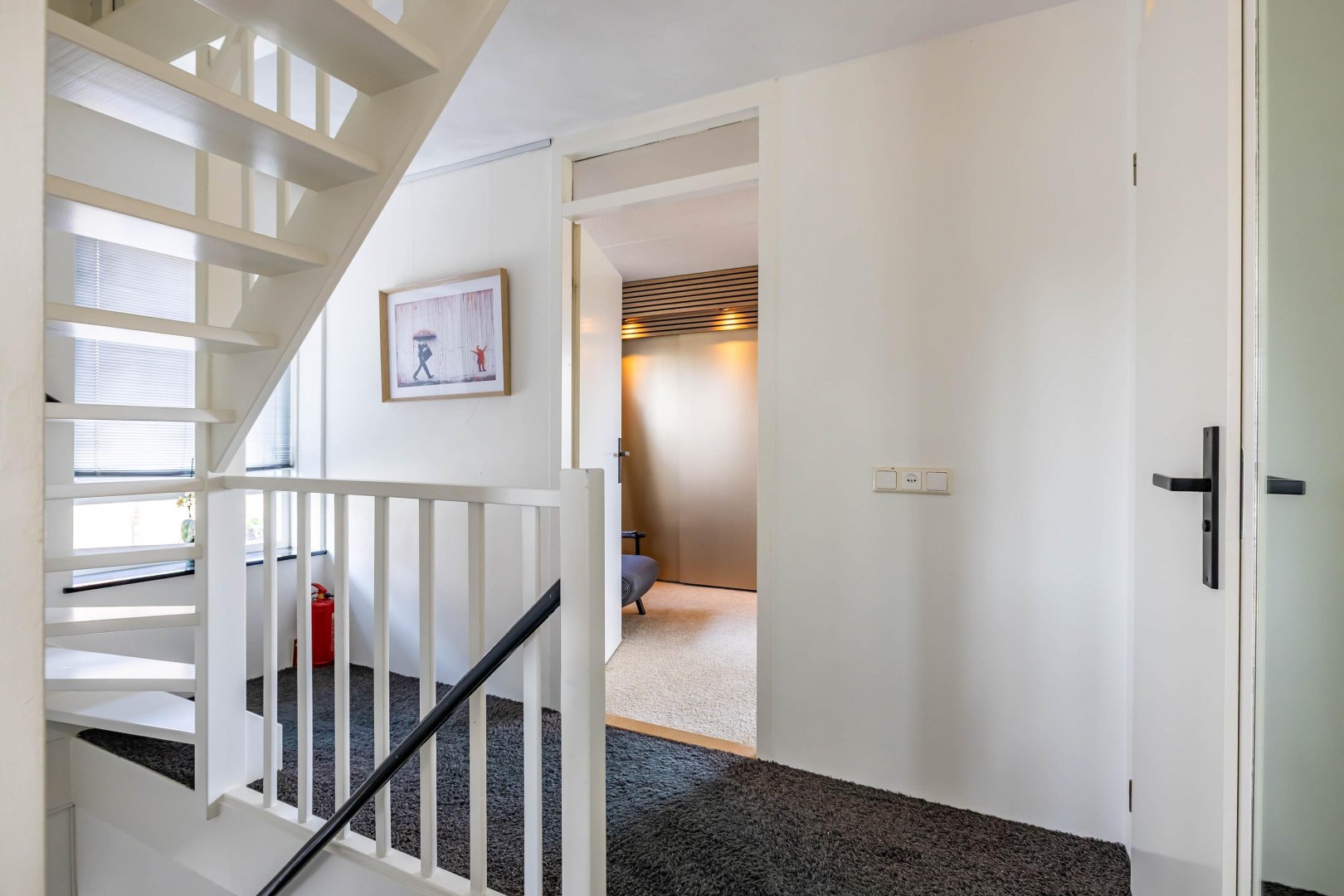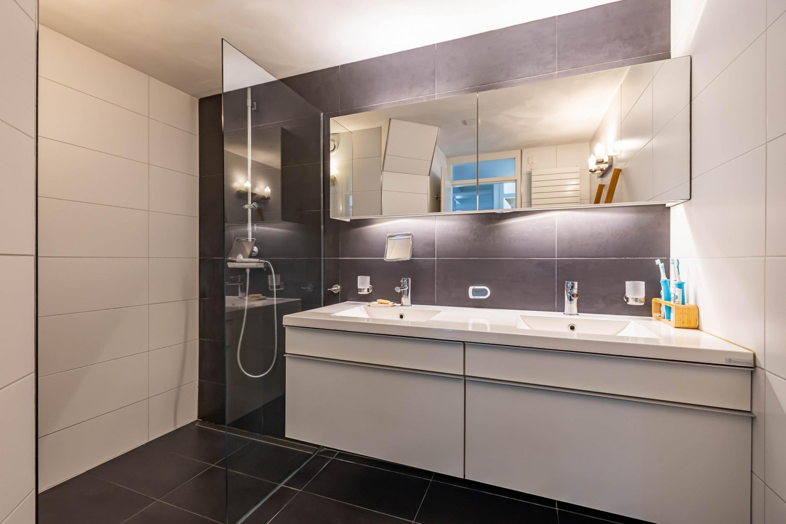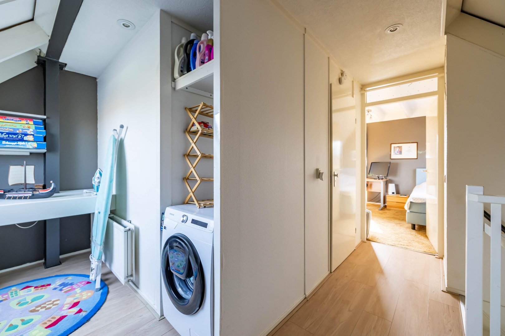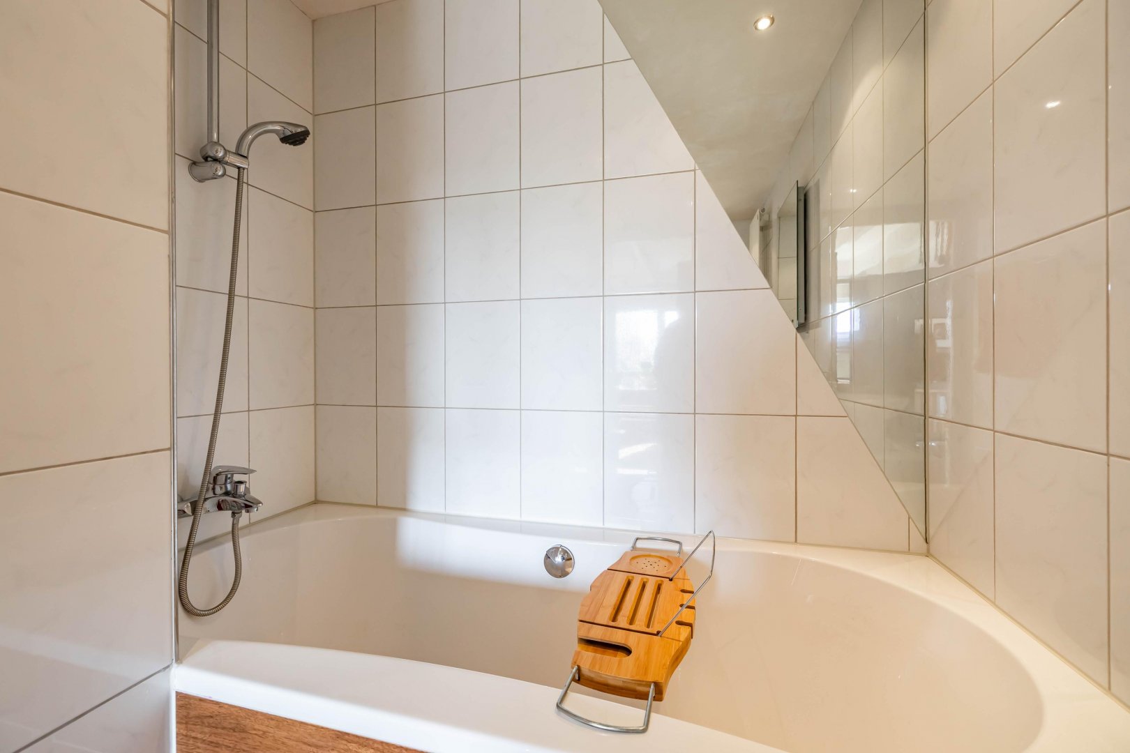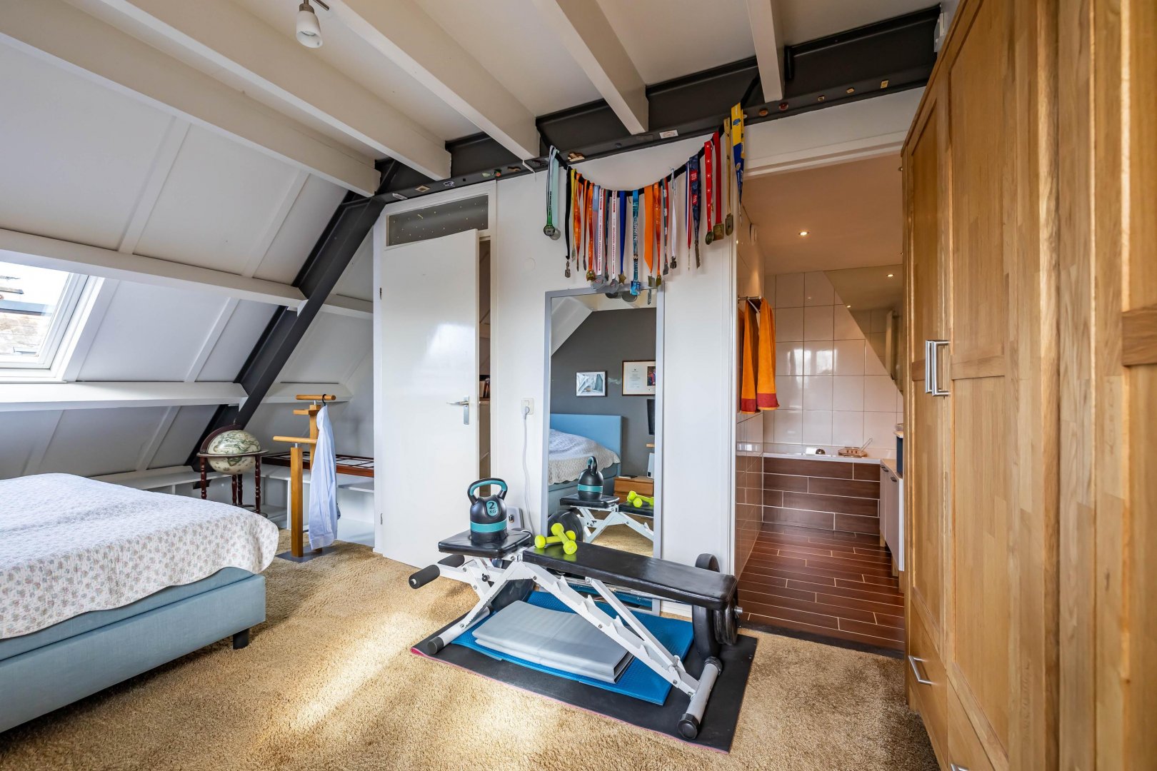 Op de eerste verdieping vinden we 3 slaapkamers en een moderne badkamer met een separaat toilet. De tweede verdieping beschikt over een ruime slaapkamer met een badkamer en suite. De royale overloop is thans ingericht als thuiswerkplek. Hier bevindt zich ook de wasruimte en de cv ruimte.