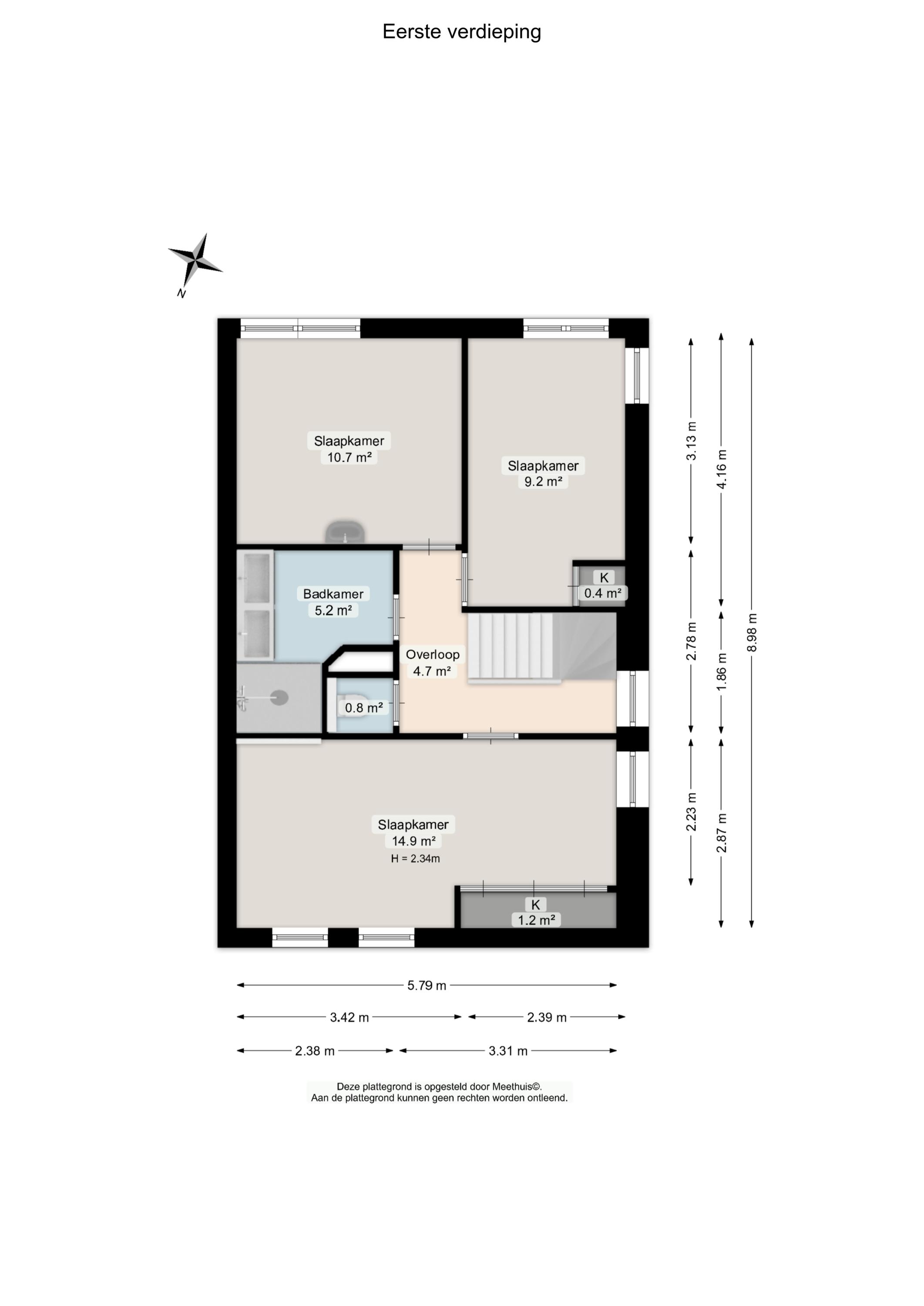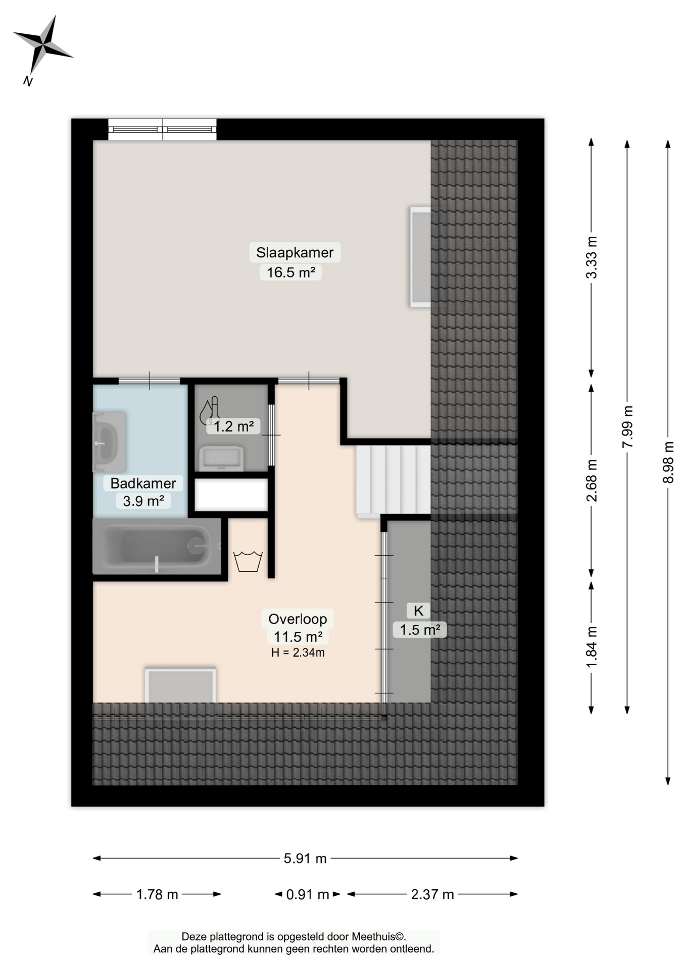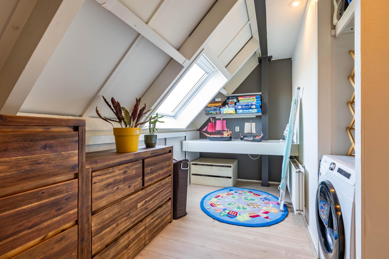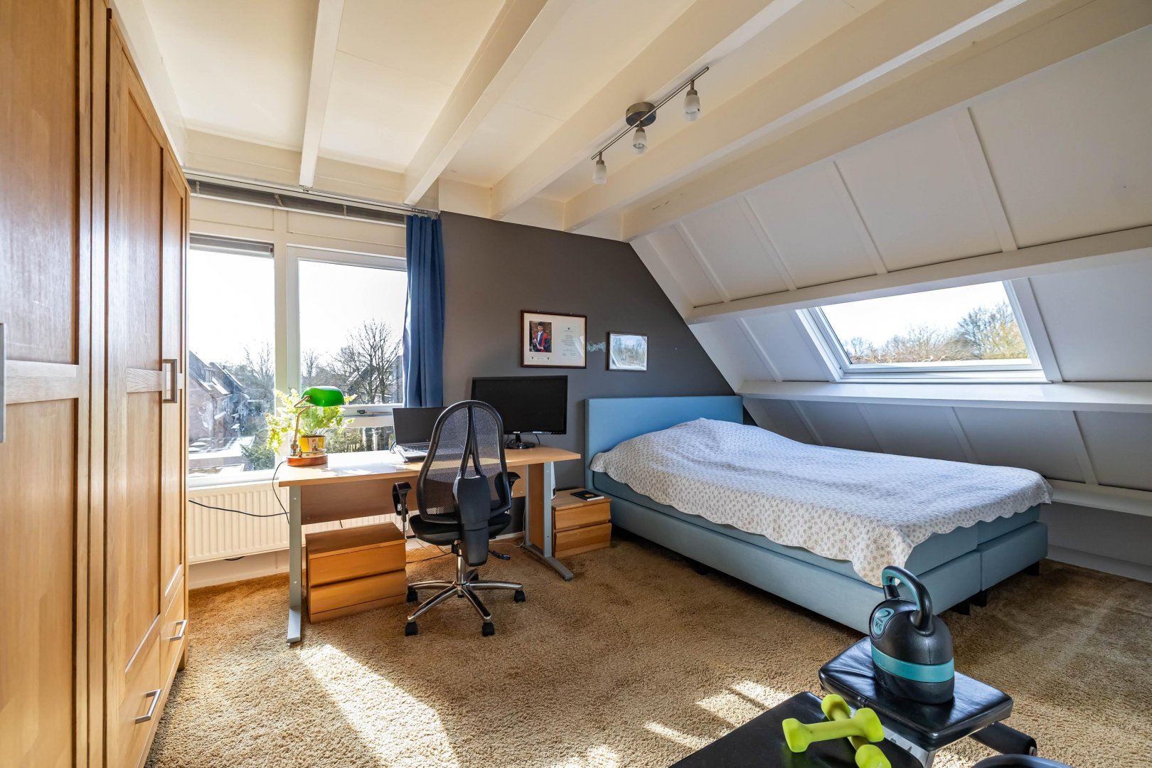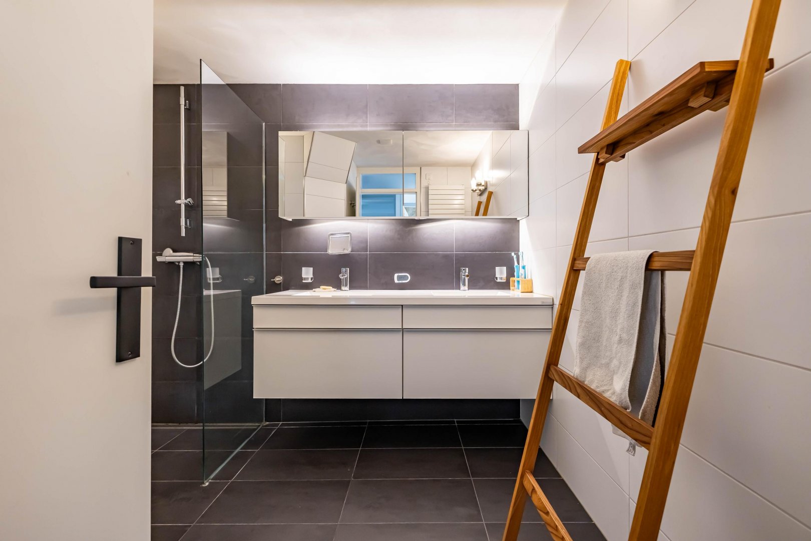 Op de eerste verdieping vinden we 3 slaapkamers en een moderne badkamer met een separaat toilet. De tweede verdieping beschikt over een ruime slaapkamer met een badkamer en suite. De royale overloop is thans ingericht als thuiswerkplek. Hier bevindt zich ook de wasruimte en de cv ruimte.