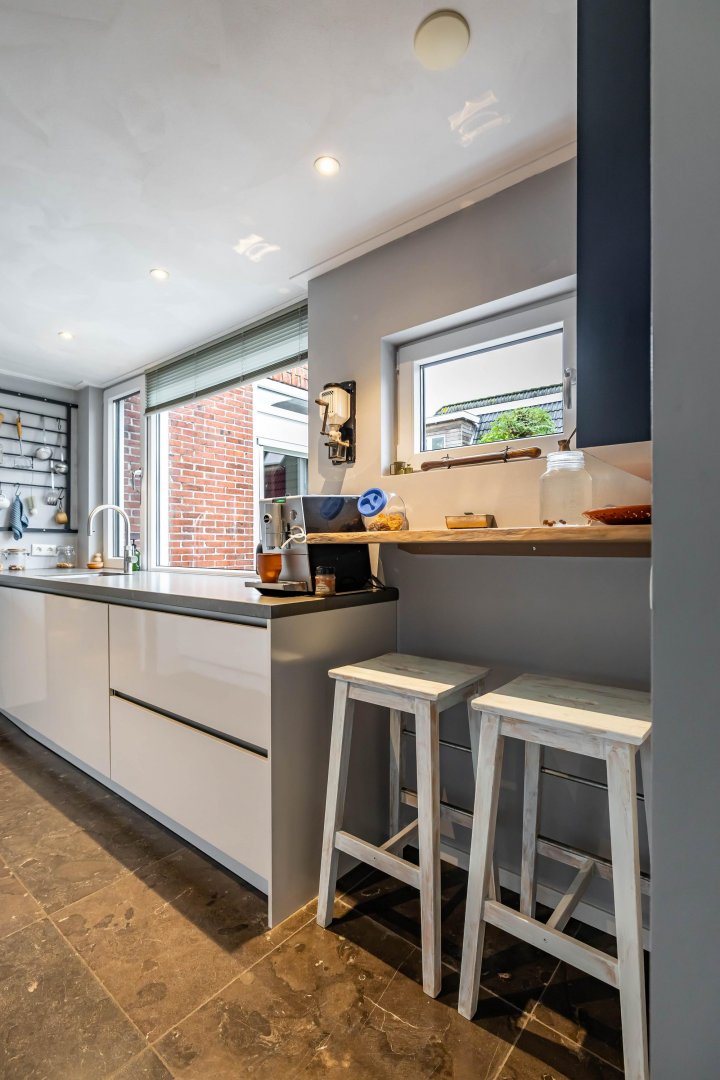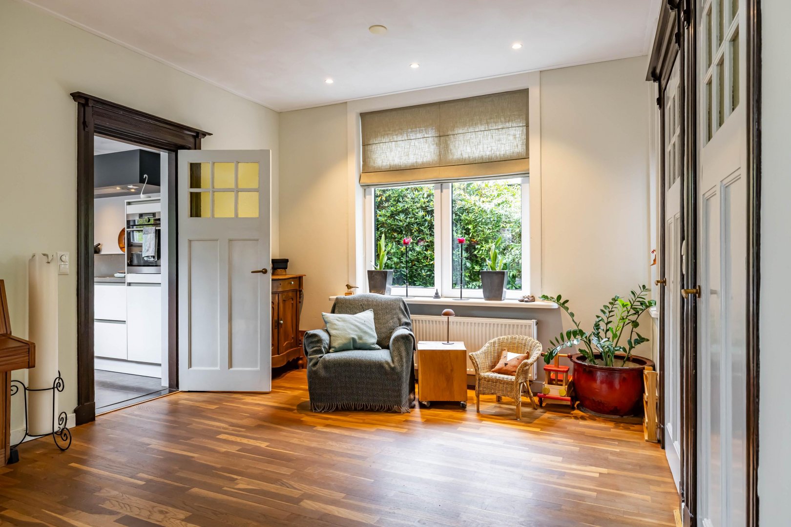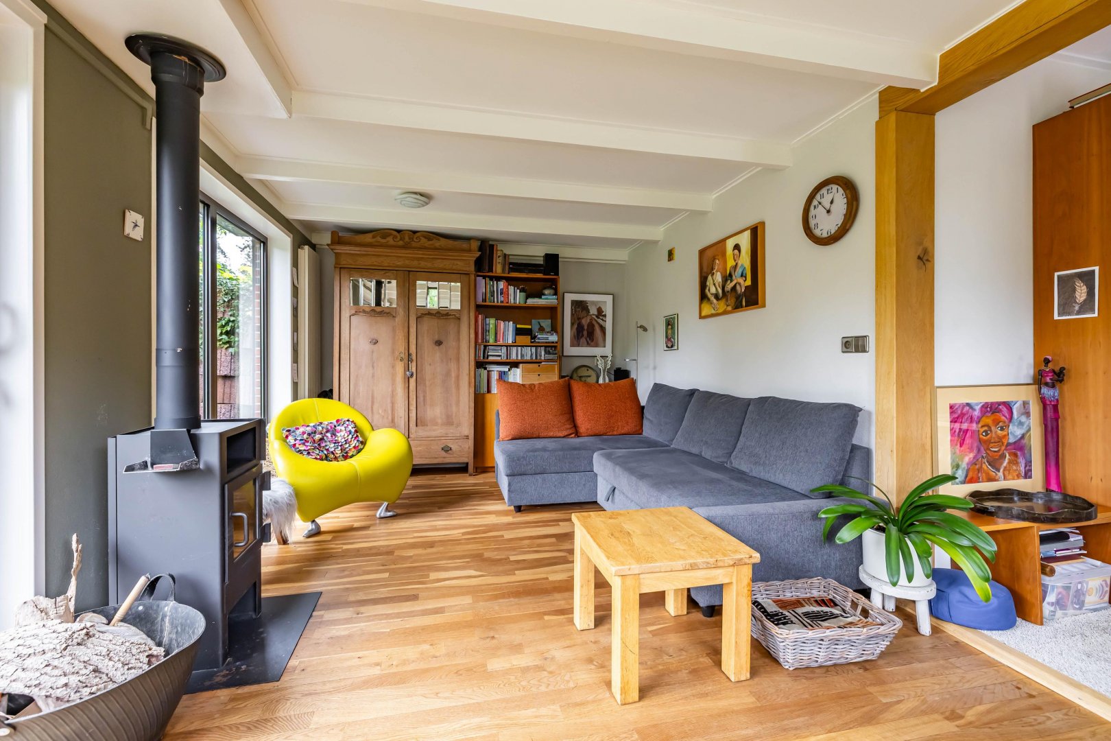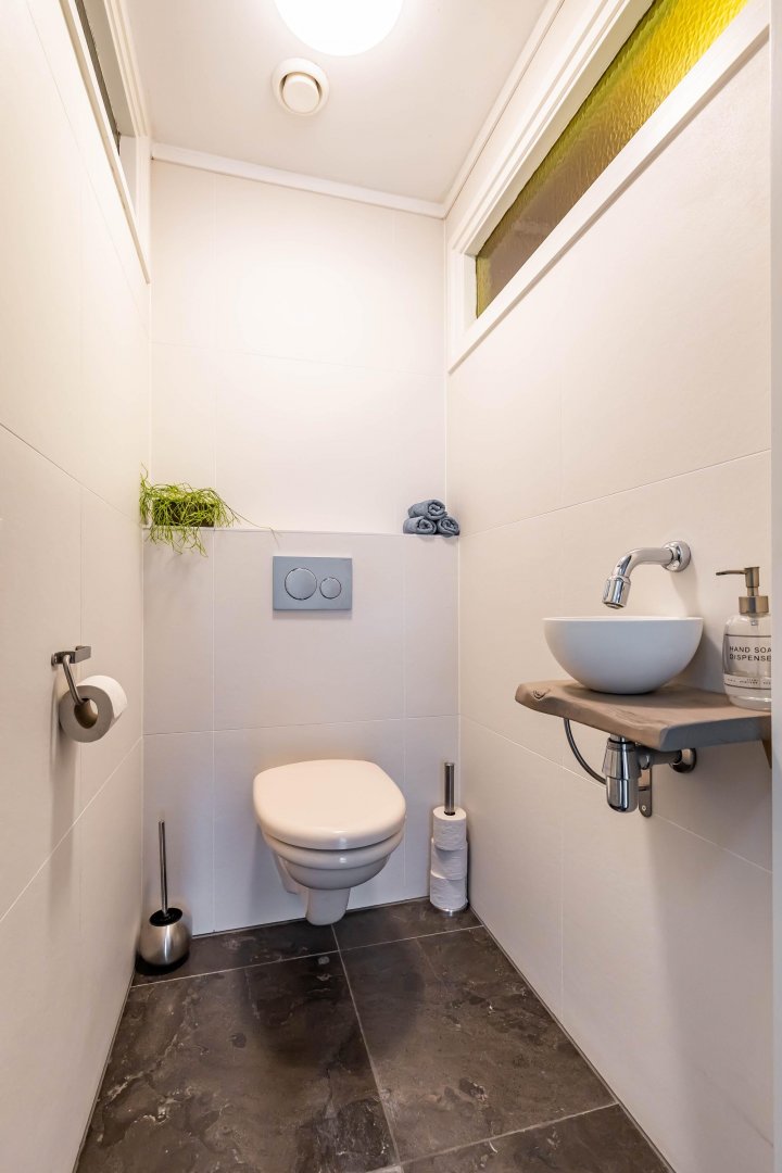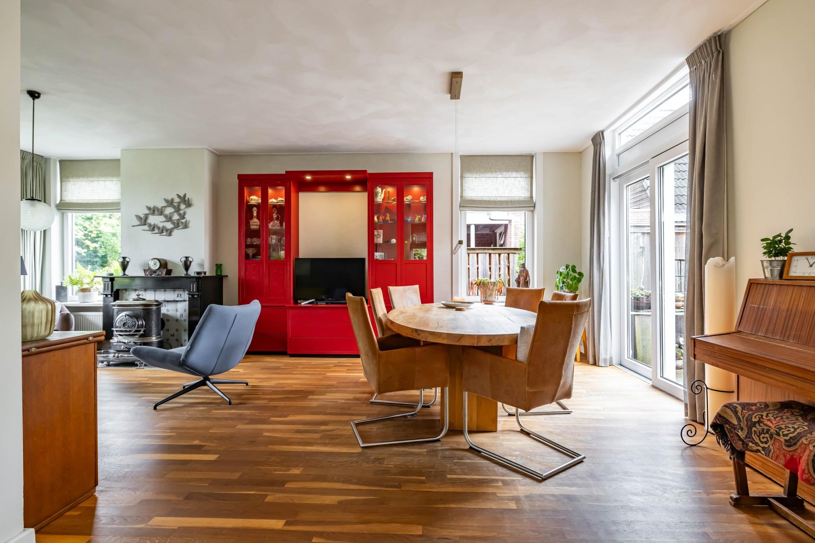 Vanuit de woonkamer kunt u naar de keuken in de aanbouw. De moderne keuken is vernieuwd in 2019, beschikt over een dubbel werkblad en diverse inbouw apparatuur (o.a. quooker, inductiekookplaat, vaatwasser) en een groot raam met zicht op het naast gelegen terras. Achter de keuken het toilet, een tweede moderne badkamer (2019) met douche, aanrechtblad met wastafel en plaats voor de wasmachine. Doorloop naar de tuinkamer en een (binnendoor) deur naar de schuur/garage. De achtergelegen tuinkamer is misschien wel de mooiste kamer van het huis en nu in gebruik als tweede woonkamer. Deze kamer van 21m² heeft prachtig uitzicht over de fraaie diepe achtertuin door middel van twee grote glaspuien. Een daarvan voorzien van een schuifpui.