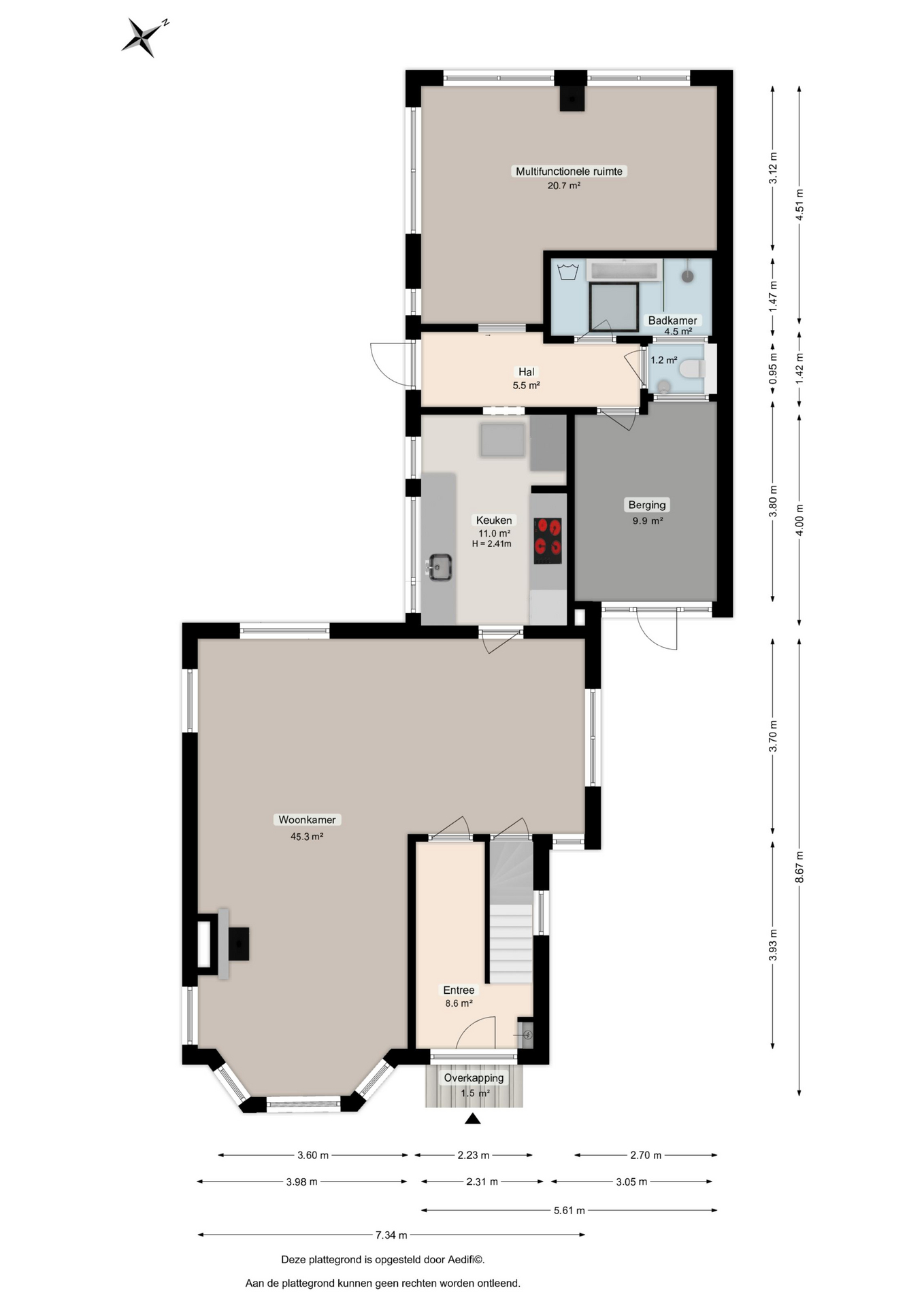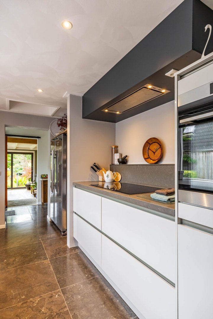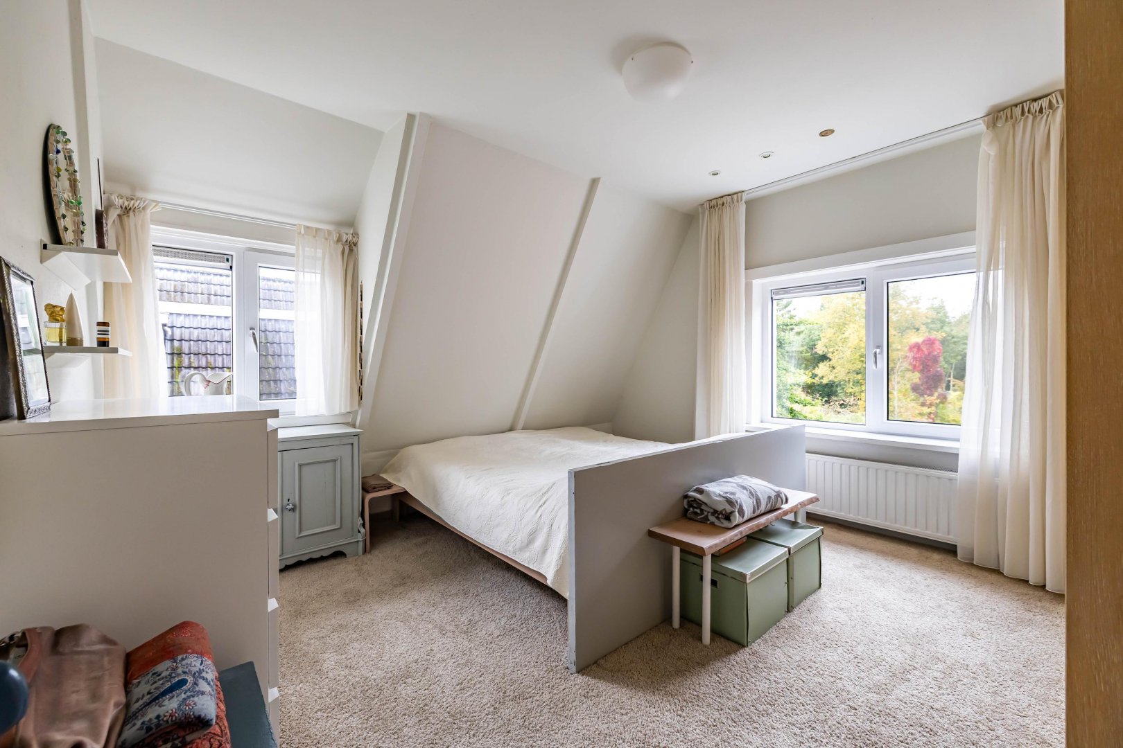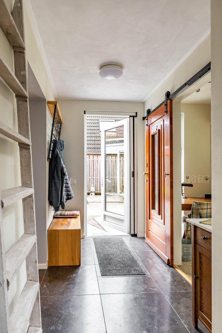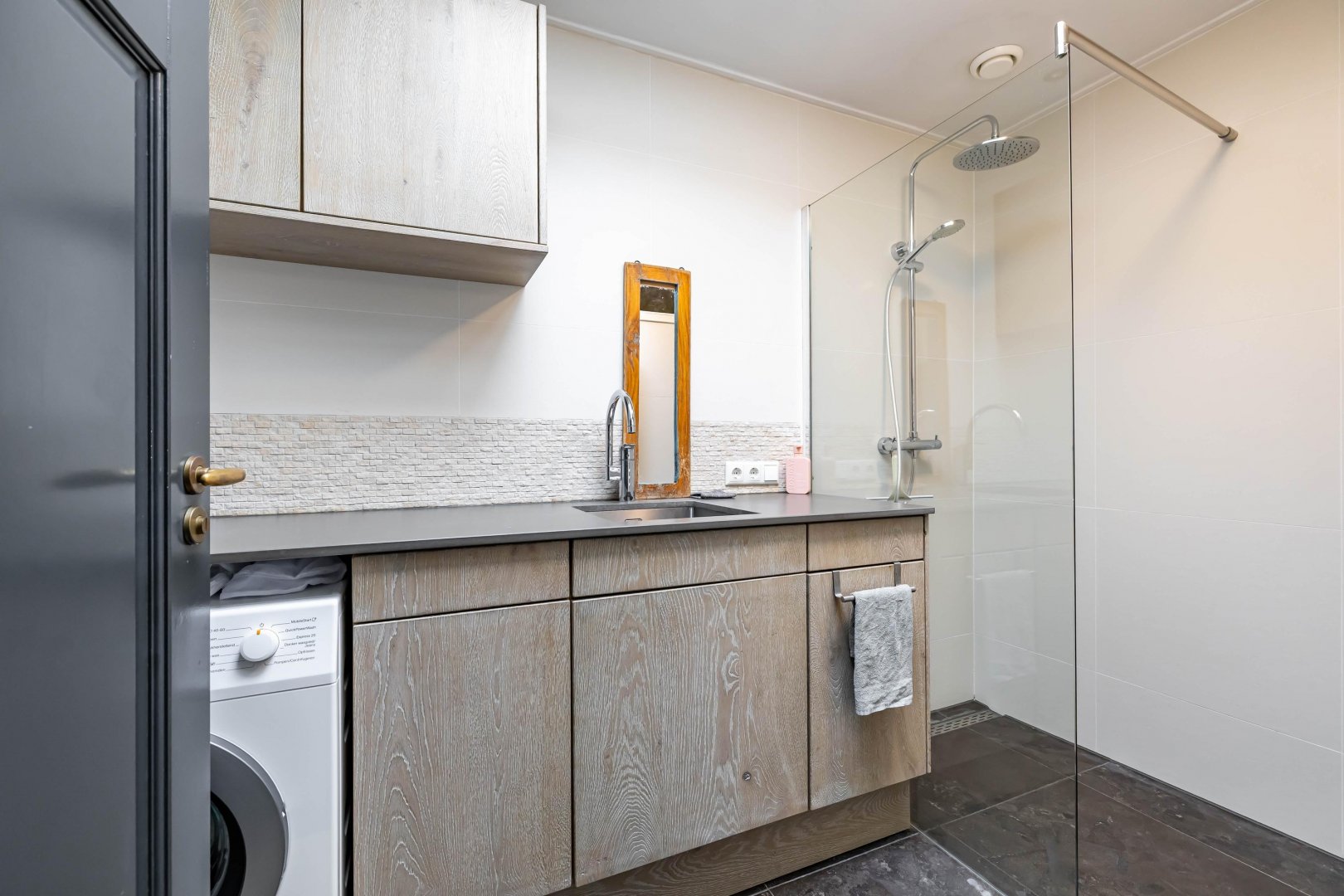 Vanuit de woonkamer kunt u naar de keuken in de aanbouw. De moderne keuken is vernieuwd in 2019, beschikt over een dubbel werkblad en diverse inbouw apparatuur (o.a. quooker, inductiekookplaat, vaatwasser) en een groot raam met zicht op het naast gelegen terras. Achter de keuken het toilet, een tweede moderne badkamer (2019) met douche, aanrechtblad met wastafel en plaats voor de wasmachine. Doorloop naar de tuinkamer en een (binnendoor) deur naar de schuur/garage. De achtergelegen tuinkamer is misschien wel de mooiste kamer van het huis en nu in gebruik als tweede woonkamer. Deze kamer van 21m² heeft prachtig uitzicht over de fraaie diepe achtertuin door middel van twee grote glaspuien. Een daarvan voorzien van een schuifpui.