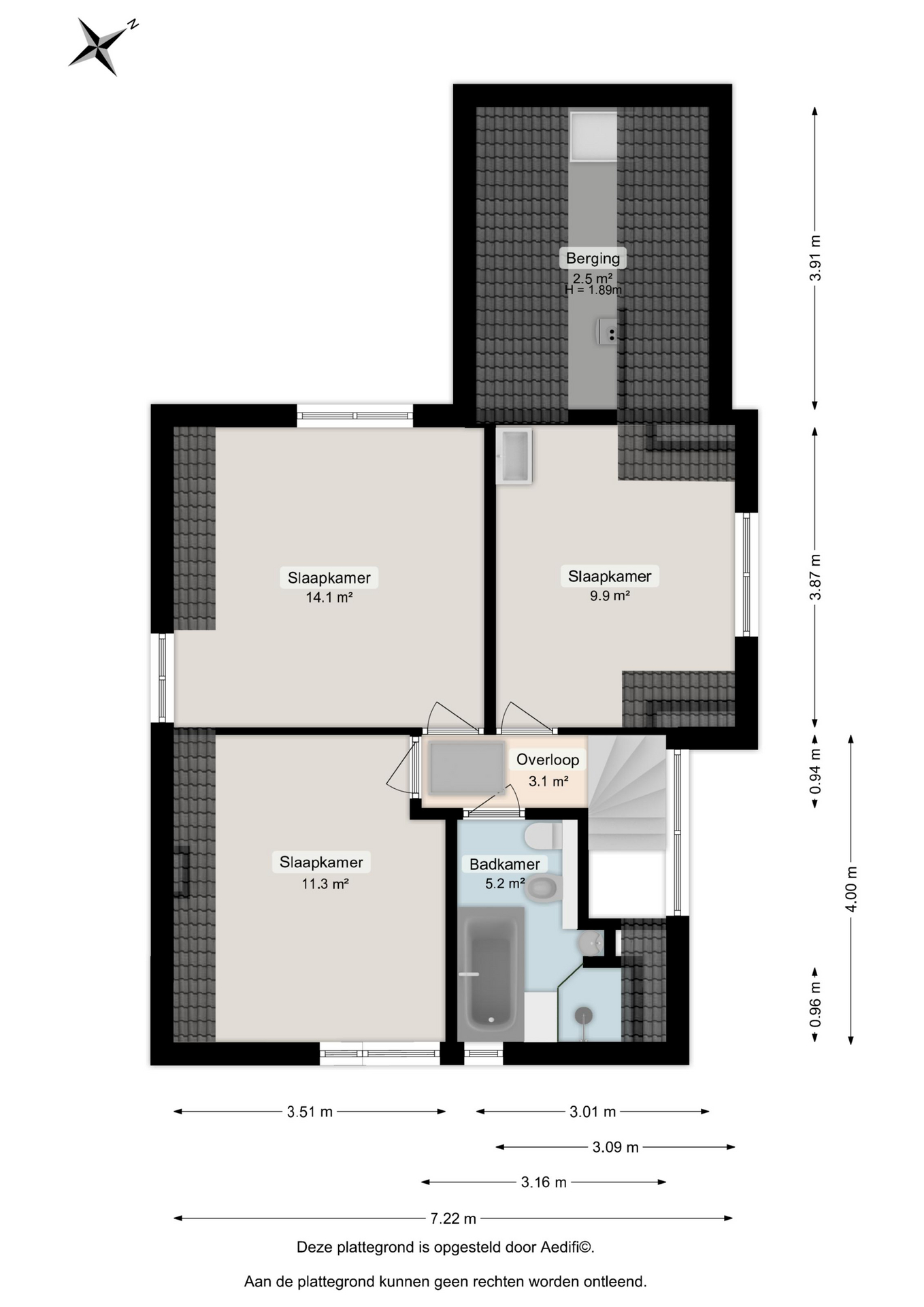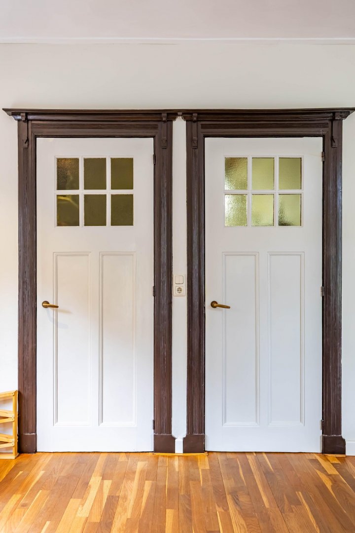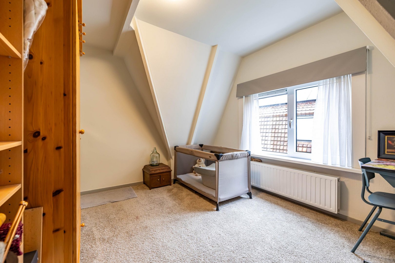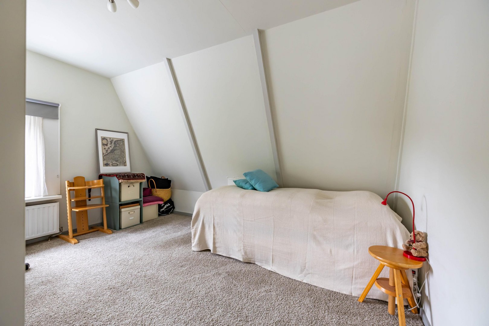 Eerste verdieping: overloop, 3 kamers resp. circa 10, 11 en 14 m². Diverse ruime inbouwkasten (2019). Compacte badkamer met douchecabine, wastafel, tweede toilet, bidet en ligbad. Via de vlizotrap bereikt u de zolderbergruimte.