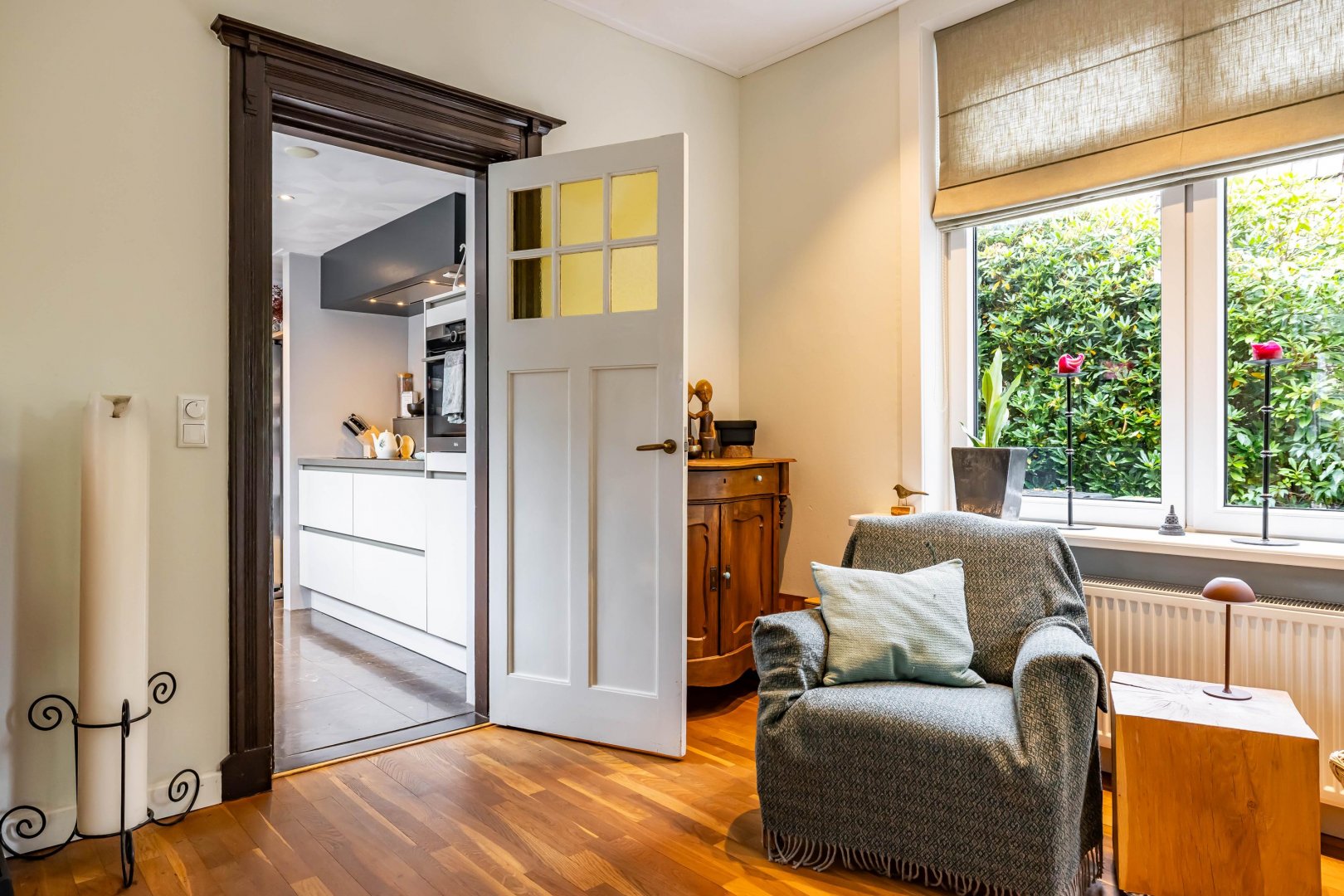 Charmant vrijstaand woonhuis met fraaie karakteristieke uitstraling uit de jaren twintig met aangebouwde schuur. Het huis is gelegen op een mooi en ruim perceel van 1685 m² en voorzien van een fraai aangelegde -diepe- tuin met zonneterrassen, een tuinberging, hobbyschuur en grenzend aan een brede sloot. Aan de achterzijde is het huis uitgebouwd waardoor een hele fijne tuinkamer is gerealiseerd. Deze kamer biedt prachtig uitzicht over de diepe groene achtertuin en kan goed dienst doen als werkkamer, tweede woonkamer of slaapkamer op de begane grond (de tweede badkamer is naastgelegen).
