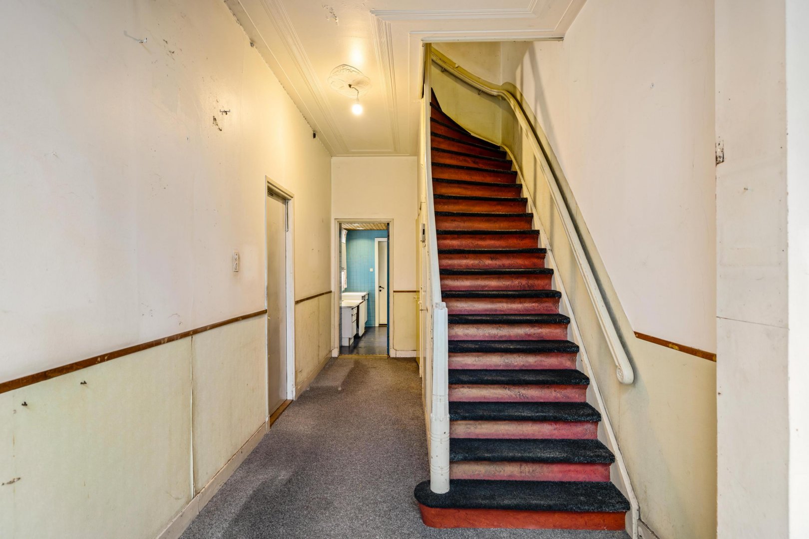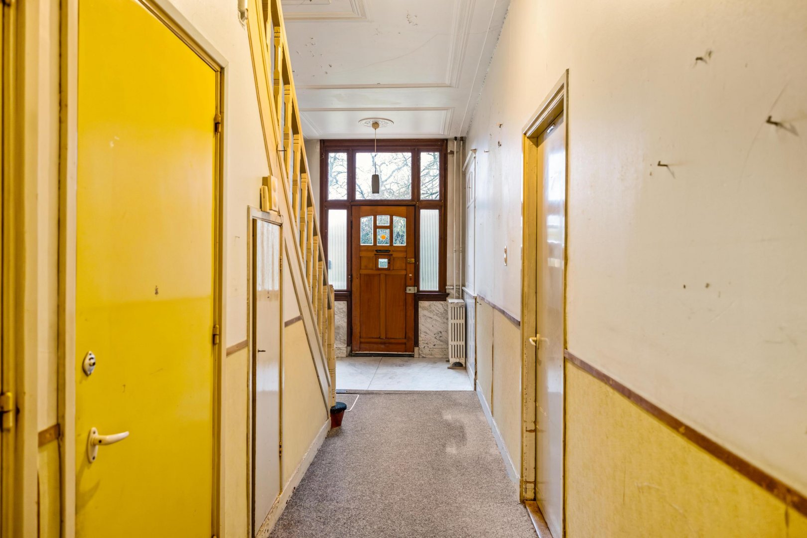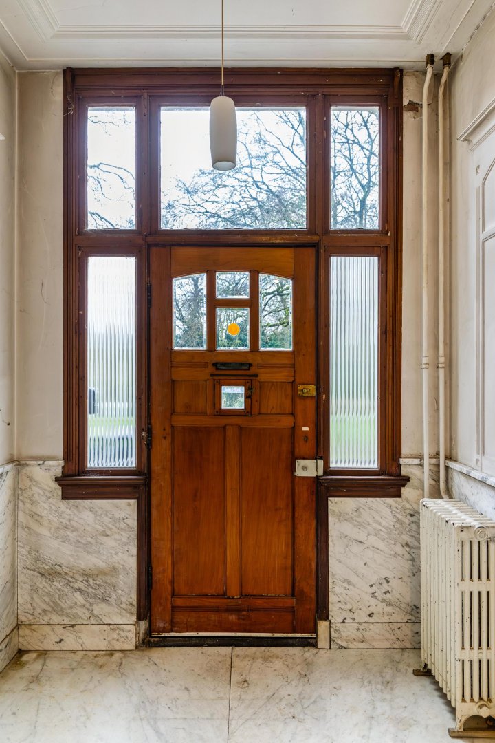 Bij binnenkomst wordt direct duidelijk dat hier historie en sfeer samenkomen. De marmeren hal vormt een stijlvolle entree en zet meteen de toon voor de rest van de woning. Authentieke details zijn nog volop aanwezig, waaronder sierlijke ornamentenplafonds, karaktervolle paneeldeuren, balustrade en een klassieke schouw. Elementen die de charme van het oorspronkelijke herenhuis prachtig laten zien.