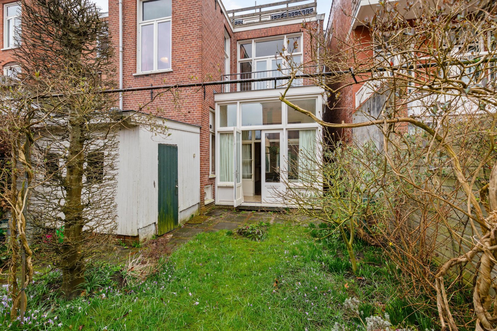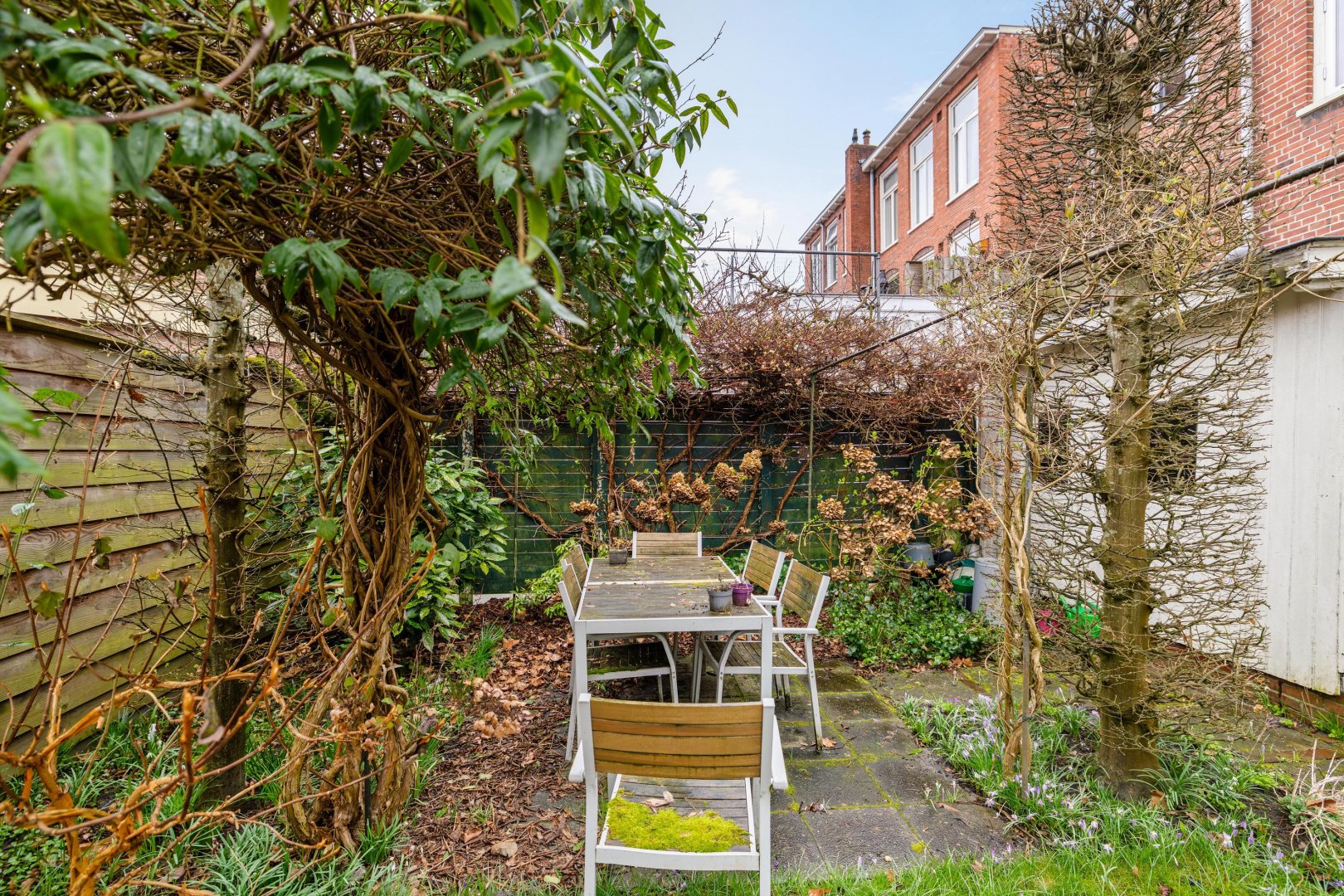 De achtertuin ligt op het oosten, waardoor in de ochtend al volop zonlicht aanwezig is. Een fijne plek om de dag rustig te beginnen. Dankzij de achterom is de tuin bovendien praktisch bereikbaar, bijvoorbeeld voor fietsen of tuinmateriaal.