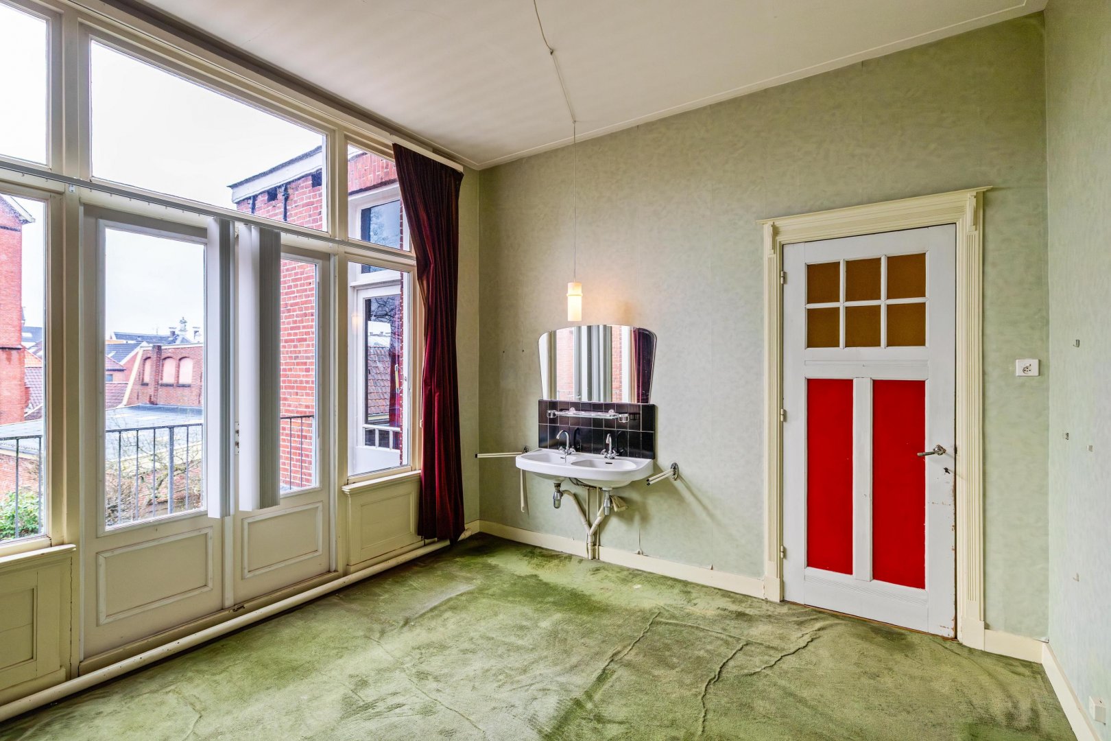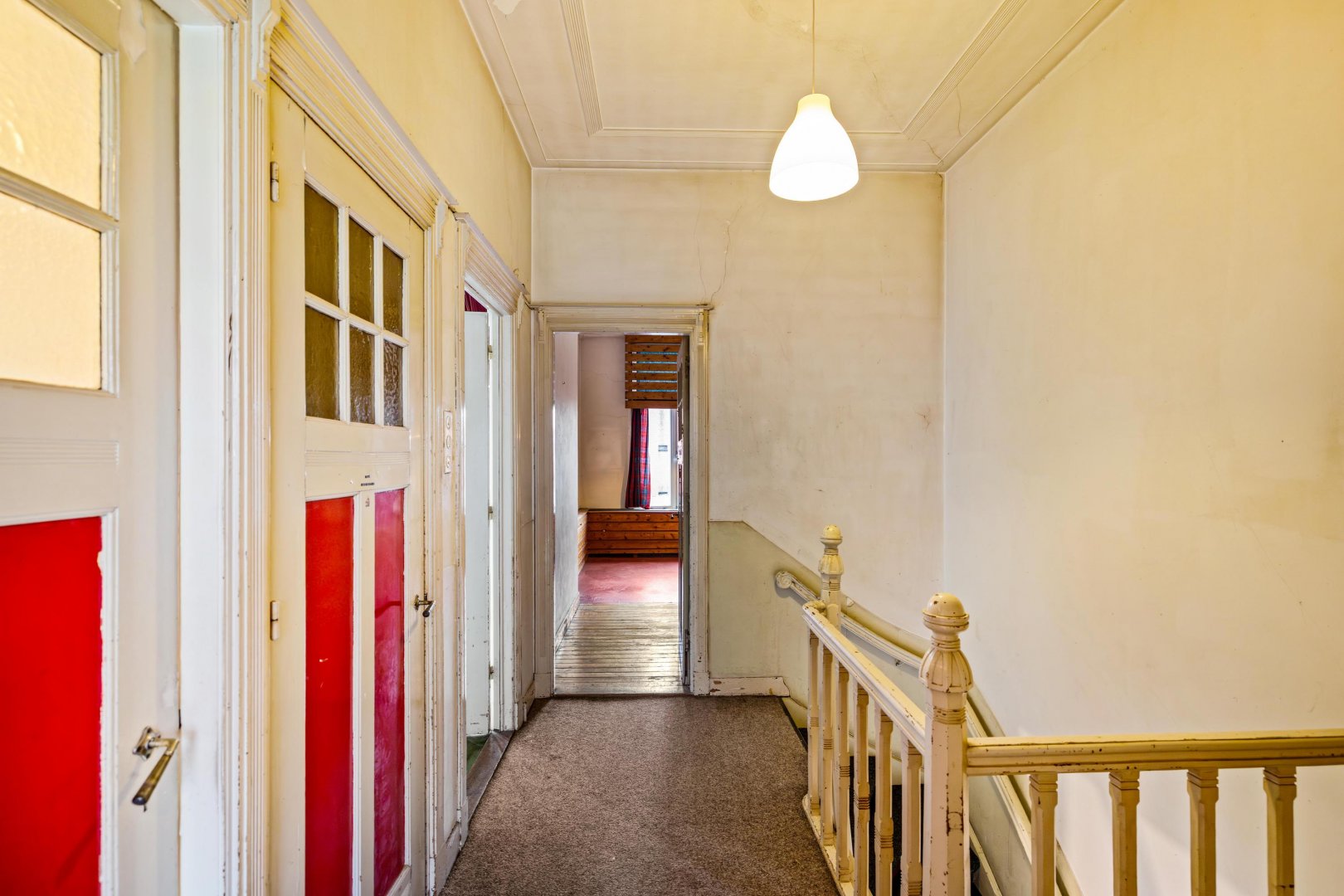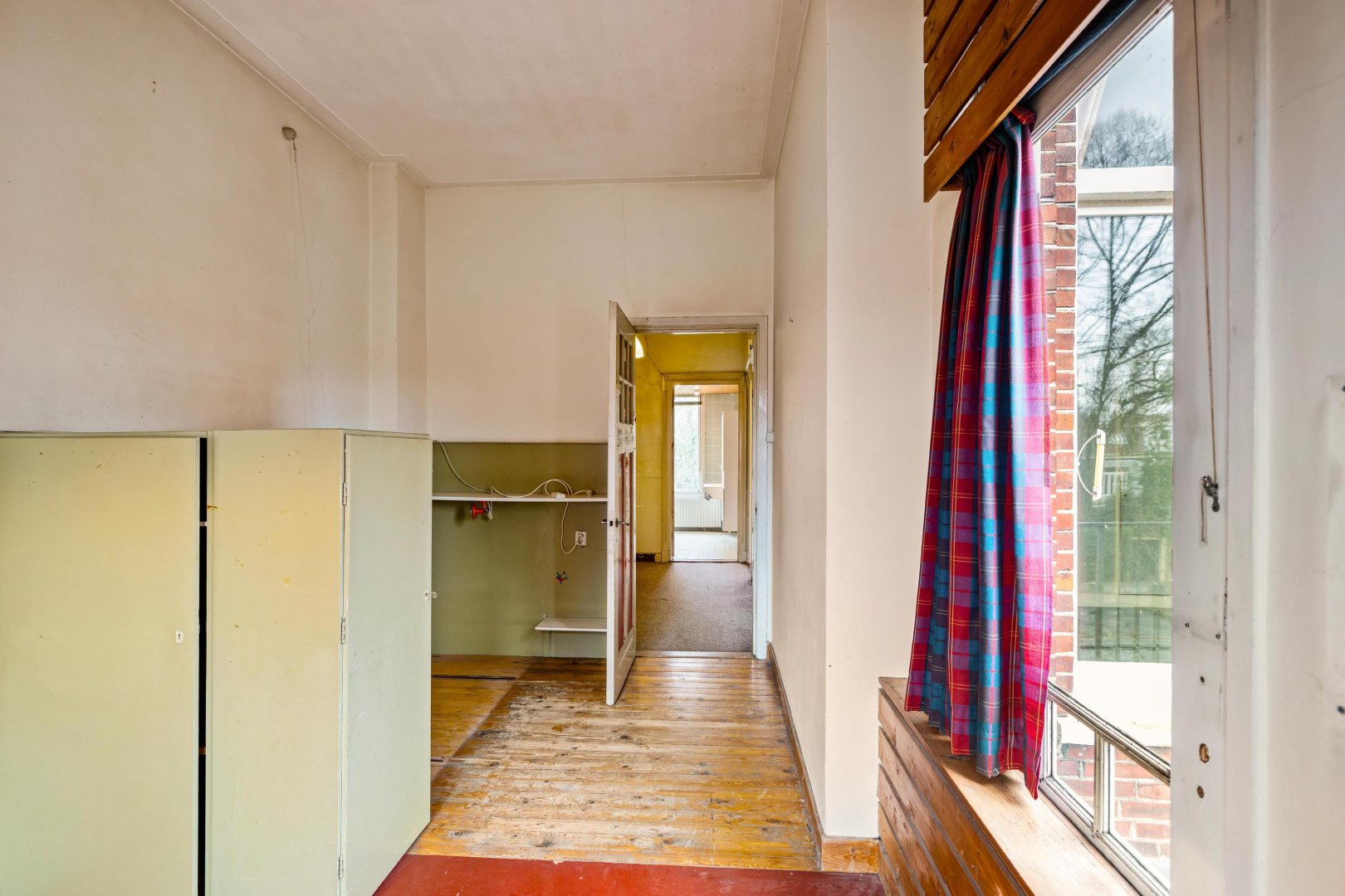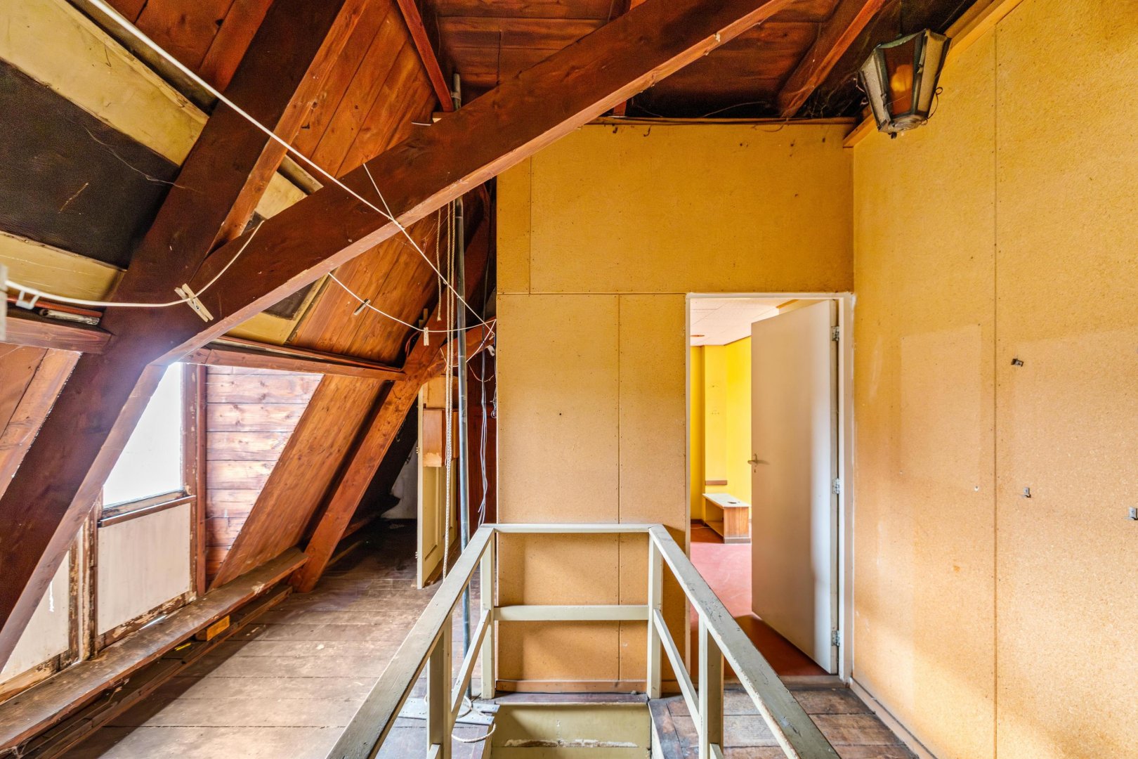 Op de verdiepingen bevinden zich vijf slaapkamers, wat de woning uitermate geschikt maakt voor een groot gezin, logeerkamers, werkruimtes of creatieve invullingen zoals een atelier of hobbykamer. De woning verkeert momenteel in een staat die ruimte biedt voor modernisering, waardoor een nieuwe eigenaar het geheel volledig naar eigen wensen kan vormgeven.