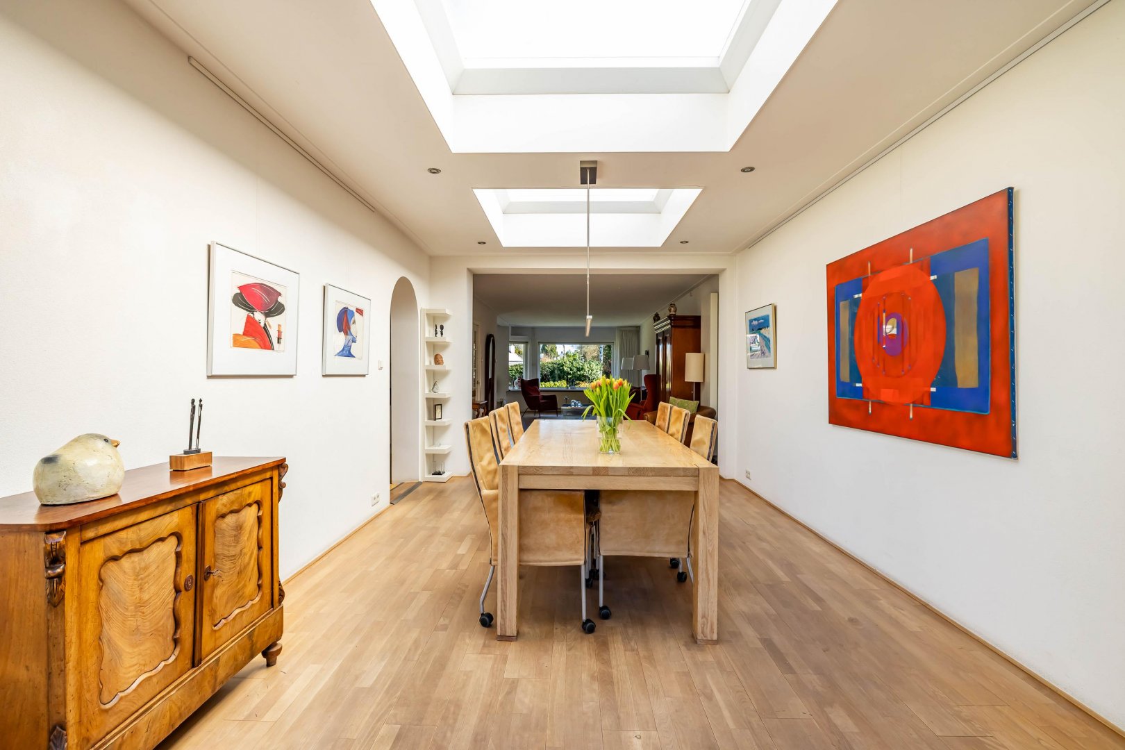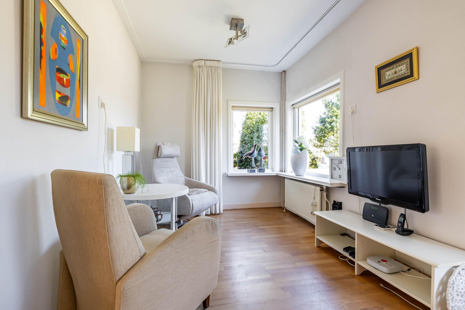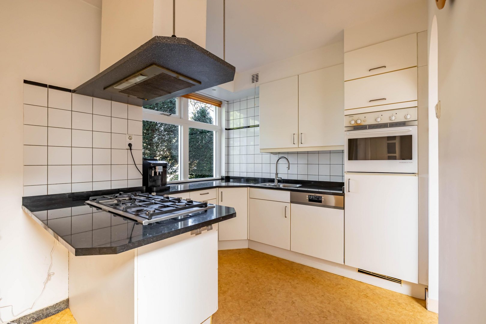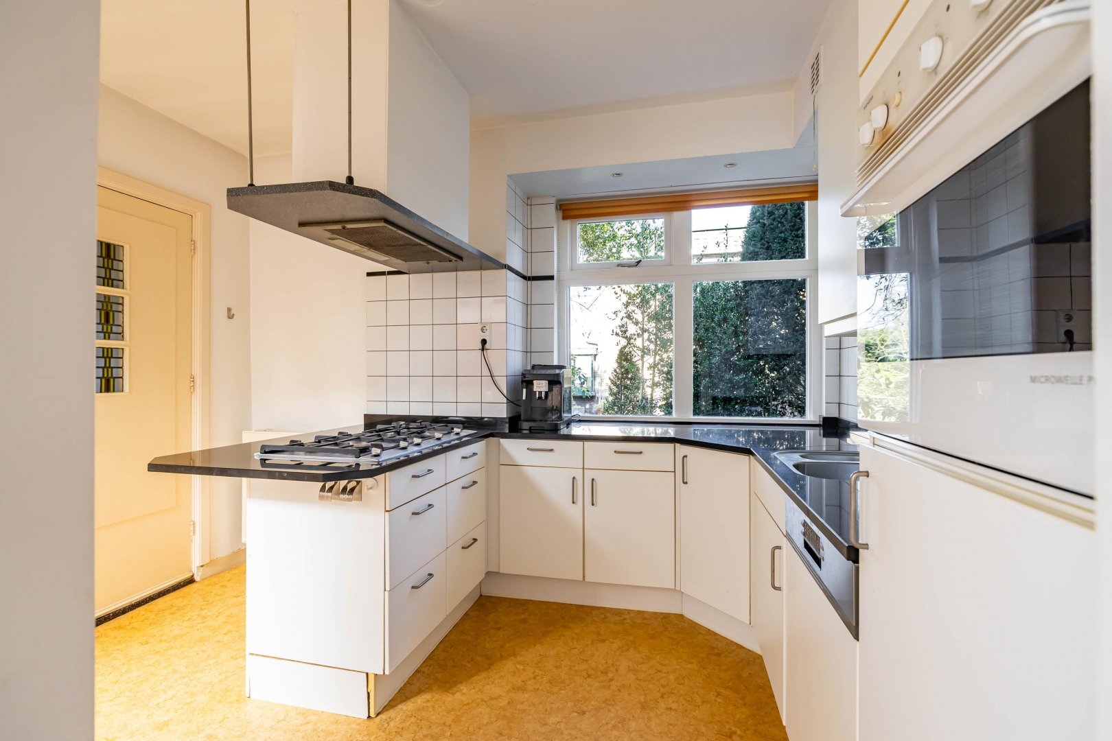 Binnen valt direct de ruimte op. De woonkamer is prettig van formaat en krijgt veel daglicht, mede dankzij de uitbouw aan de achterzijde. Hierdoor ontstaat een fijne leefruimte waarin u eenvoudig een zit- en eetgedeelte combineert. De verbinding met de tuin maakt het geheel extra aangenaam; in de zomer zet u de deuren open en loopt binnen moeiteloos over in buiten. De keuken ligt logisch in het geheel en biedt voldoende werk- en bergruimte. Of u nu snel iets klaarmaakt of uitgebreid kookt, het kan hier allemaal. De quooker kraan geeft snel een heerlijk kopje thee.
