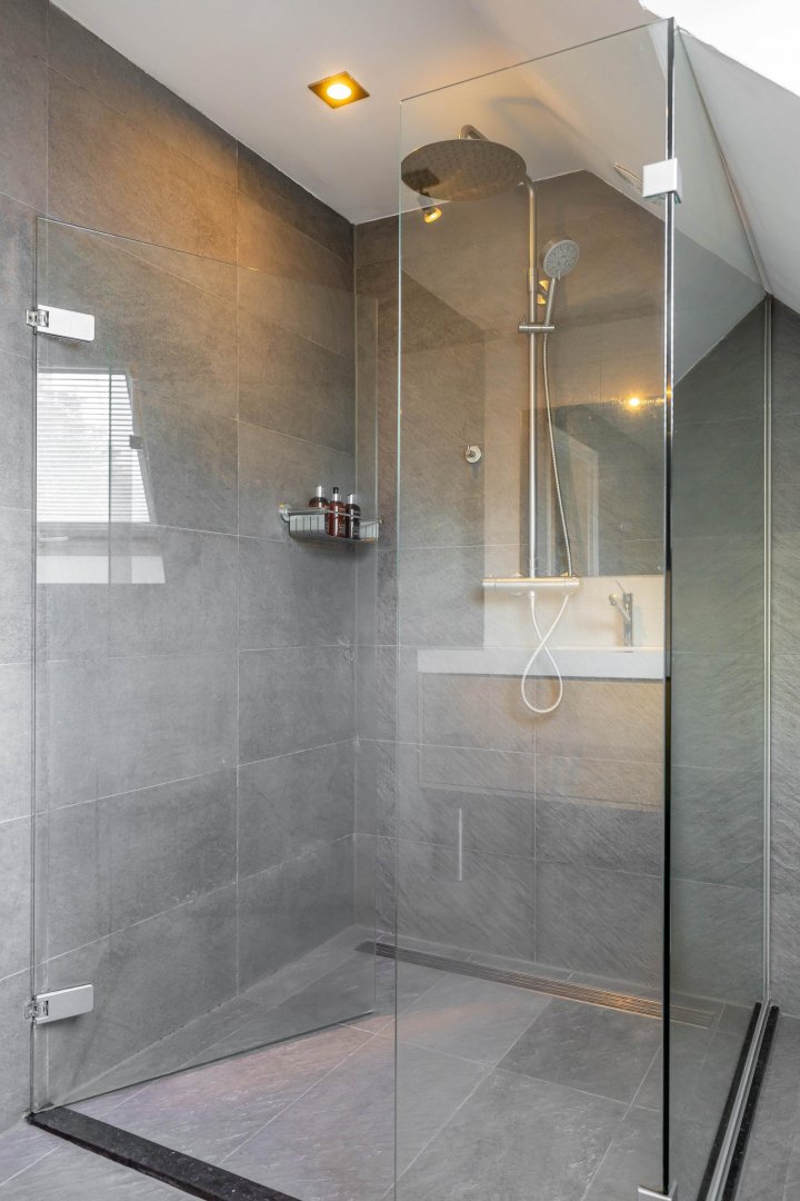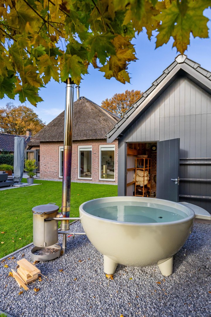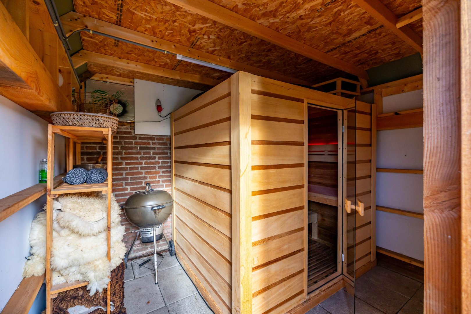 Op de verdieping vind je drie comfortabele slaapkamers, licht en ruim, perfect voor een gezin of gasten die blijven logeren. De moderne badkamer is voorzien van een grote inloopdouche, toilet en wastafelmeubel. En dan is er nog de wellness. Dit is niet zomaar een extraatje; dit is een privé-oase. De achterzijde van de schuur is voorzien van een sauna en in de tuin vinden we een houtgestookte hottub. Wellness in je eigen achtertuin! Denk aan een warme sauna, zachte verlichting, een plek waar je spieren ontspannen en je hoofd even helemaal stil wordt. Na een lange werkdag of intensieve training is dit pure luxe.