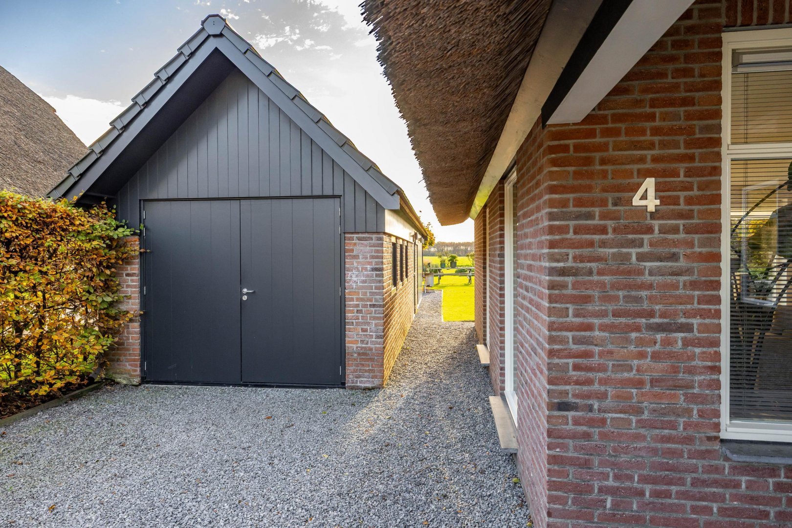 Buiten wacht een perceel dat royaal genoeg is om al je woonwensen kwijt te kunnen. De tuin — gelegen op het zuidwesten — vangt van 's ochtends tot ’s avonds laat de zon. Zomers kunnen de buitendeuren open en wordt buiten en binnen één. Ontbijten, barbecueën, borrelen, luieren, tuinieren, ravottende kinderen… alles kan hier. Ruimte is geen luxe meer, maar een vanzelfsprekendheid. De vrijstaande garage biedt veel bergruimte.